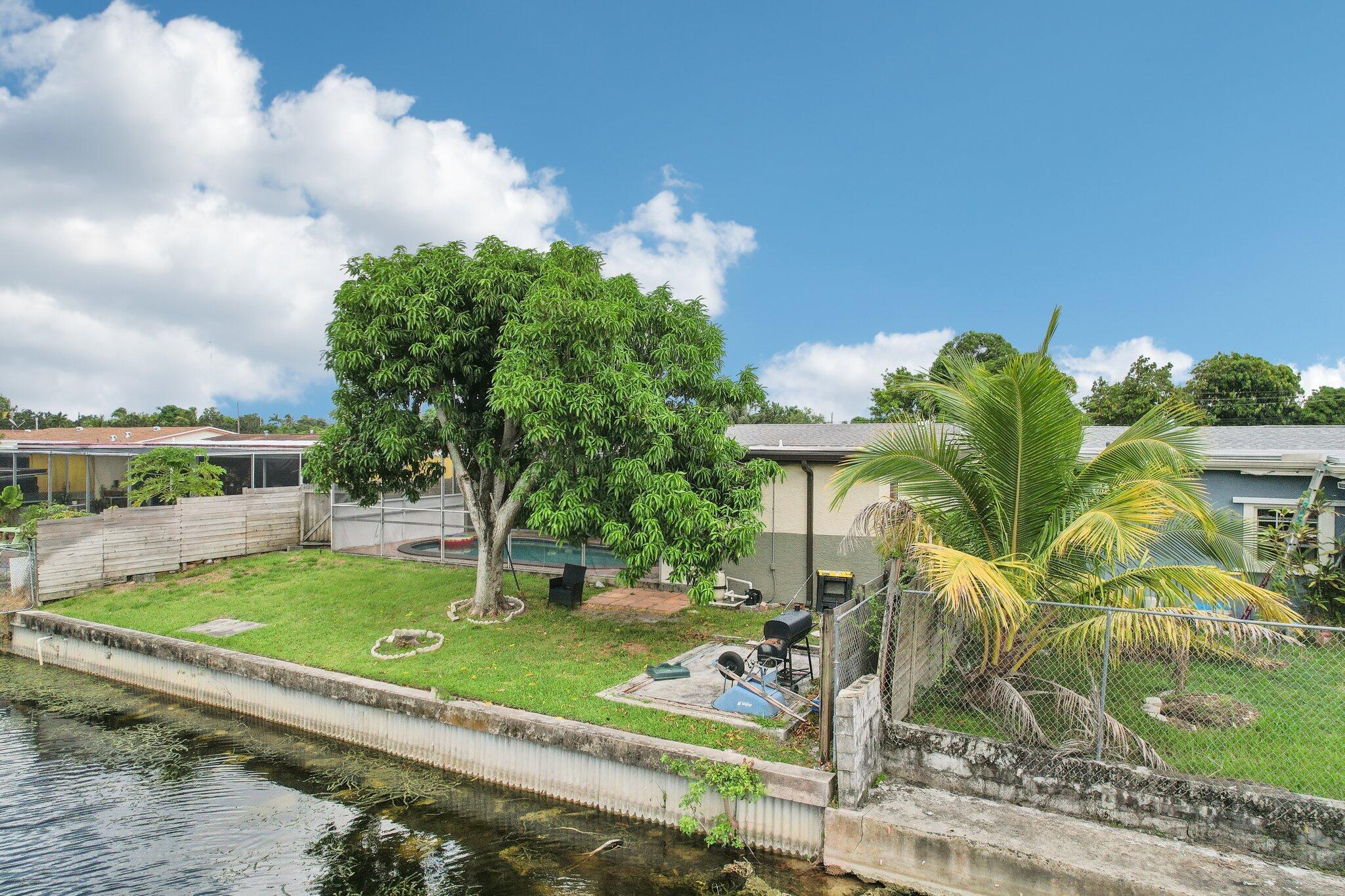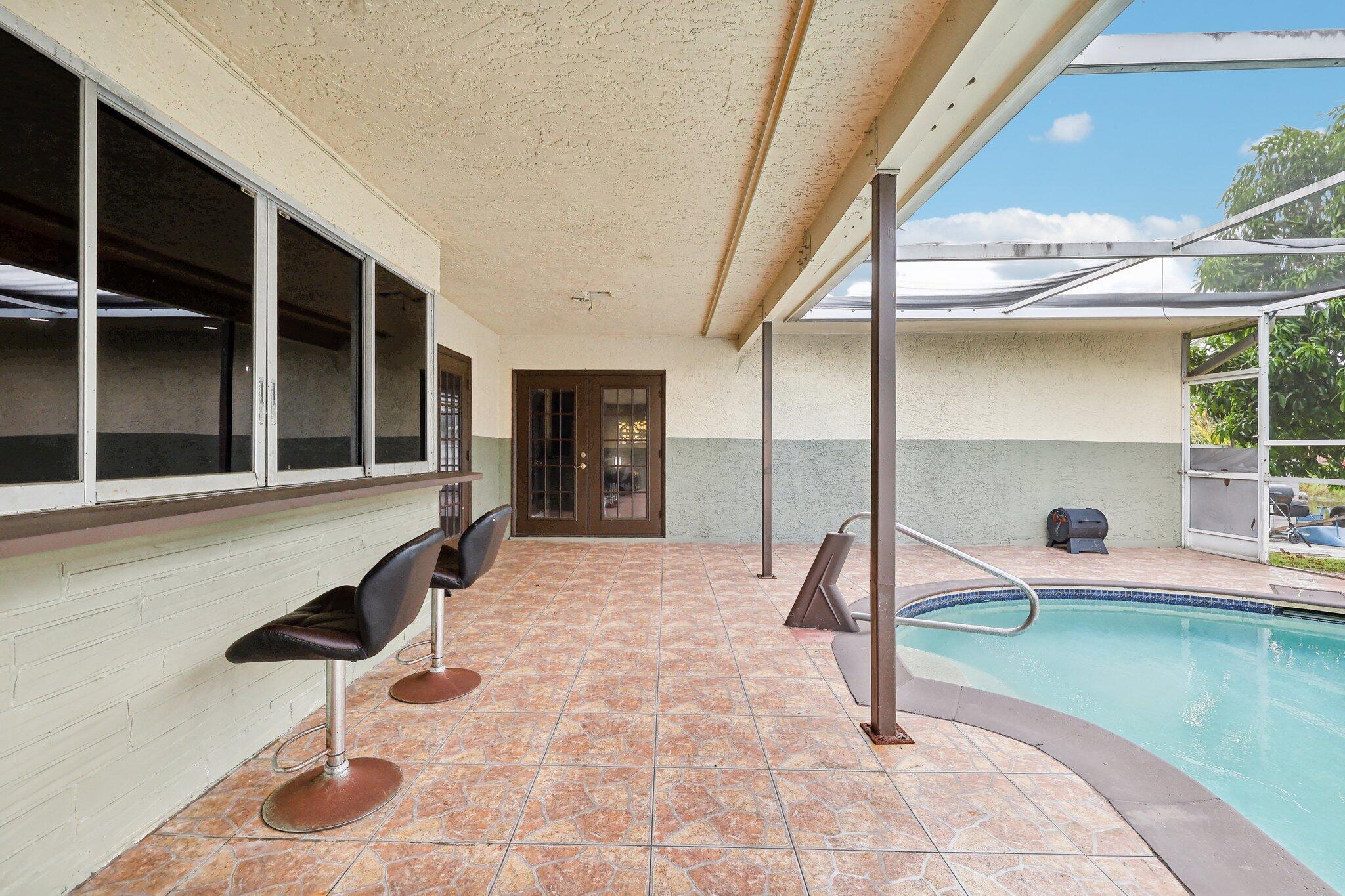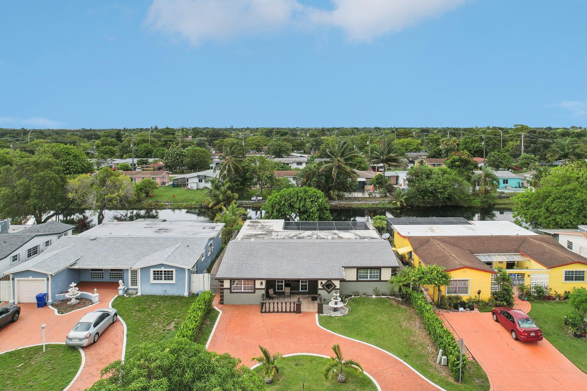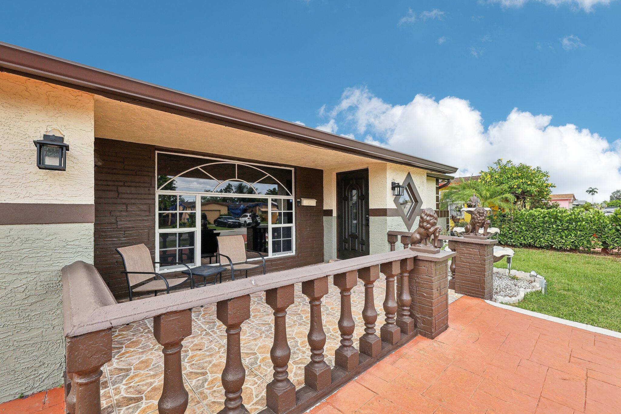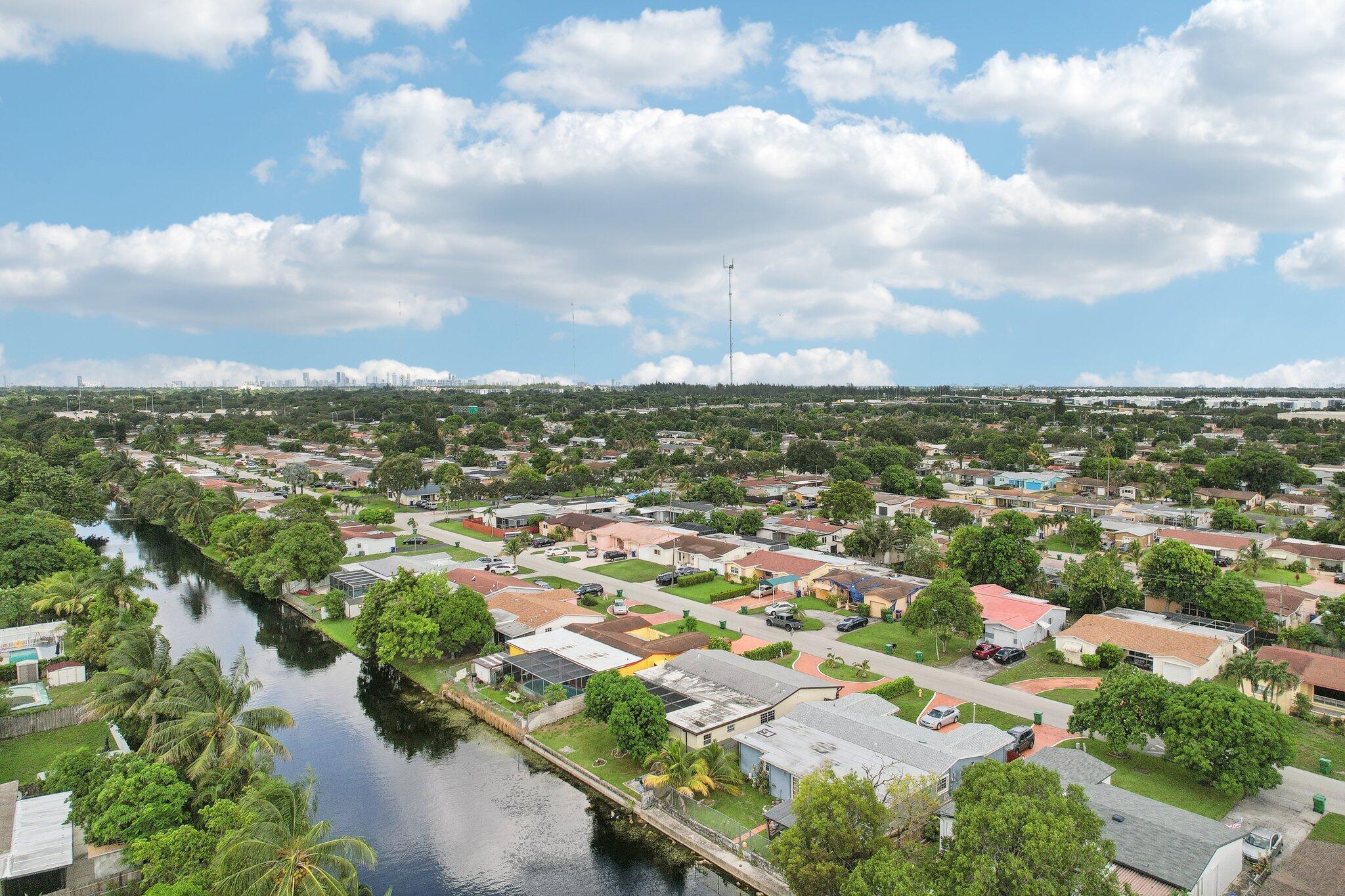 Great investment opportunity with no HOA fees, ideal for both primary residence and investment purposes. Upgraded and spacious 3-bedroom, 2-bathroom, additional office/bedroom home boasting all-tile flooring throughout. A striking large circular driveway with a fountain sets an impressive first impression. Inside, the renovated kitchen is a delight, featuring a window that opens to the expansive screened-in pool patio area with water/canal view. The split floor plan features a spacious master bedroom with a walk-in closet and a master bathroom complete with a double sink. Recently transformed with proper permits, the garage now serves as a family room area, that may be converted into an efficiency. Close to the Hard Rock Stadium, Hard Rock Hotel and Casino, and Turnpike. Sold ''As is'' .
