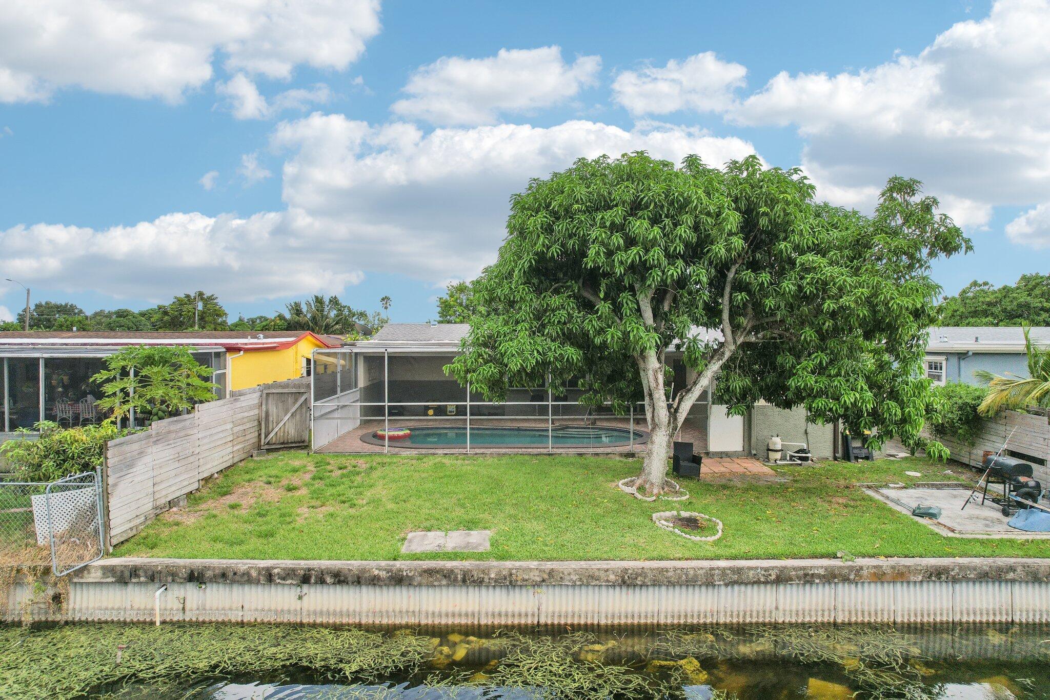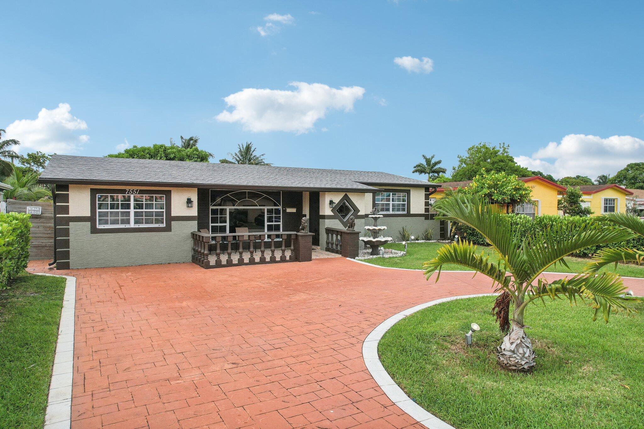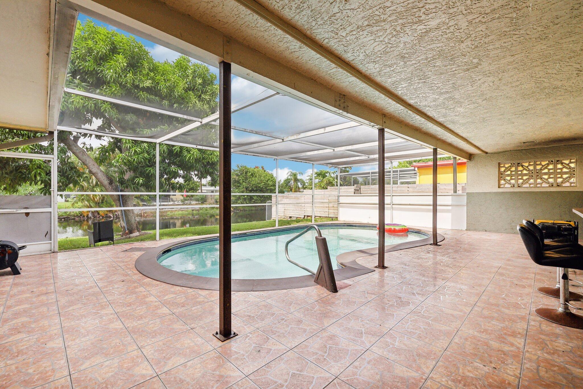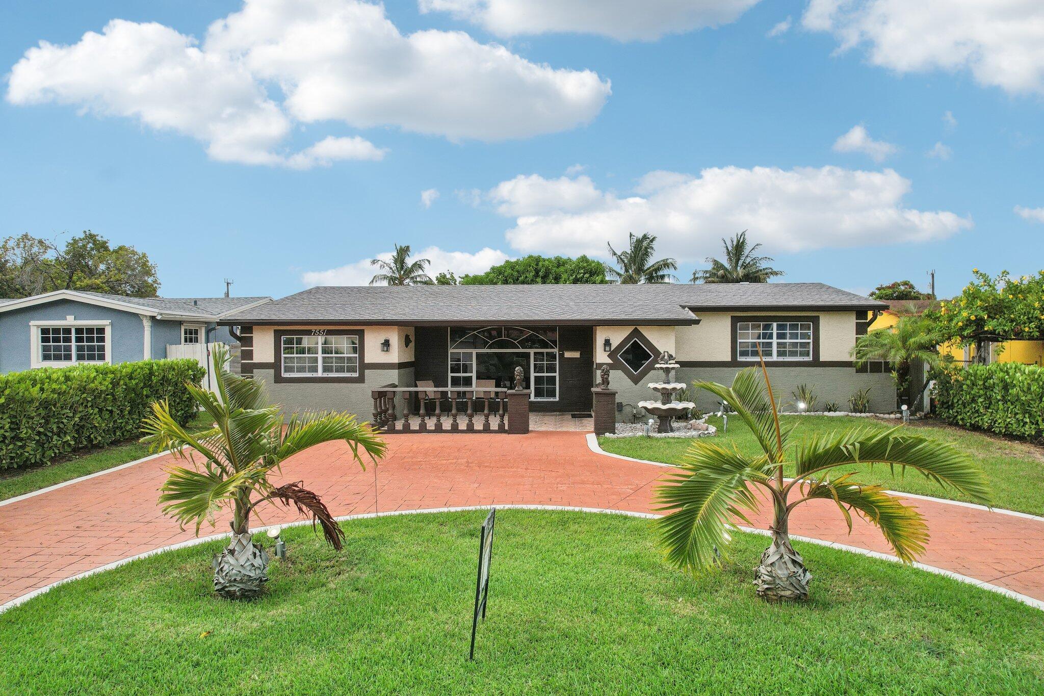 Great investment opportunity with no HOA fees, ideal for both primary residence and investment purposes. Upgraded and spacious 3-bedroom, 2-bathroom, additional office/bedroom home boasting all-tile flooring throughout. A striking large circular driveway with a fountain sets an impressive first impression. Inside, the renovated kitchen is a delight, featuring a window that opens to the expansive screened-in pool patio area with water/canal view. The split floor plan features a spacious master bedroom with a walk-in closet and a master bathroom complete with a double sink. Recently transformed with proper permits, the garage now serves as a family room area, that may be converted into an efficiency. Close to the Hard Rock Stadium, Hard Rock Hotel and Casino, and Turnpike. Sold ''As is'' .