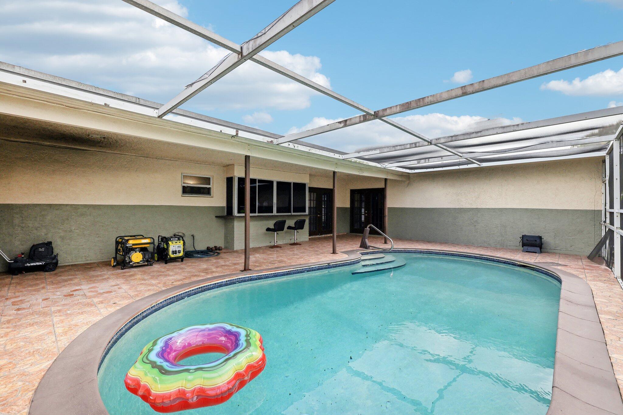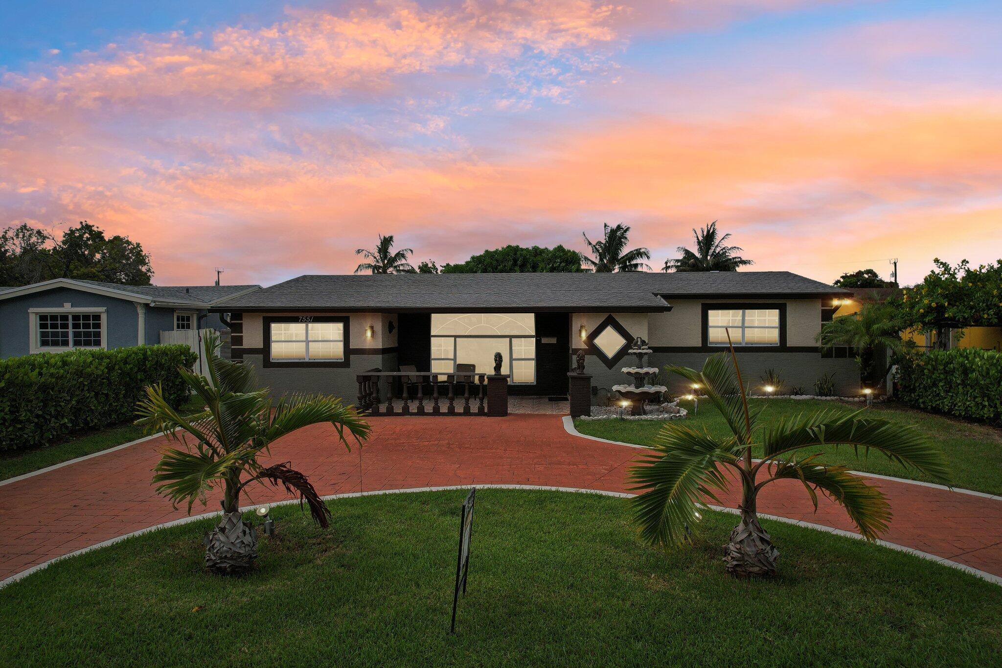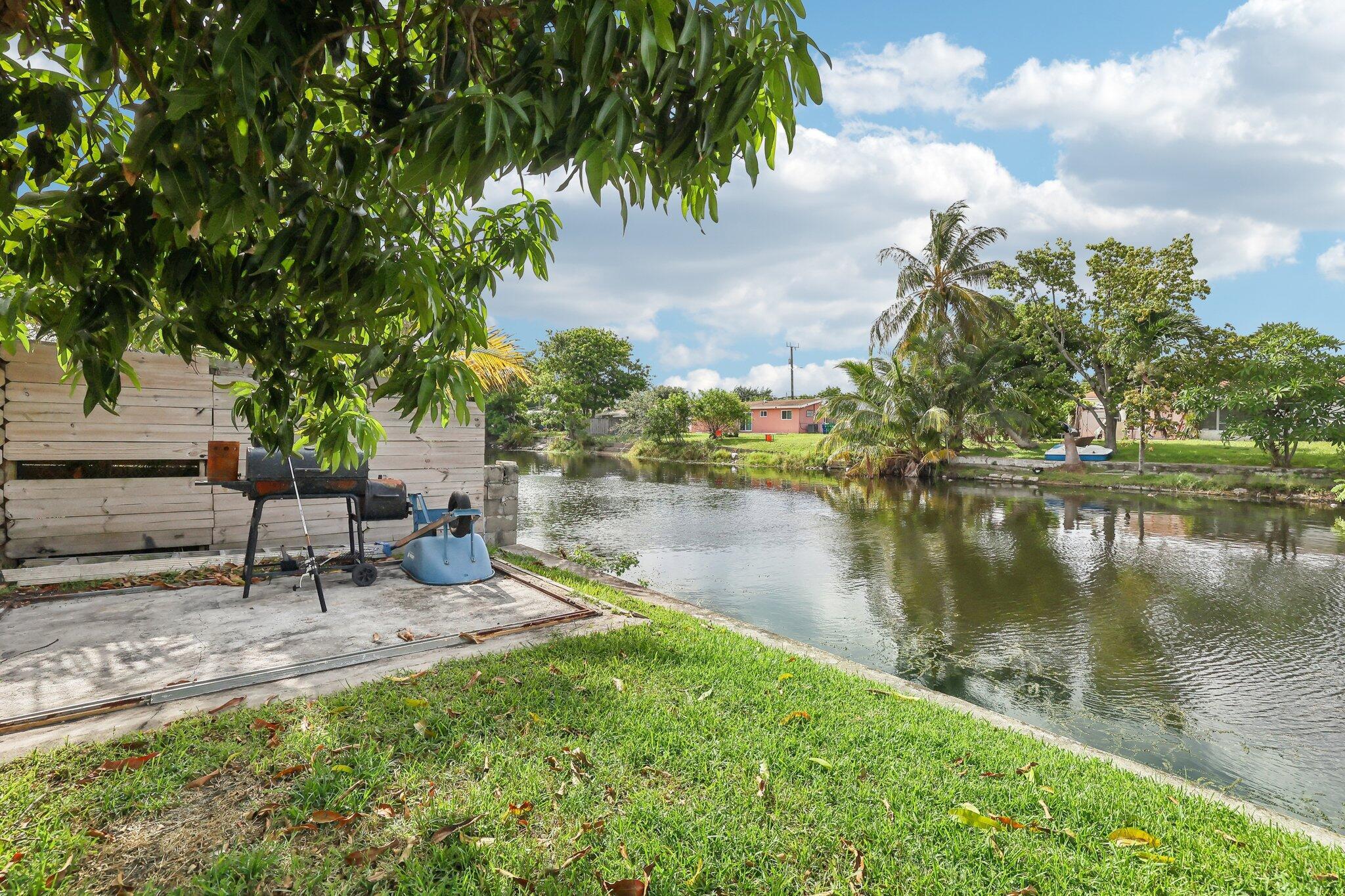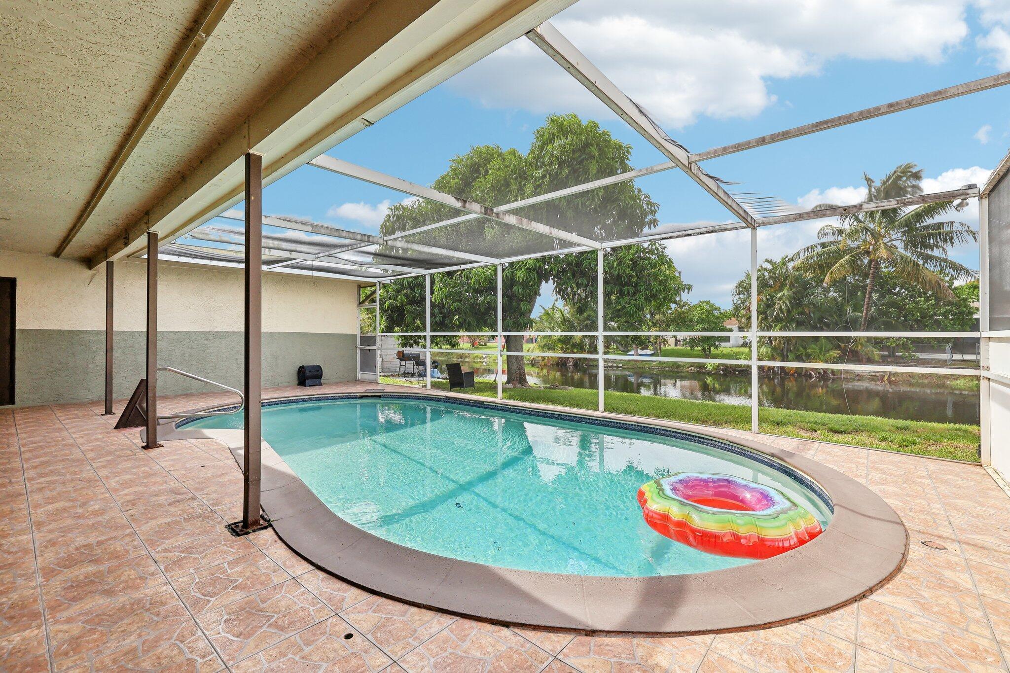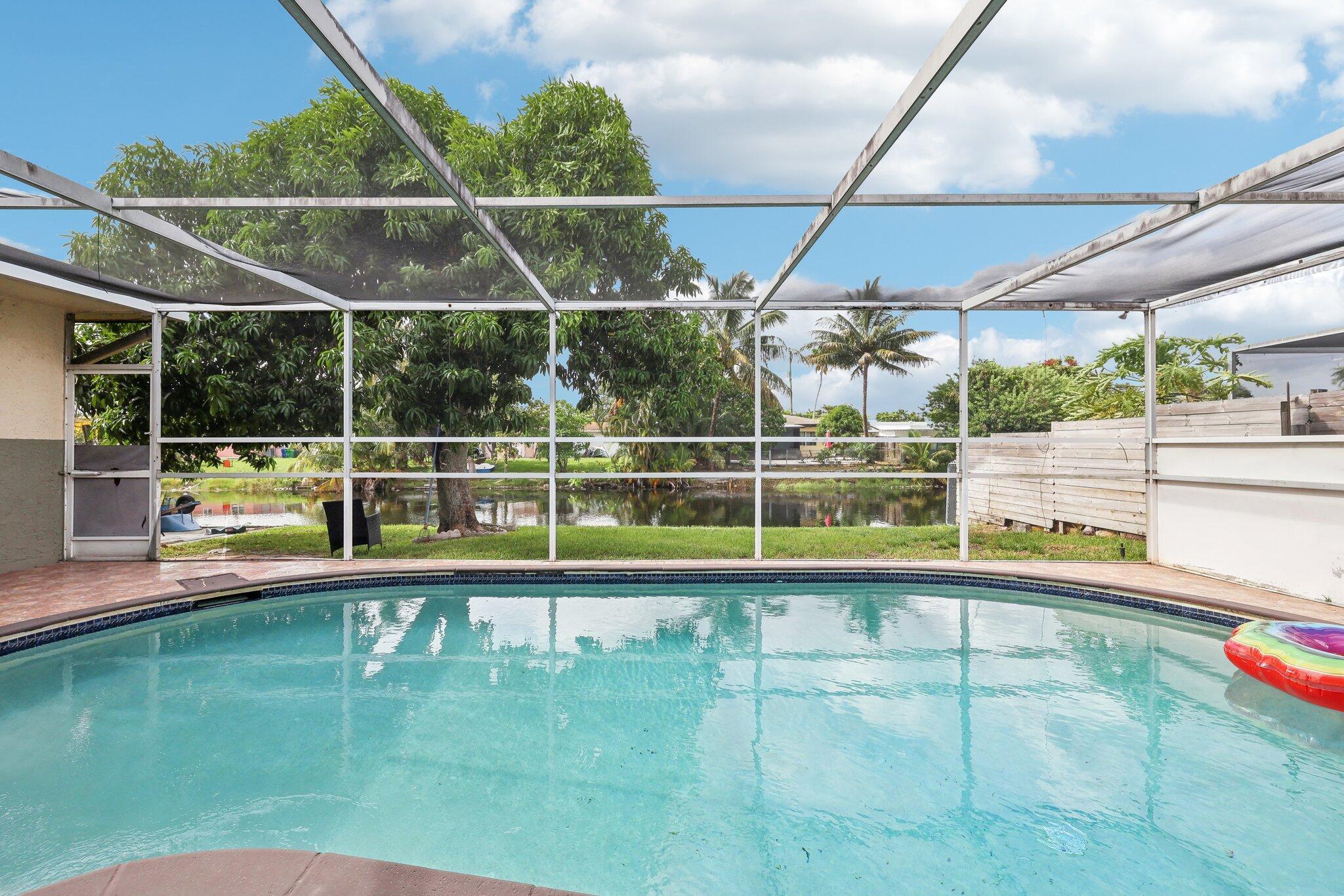 Great investment opportunity with no HOA fees, ideal for both primary residence and investment purposes. Upgraded and spacious 3-bedroom, 2-bathroom, additional office/bedroom home boasting all-tile flooring throughout. A striking large circular driveway with a fountain sets an impressive first impression. Inside, the renovated kitchen is a delight, featuring a window that opens to the expansive screened-in pool patio area with water/canal view. The split floor plan features a spacious master bedroom with a walk-in closet and a master bathroom complete with a double sink. Recently transformed with proper permits, the garage now serves as a family room area, that may be converted into an efficiency. Close to the Hard Rock Stadium, Hard Rock Hotel and Casino, and Turnpike. Sold ''As is'' .