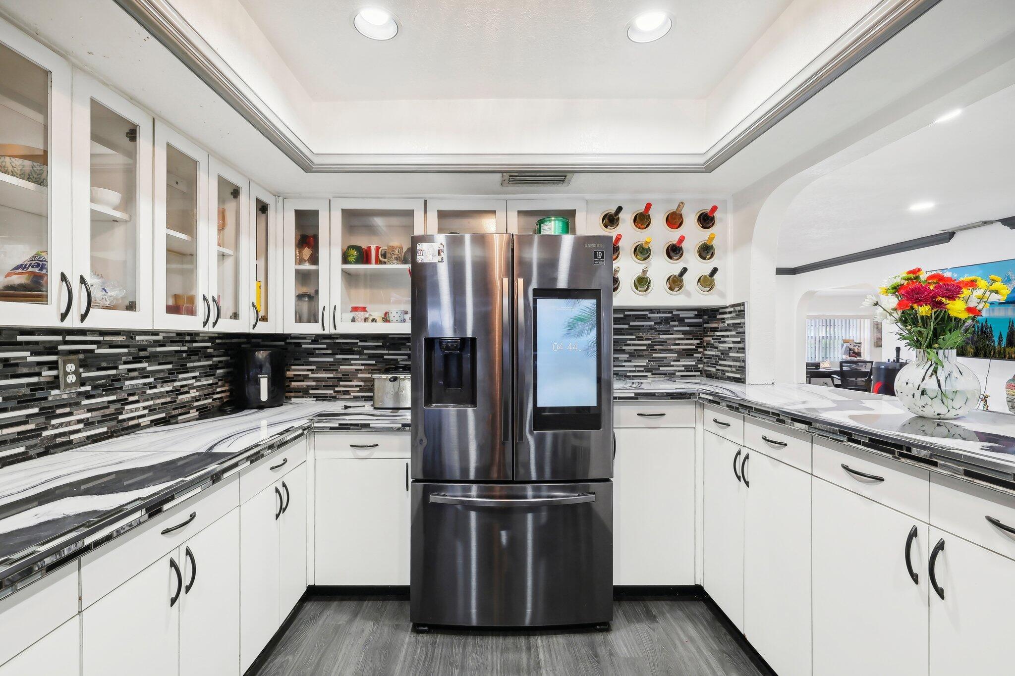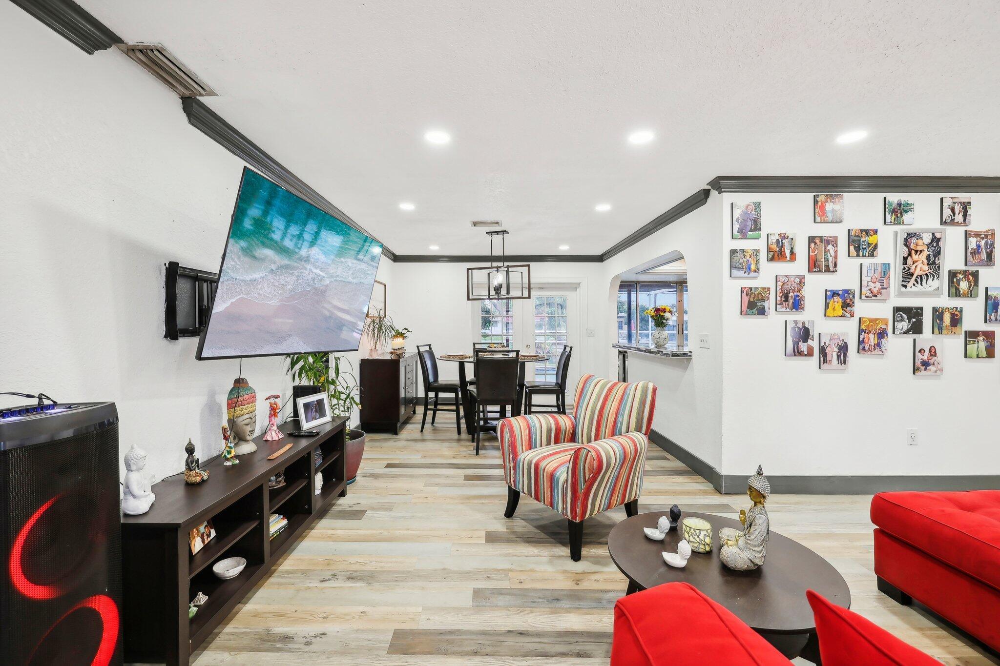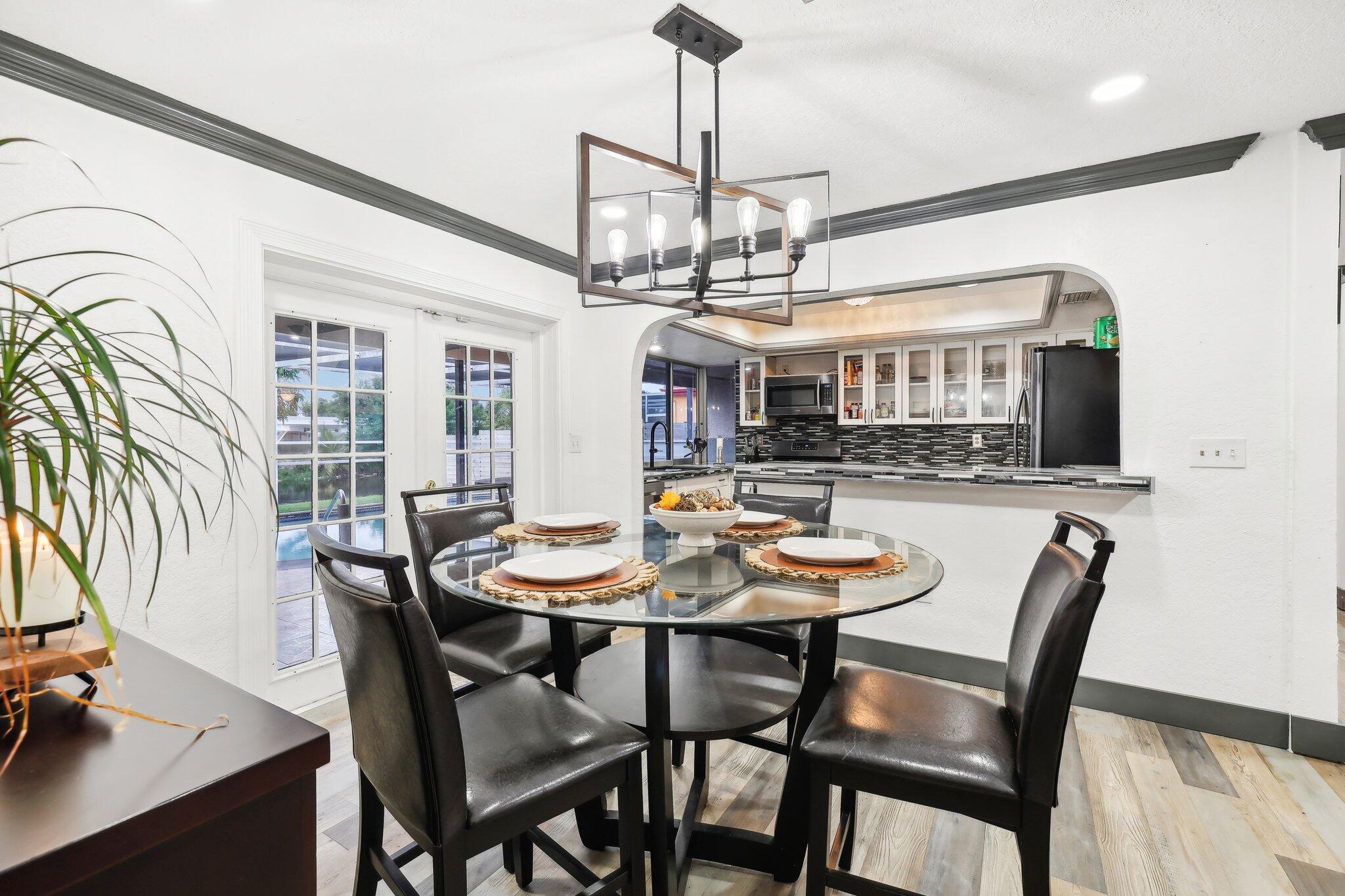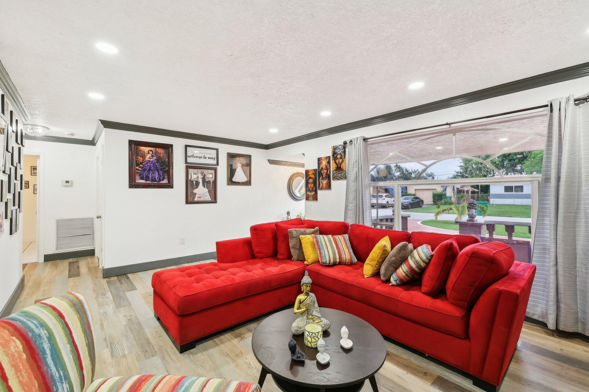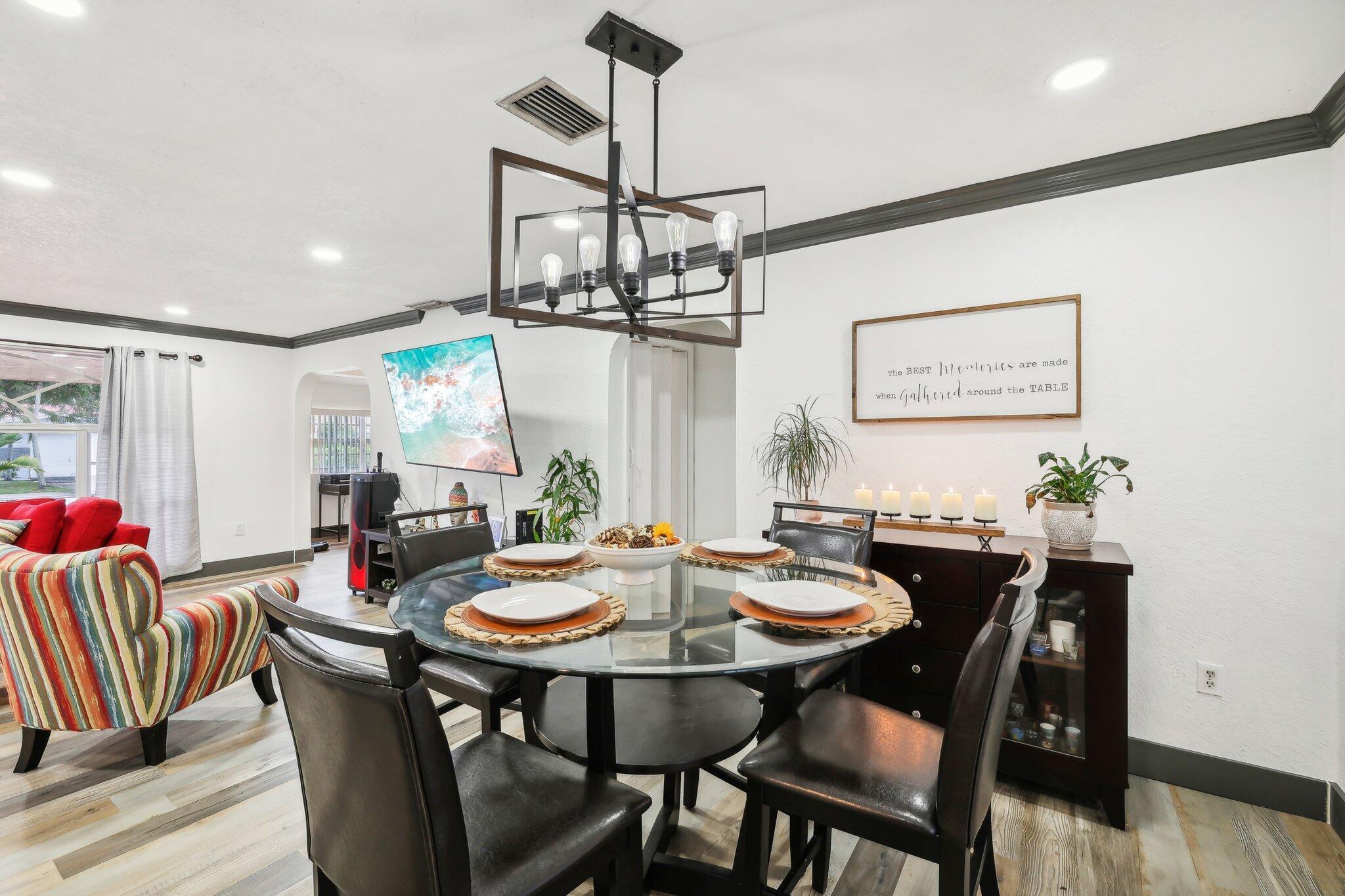 Great investment opportunity with no HOA fees, ideal for both primary residence and investment purposes. Upgraded and spacious 3-bedroom, 2-bathroom, additional office/bedroom home boasting all-tile flooring throughout. A striking large circular driveway with a fountain sets an impressive first impression. Inside, the renovated kitchen is a delight, featuring a window that opens to the expansive screened-in pool patio area with water/canal view. The split floor plan features a spacious master bedroom with a walk-in closet and a master bathroom complete with a double sink. Recently transformed with proper permits, the garage now serves as a family room area, that may be converted into an efficiency. Close to the Hard Rock Stadium, Hard Rock Hotel and Casino, and Turnpike. Sold ''As is'' .