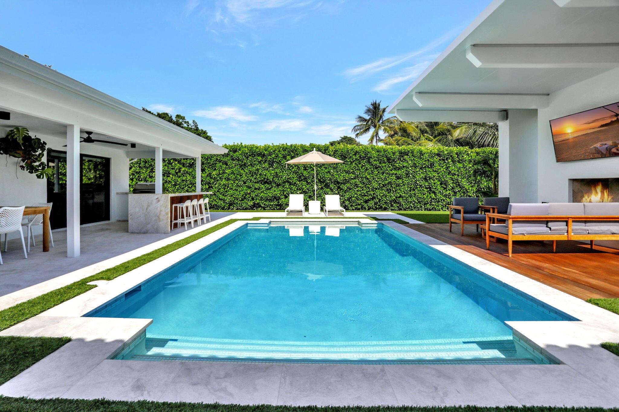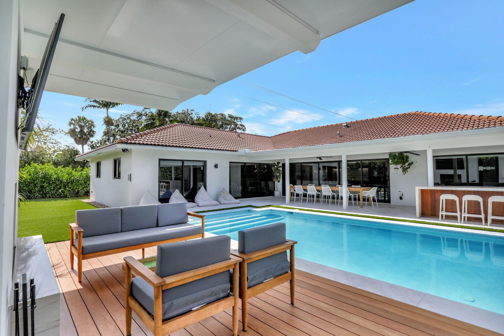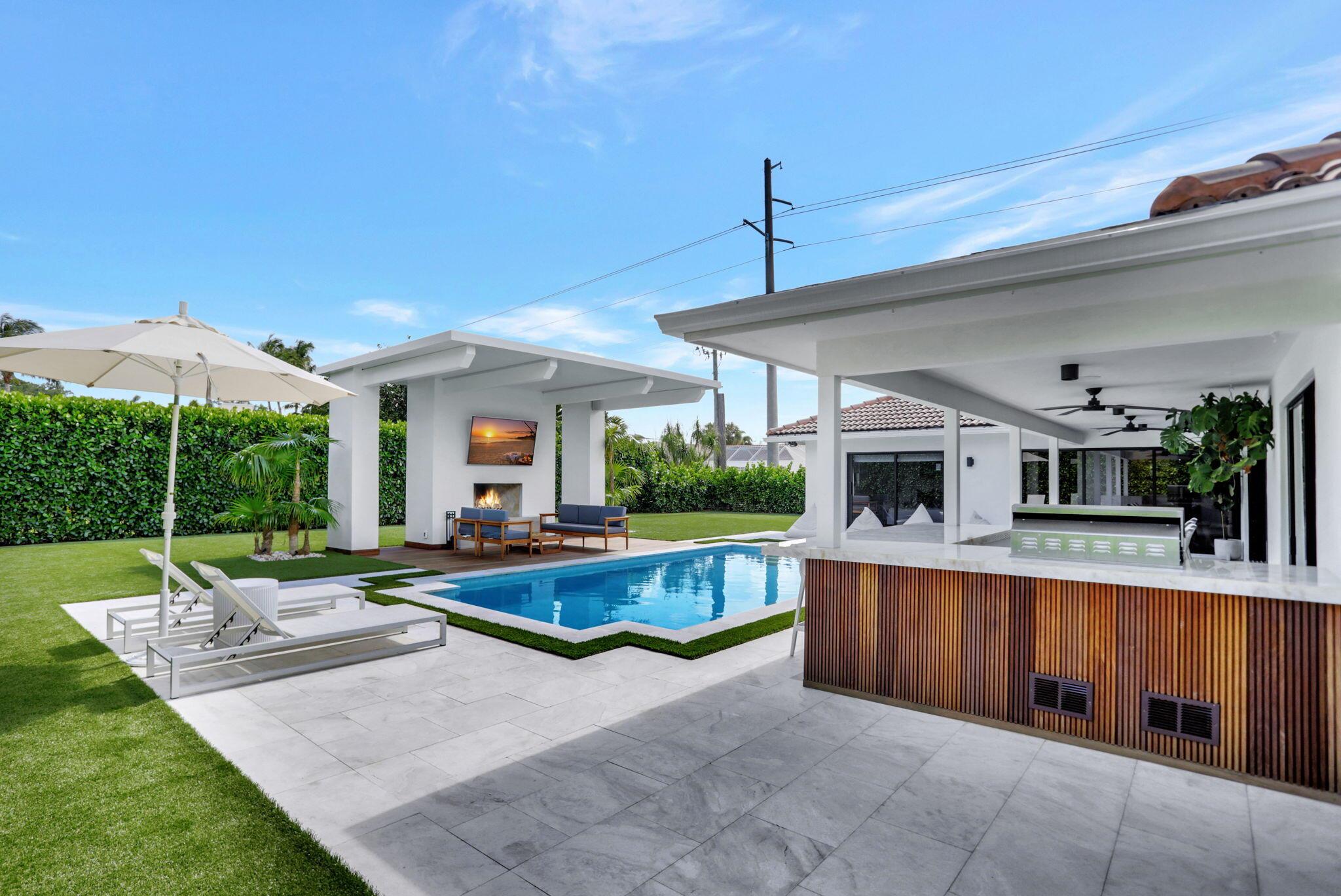 Completely recently rebuilt down to the studs. This 5/3 pool home is like no other in the highly desirable area of East BocaRaton. The backyard in truly an amazing outdoor resort playground. The new salt water pool has been redone with a stunning outdoor wood burning fire place surrounded by Brazilin wood decking, large covered patio with a summer kitchen, all great for gatherings with a huge backyard.Bring the outdoors in with the all back of the house sliders opening up to the backyard. The Custom-builtkitchen has a large island and a custom-built mahogany wood table. The living room has high ceilings. The rebuilt also includes plumbing, electrical, doors, floors, drywall and more.