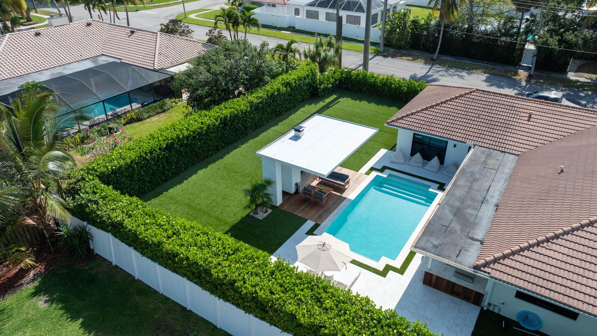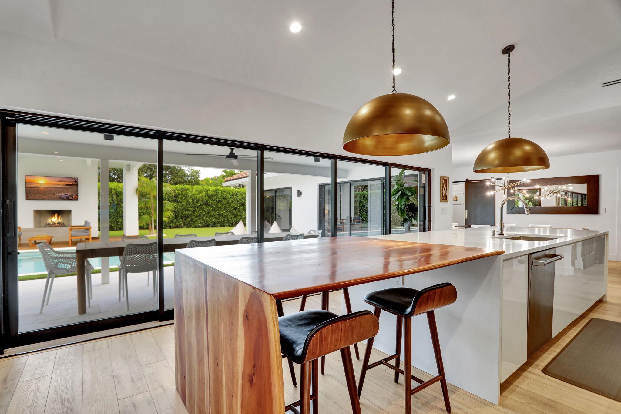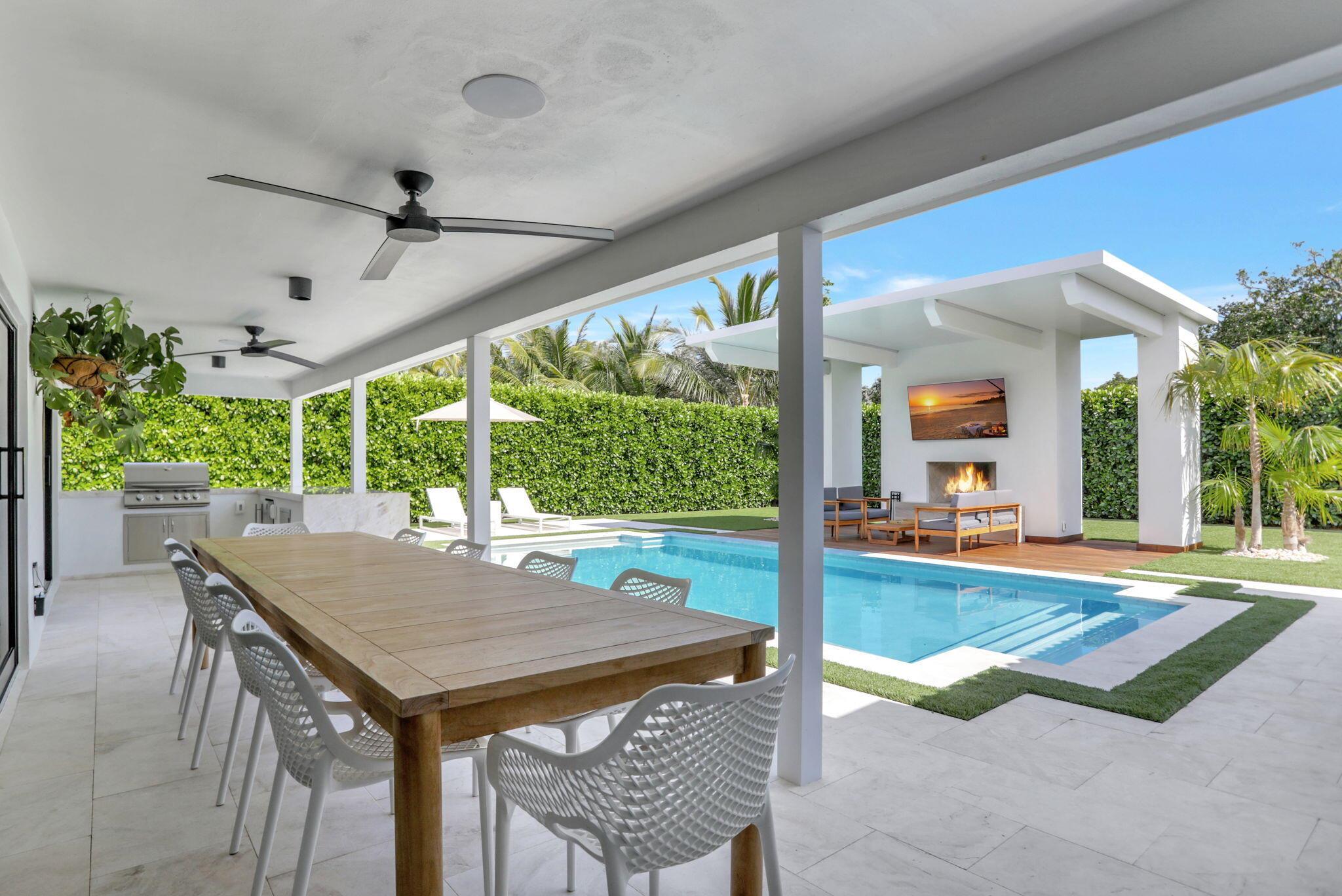 Completely recently rebuilt down to the studs. This 5/3 pool home is like no other in the highly desirable area of East BocaRaton. The backyard in truly an amazing outdoor resort playground. The new salt water pool has been redone with a stunning outdoor wood burning fire place surrounded by Brazilin wood decking, large covered patio with a summer kitchen, all great for gatherings with a huge backyard.Bring the outdoors in with the all back of the house sliders opening up to the backyard. The Custom-builtkitchen has a large island and a custom-built mahogany wood table. The living room has high ceilings. The rebuilt also includes plumbing, electrical, doors, floors, drywall and more.