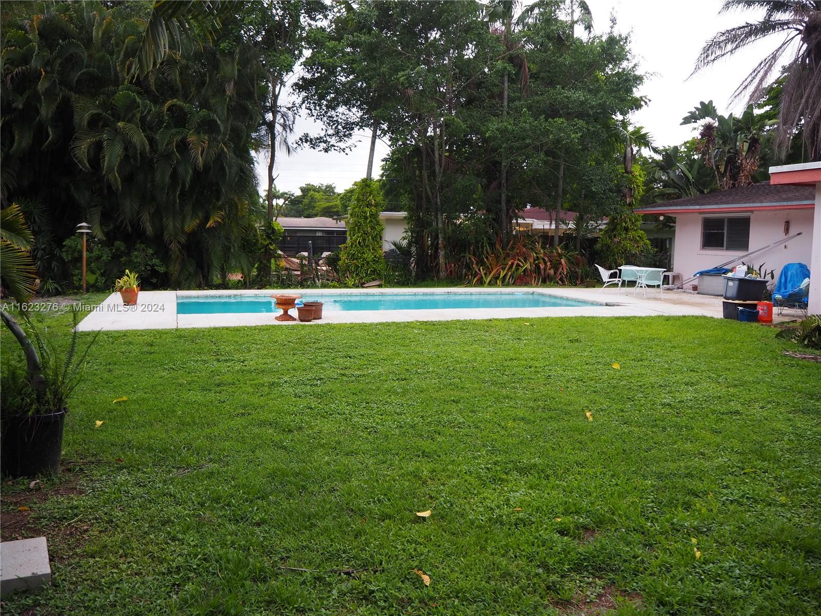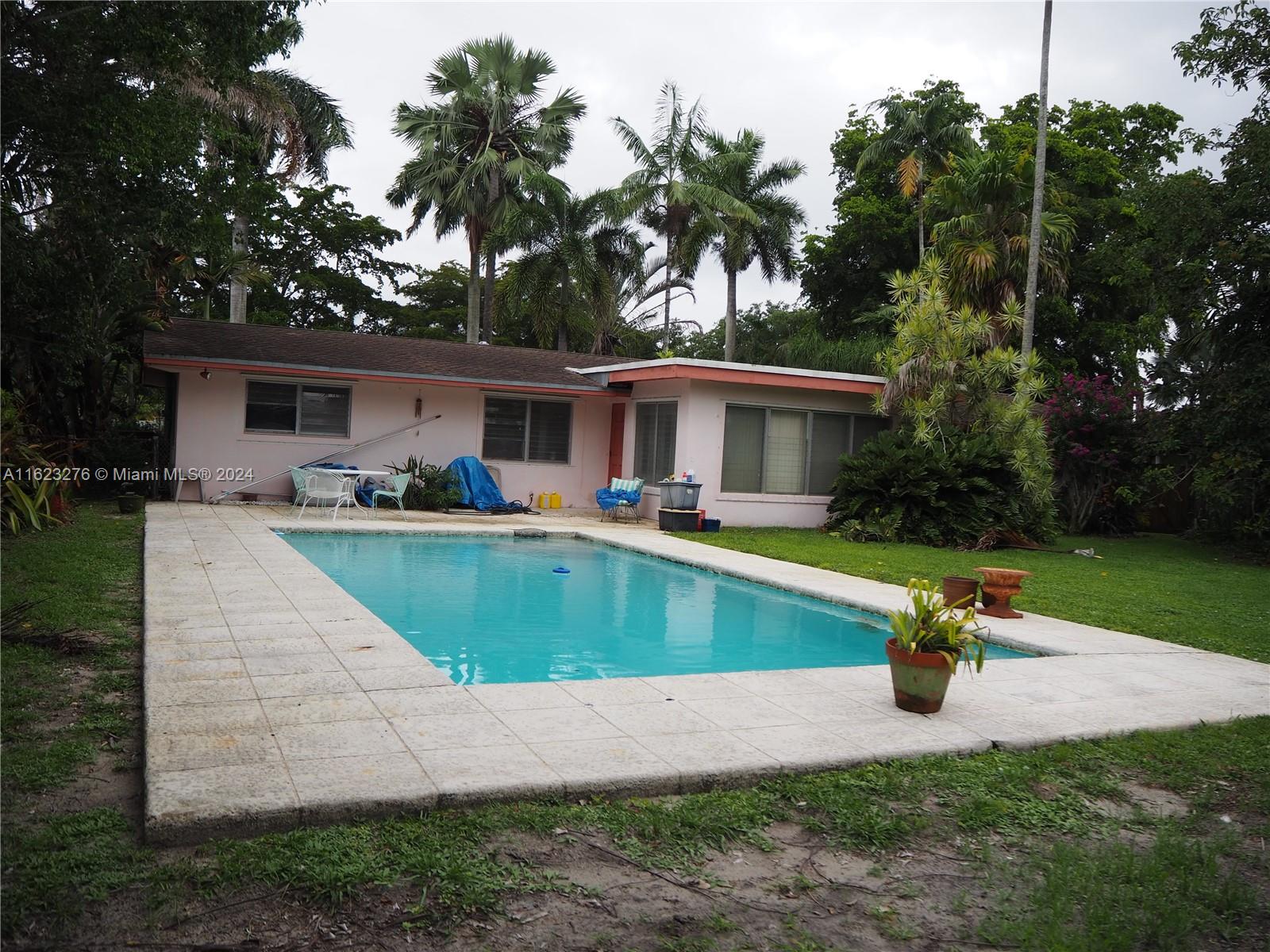Classic mid-century modern ranch home with in-ground pool & lush tropical landscaping. One of the last original homes in this amazing neighborhood. Seller is offering $10,000 at closing. This home has a newer kitchen, new heavy-duty AC system, terrazzo floors throughout, a wonderful white brick decorative fireplace, a lovely tiled pool and tropical front & rear yards. The home sits on a beautiful tree-lined street in a very desirable enclave full of mid-century homes. Orchid Drive is quiet, private, has very little traffic, yet is only minutes to shops, restaurants, and the turnpike. If you are looking for an opportunity to renovate a true classic Florida mid-century pool home, this is it.