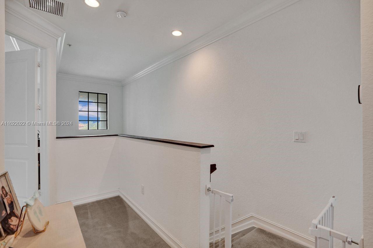 Welcome to this stunning tri-level townhome, in the sought-after community of Raintree. All three bedrooms have their own full bathroom, with a half bathroom in the main living area. The ground level features one bedroom with a walk-in closet. The primary bedroom is on the third level and features a shower, double sink, and a sitting area. The third bedroom has a full bathroom with a tub. Tile and carpet flooring. The kitchen with stainless steel appliances, a cooking island, and a formal dining area. The second and third floor has an outdoor balcony for your own private retreat. Numerous upgrades including custom crown molding throughout the entire home, upgraded staircases and kitchen backsplash. Impact windows. Two-car garage. Amenities include a community pool, clubhouse, and gym.