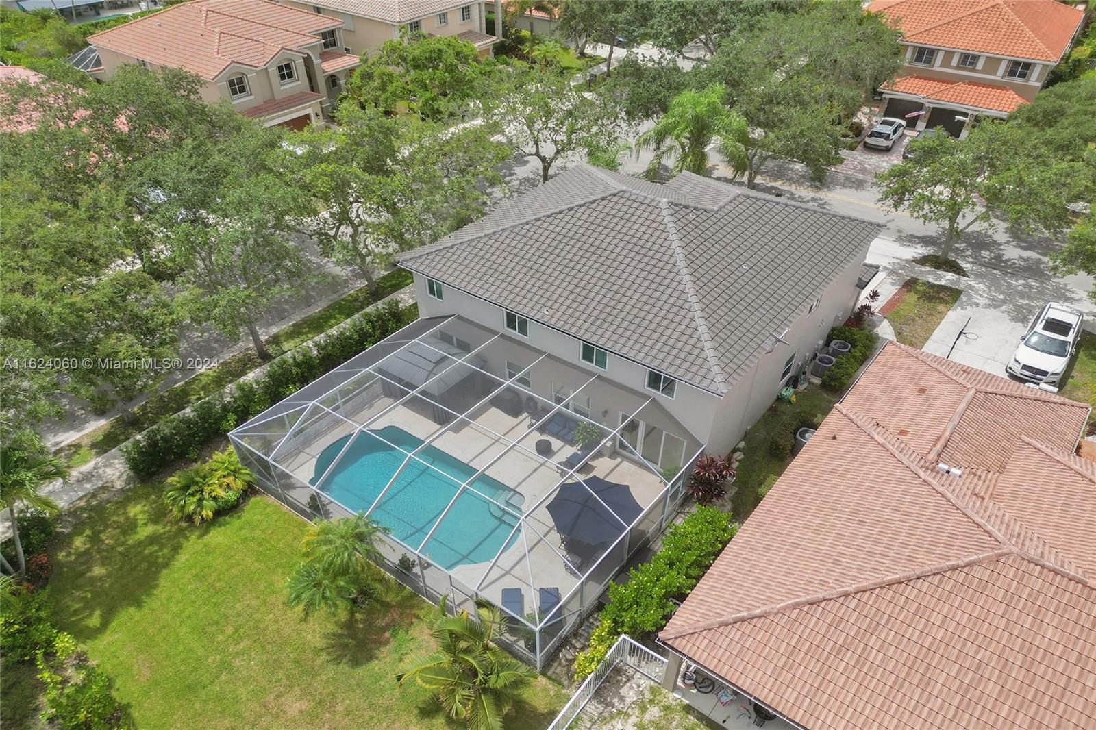 Introducing the home of your dreams in the gated community of The Ridges at Weston Pond. Located in a quiet cul-de-sac on a corner lot, this modern 5 BD / 3 BA home offers a 2-car garage, impact windows & a newer roof (2020). Enjoy neutral tone ceramic flooring on the first level, luxury vinyl wood flooring on the stairs/hallways & new railings for the stairs. The renovated kitchen features shaker white cabinets, quartz countertops, a center island, a wine fridge, stainless steel appliances, & a double oven. First floor features an office with a bathroom. Primary bedroom includes an office with white french doors. Additional features include a re-designed laundry room with LG washer/dryer, screened pool & patio area with a diamond brite resurfaced chlorine pool. Light fixures will remain.