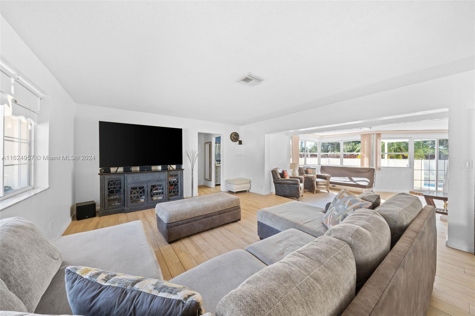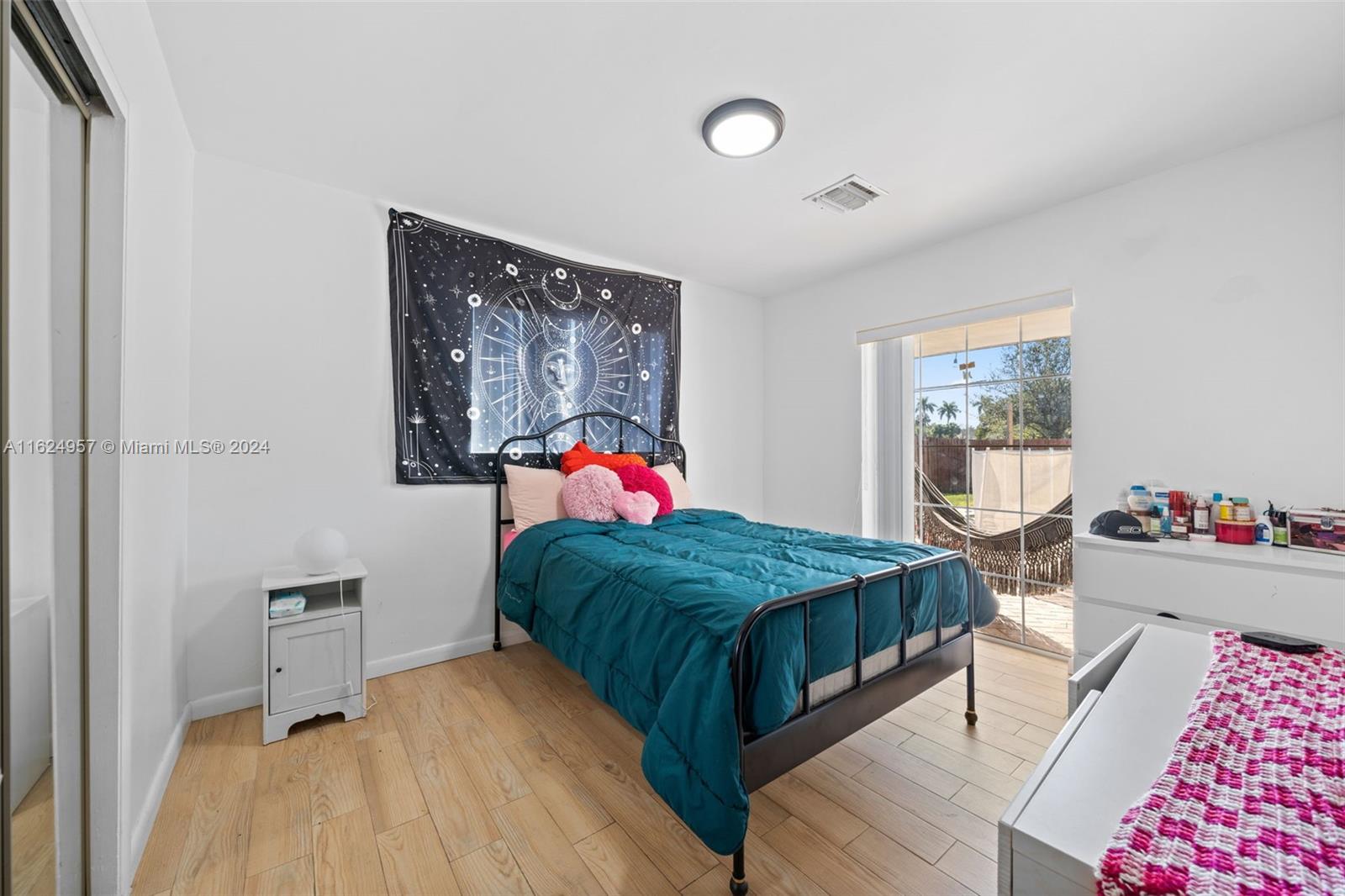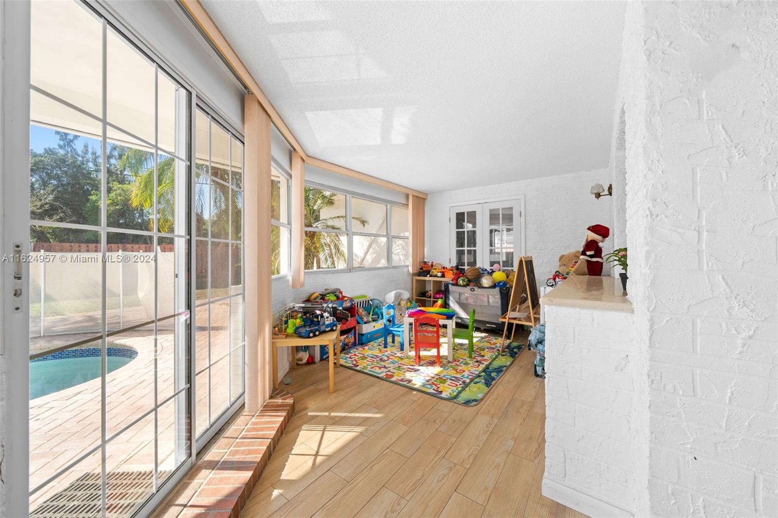Loved coming of private access from your backyard to 2.5-acre park where the trees rustle in the breeze, a place from you backyard that could escape everyday and find peace and tranquility! Inside of the house you can enjoy of your Open Living/Dining room from the kitchen for complete family entertainment. Spacious 3 bedroom/2 bathrooms split open floor plan, dedicated kids play room; family room with open space to the great private patio and pool, ideal and perfect for all family!!! Modern brown color "High Impact Windows and Doors". SELLER WILL CONTRIBUTE WITH $6000 to BUYERS for Interest Rate Points.