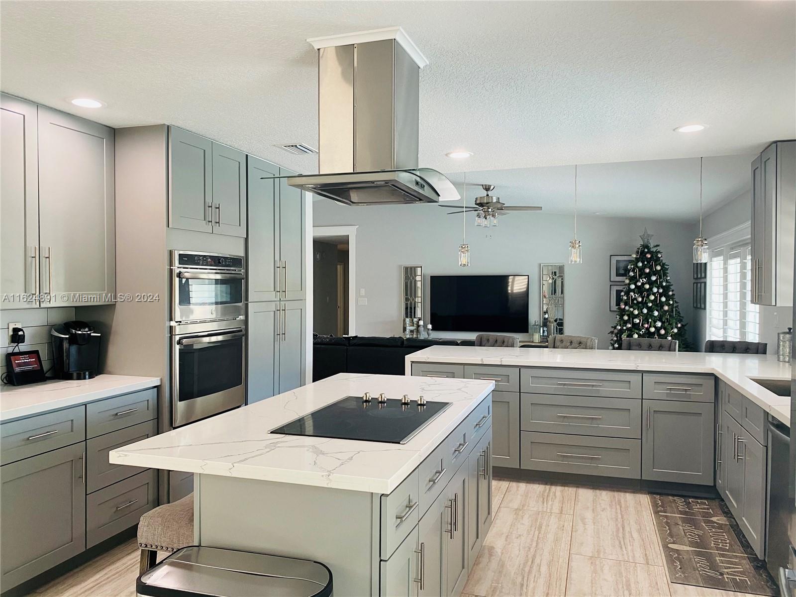 Fully Remodeled in 2021. Consistent modern finishes throughout, new roof, all impact windows & doors, gorgeous oversized chefs kitchen with massive breakfast bar and center island. Pool resurfaced in 2019, euro tile patio with built in fire pit, fully fenced in with 6 foot aluminum fence. Amazing lot, with over 60ft of from property line to canal bank.