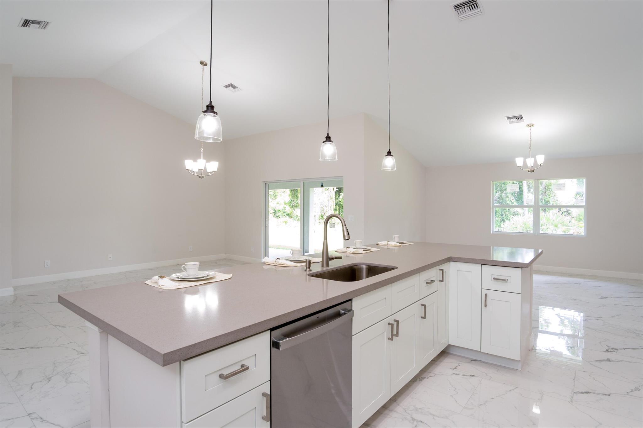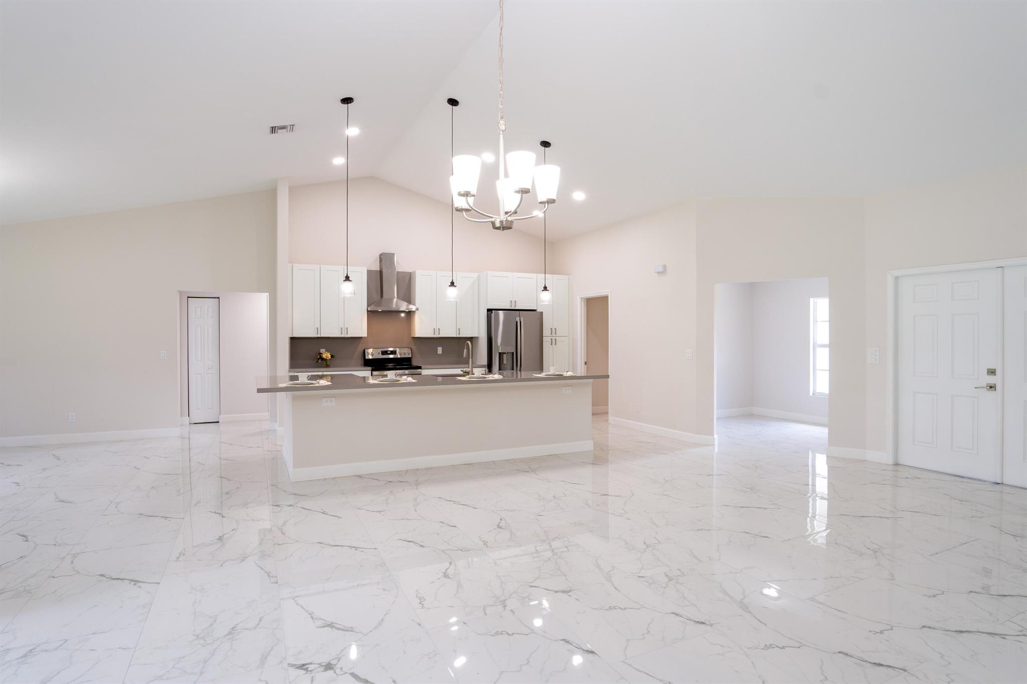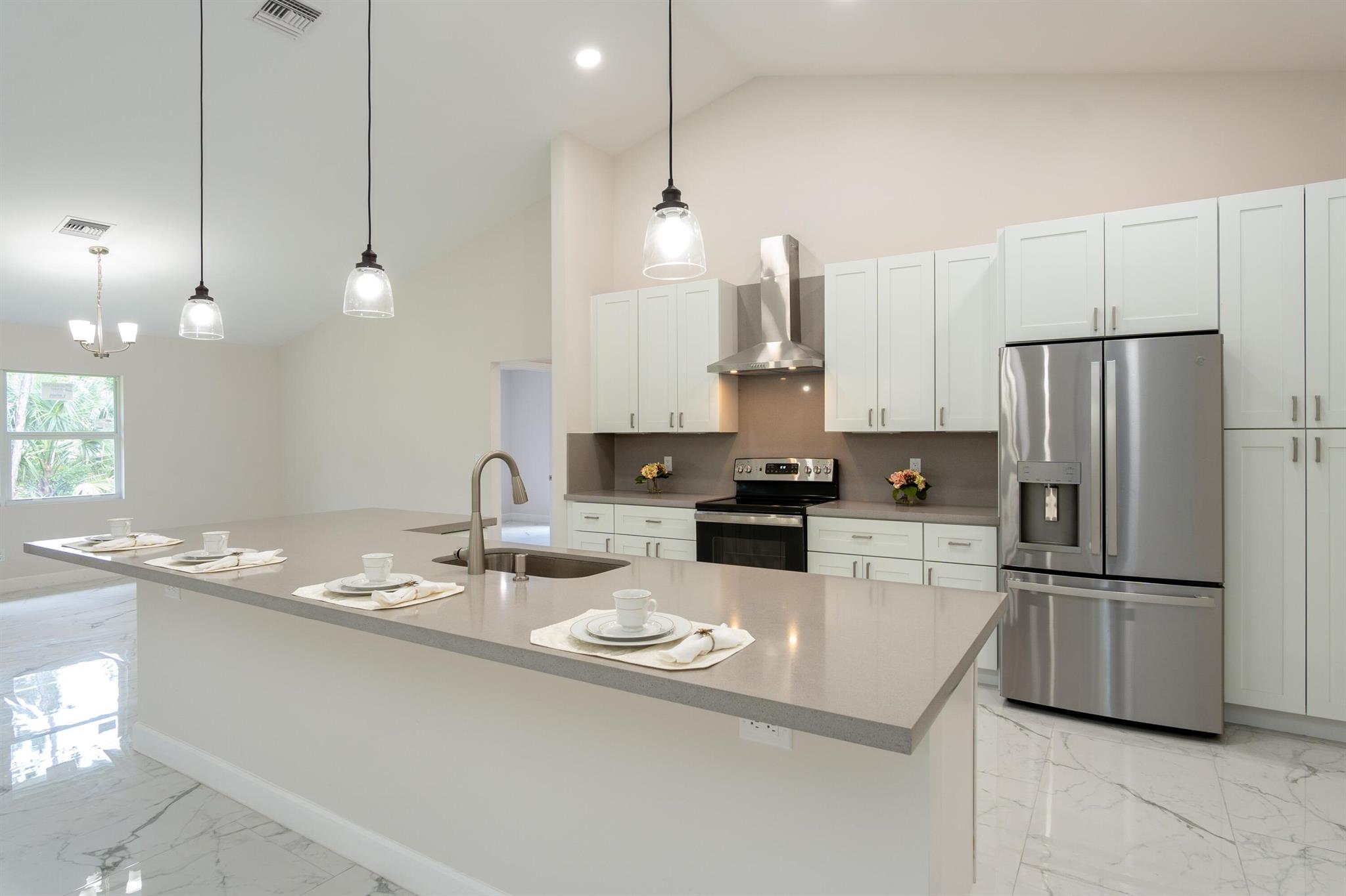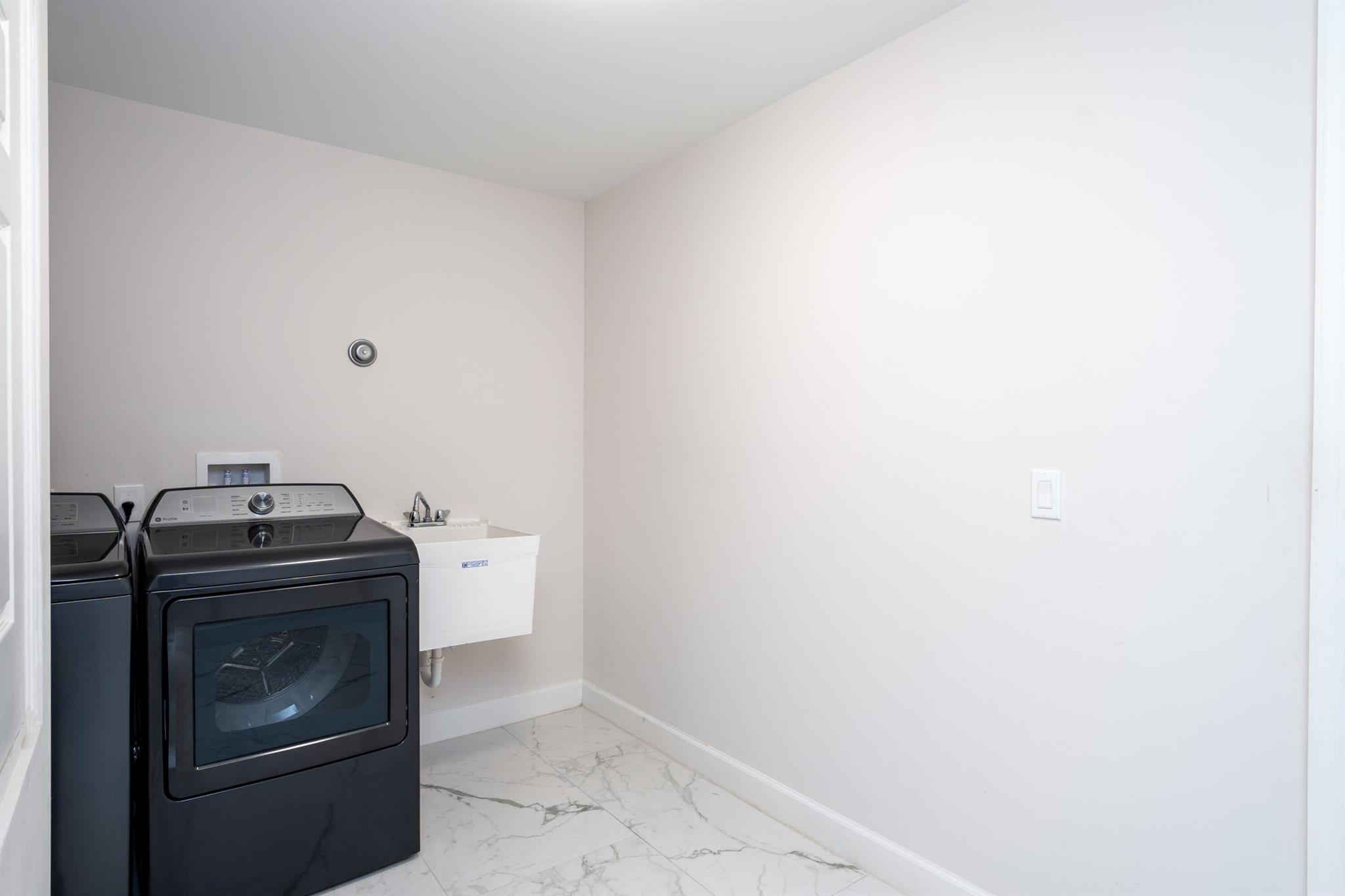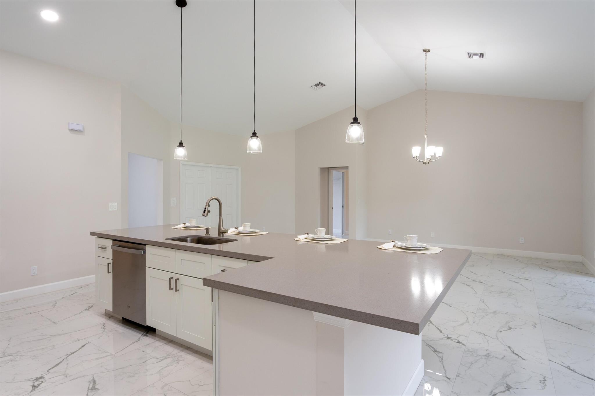 Welcome to your new luxurious 3-bedroom, 2-bathroom home with a den. This fully custom 2,212 sqft house is contemporary with vaulted ceilings, quartz countertops, pendant lights, and marble-like porcelain tiles throughout. The open floor plan is perfect for entertaining guests and the chef's kitchen is equipped with stainless steel appliances and soft-close cabinets.The primary bedroom is spacious and includes an extra oversized walk-in closet, a primary bath with dual sinks, a freestanding tub, and a separate rain shower. The laundry room is sizable and includes a new washer and dryer with a sink. The 2-car garage has an epoxy floor. This home offers you peace of mind with impact windows and doors.