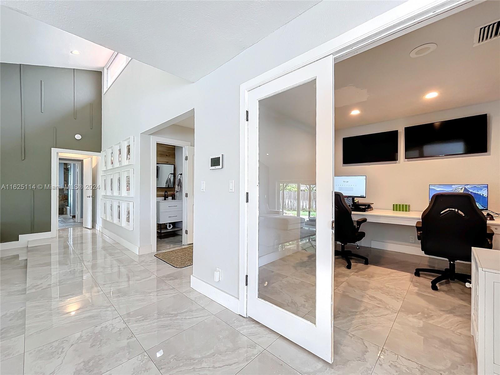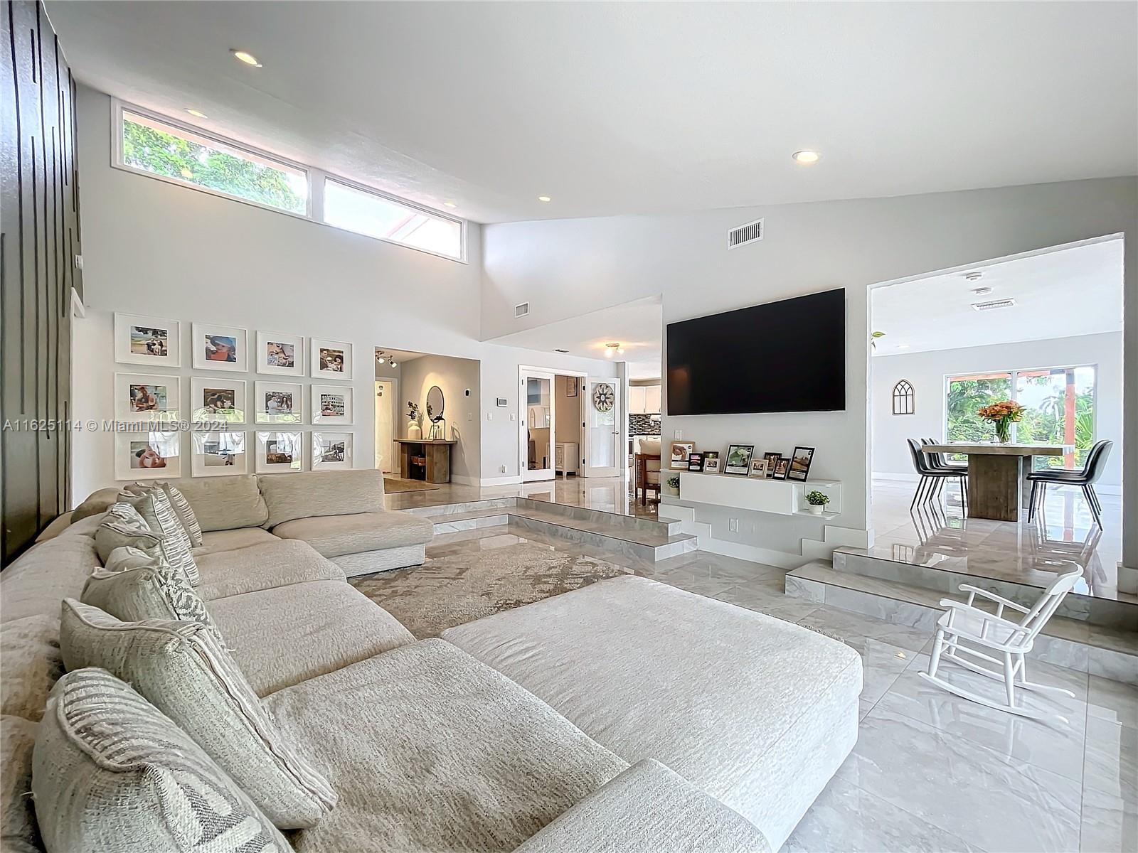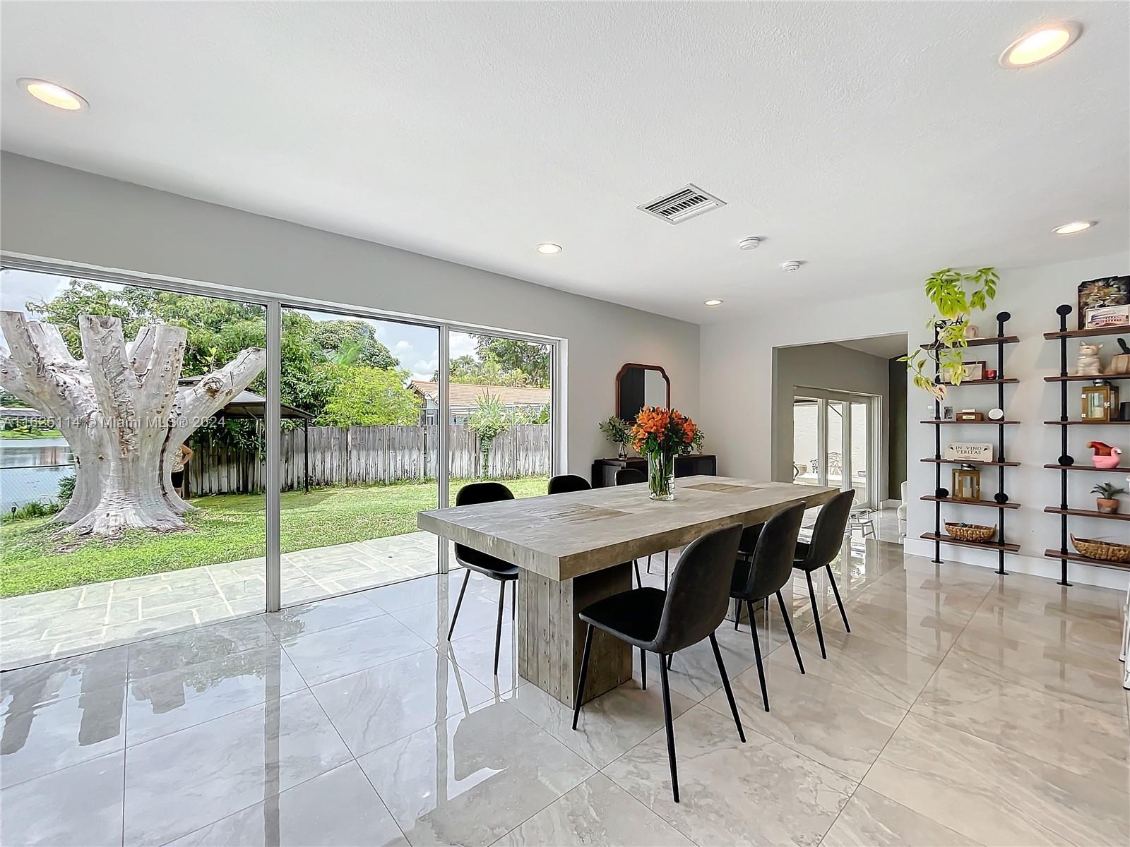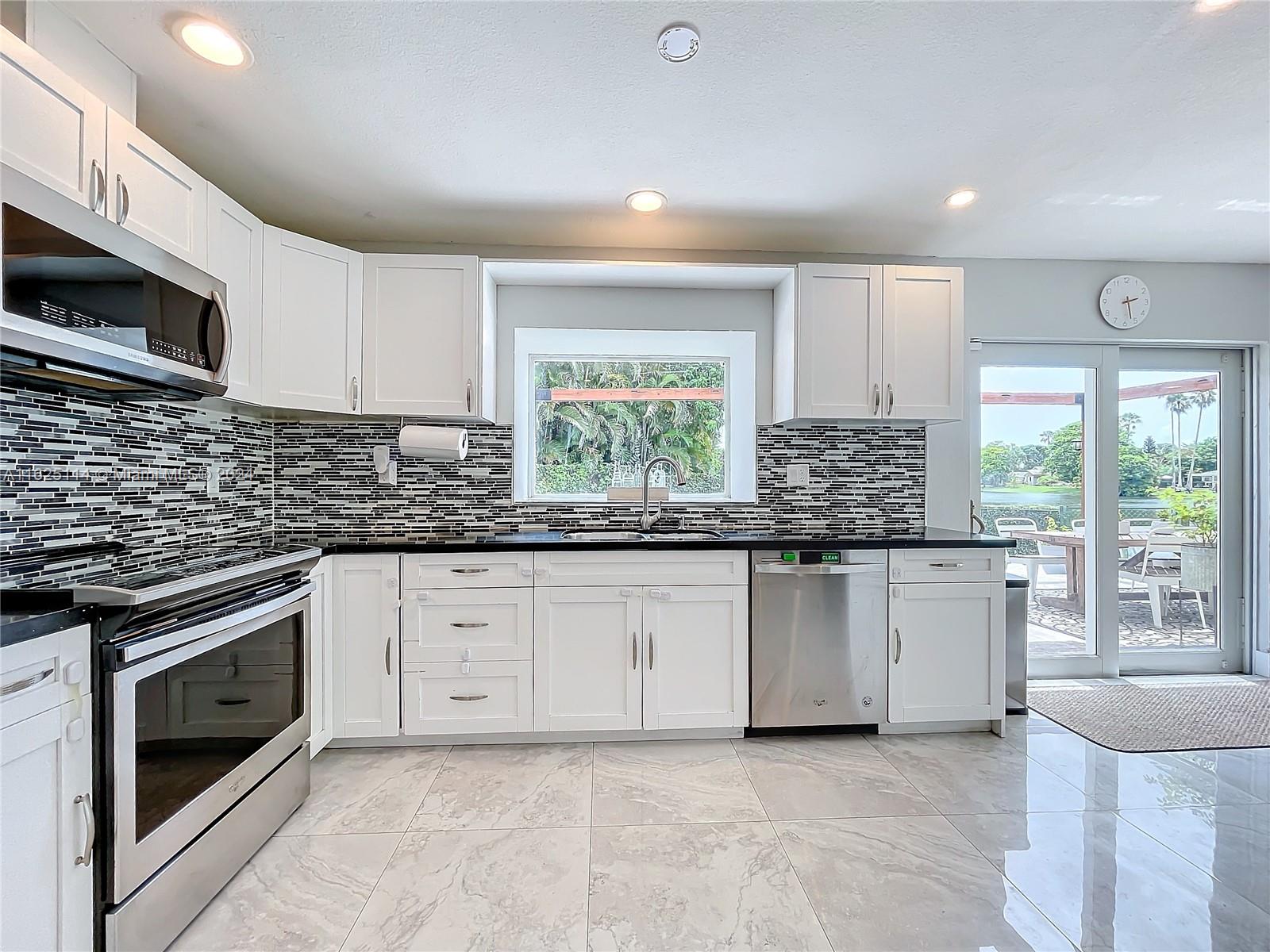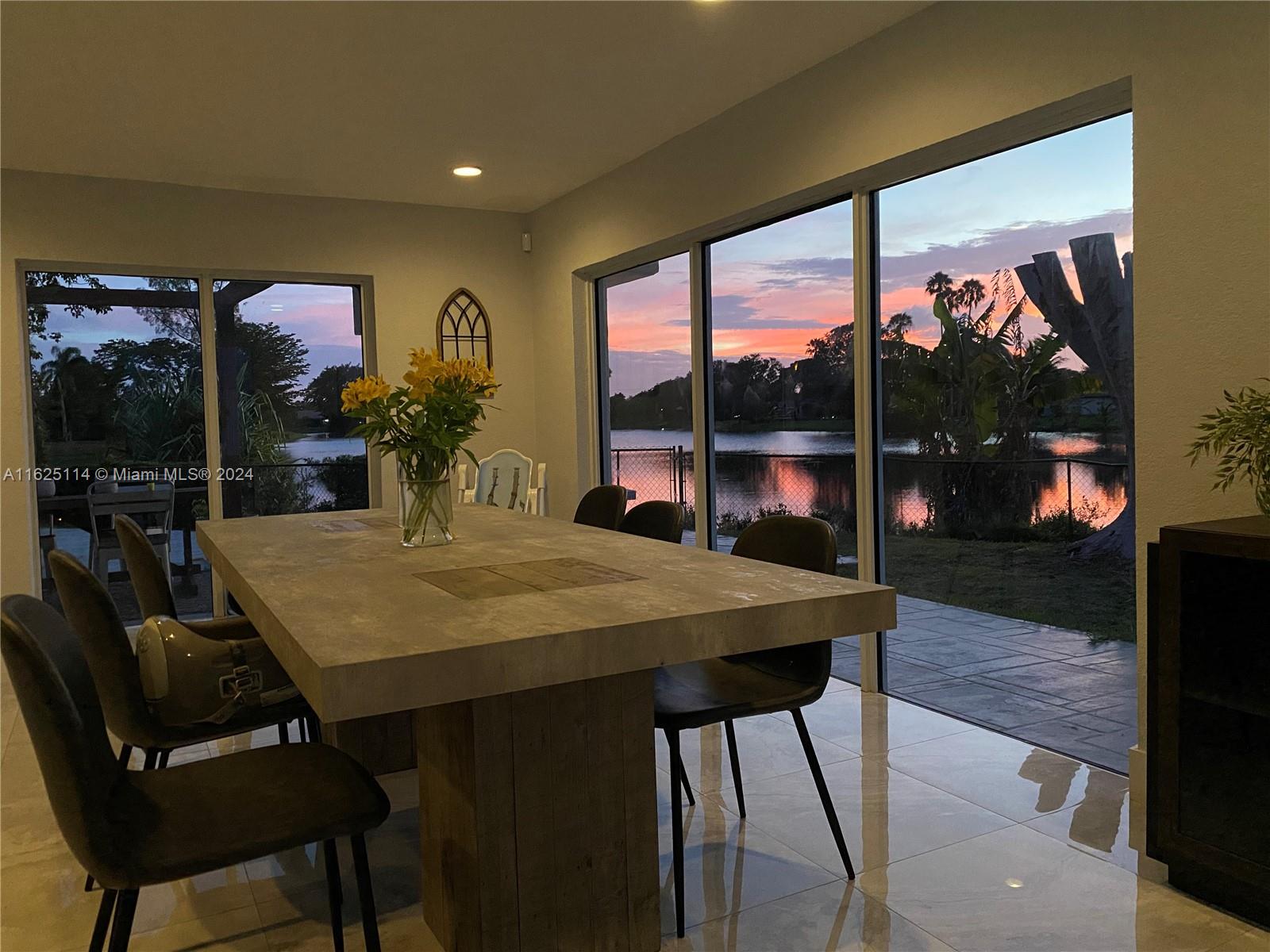 WATERFRONT - POOL - NEW ROOF - IMPACT WINDOWS - ELECTRIC CAR CHARGER - NO HOA Discover your dream waterfront home in a quiet cul-de-sac. This 3-bedroom + office, 3.5 bathroom single-family residence features an open-concept living space with porcelain tiles, high ceilings, skylights, and ample natural light. Situated on a 10k sq ft lot, the property offers a unique outdoor experience with a large pool, fire pit, front porch, and spacious areas for lounging, dining, and gardening. Enjoy breathtaking 180-degree waterfront views from every room. The master bedroom boasts a walk-in closet, ensuite bathroom with a spa room, and backyard access. Outside, a rock garden and sitting area with water views await. The additional bedrooms have full bathrooms each and front porch access.