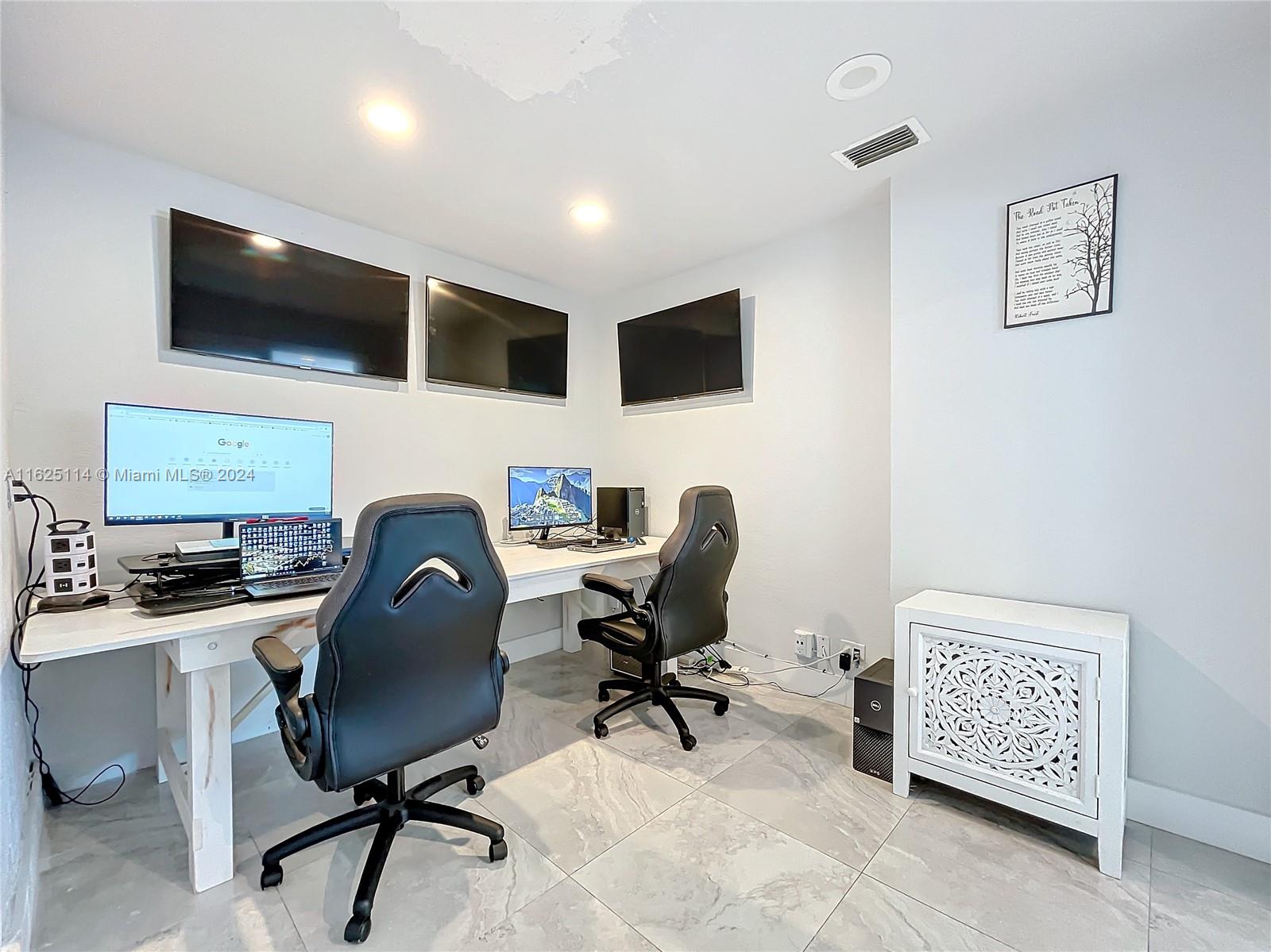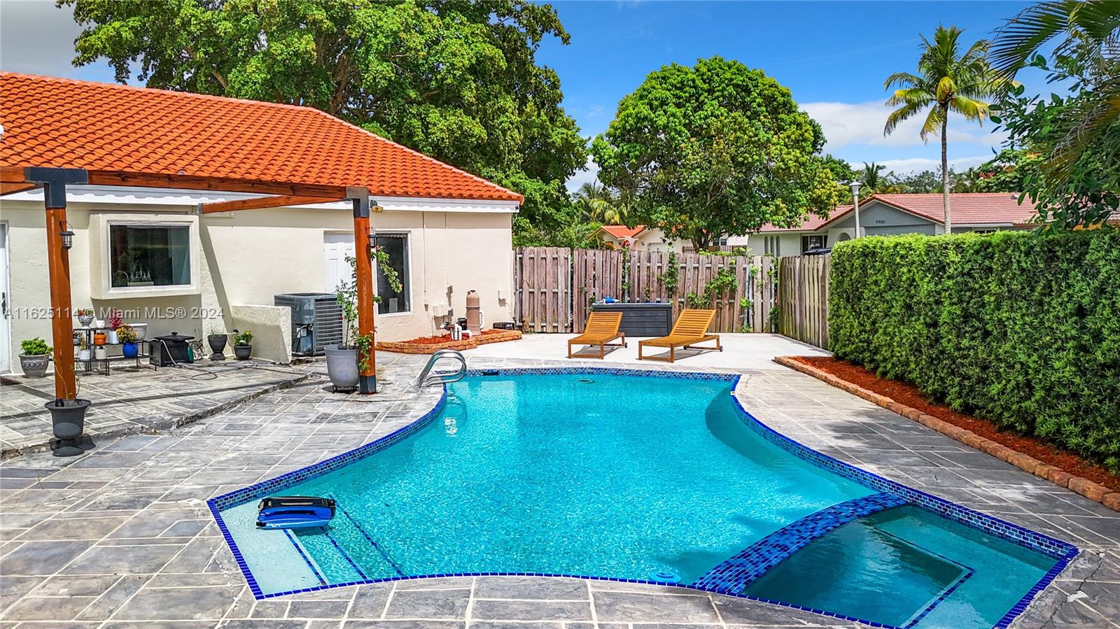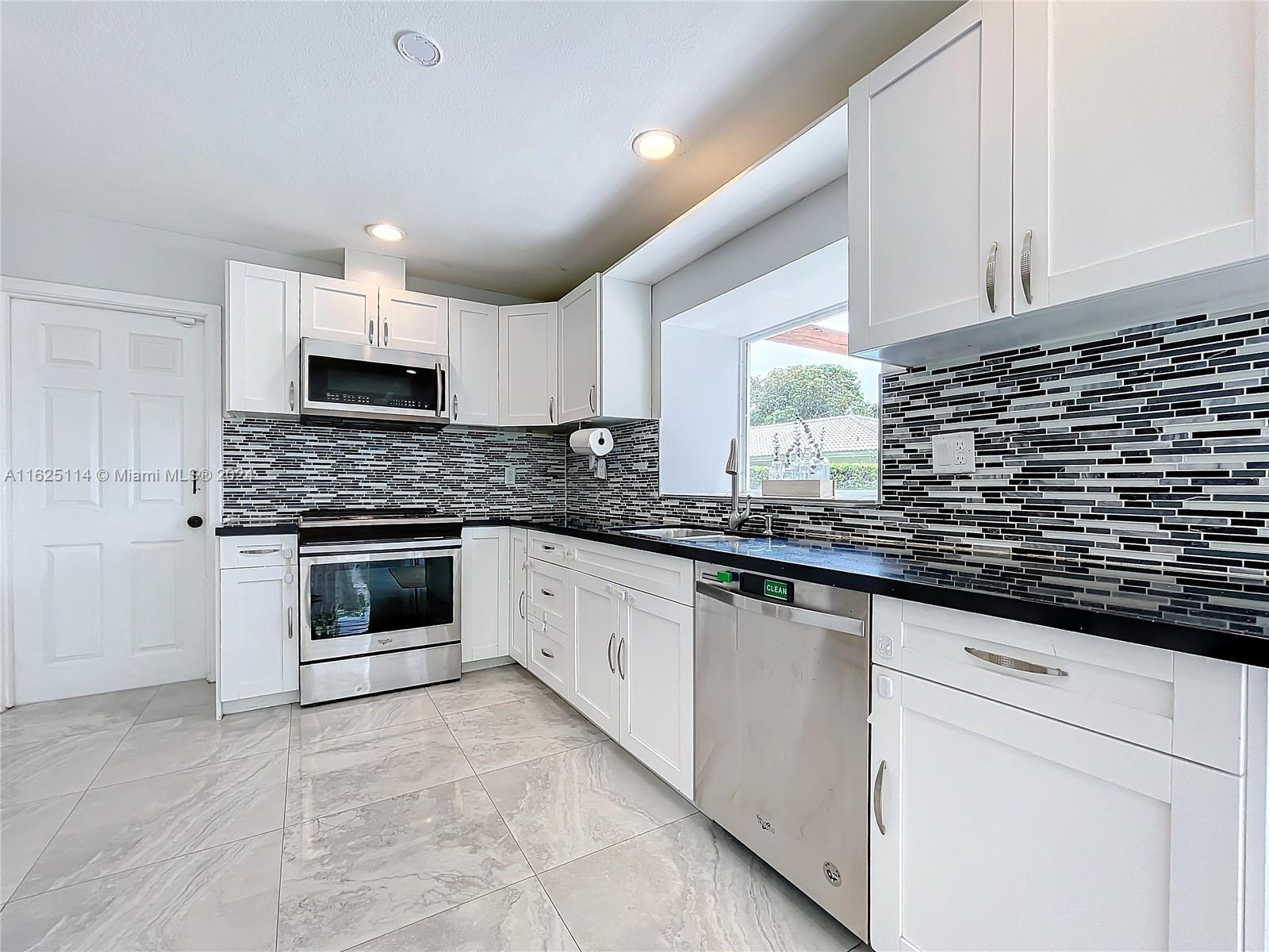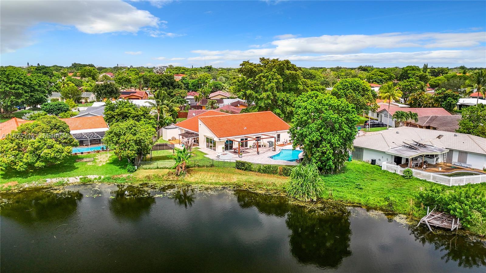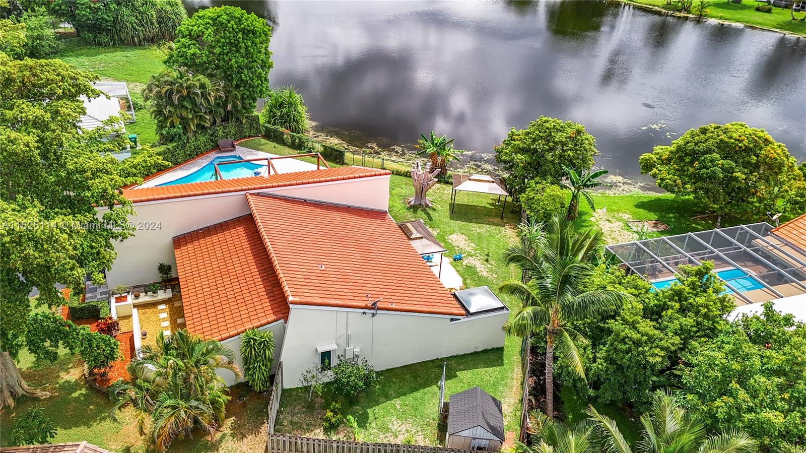 WATERFRONT - POOL - NEW ROOF - IMPACT WINDOWS - ELECTRIC CAR CHARGER - NO HOA Discover your dream waterfront home in a quiet cul-de-sac. This 3-bedroom + office, 3.5 bathroom single-family residence features an open-concept living space with porcelain tiles, high ceilings, skylights, and ample natural light. Situated on a 10k sq ft lot, the property offers a unique outdoor experience with a large pool, fire pit, front porch, and spacious areas for lounging, dining, and gardening. Enjoy breathtaking 180-degree waterfront views from every room. The master bedroom boasts a walk-in closet, ensuite bathroom with a spa room, and backyard access. Outside, a rock garden and sitting area with water views await. The additional bedrooms have full bathrooms each and front porch access.