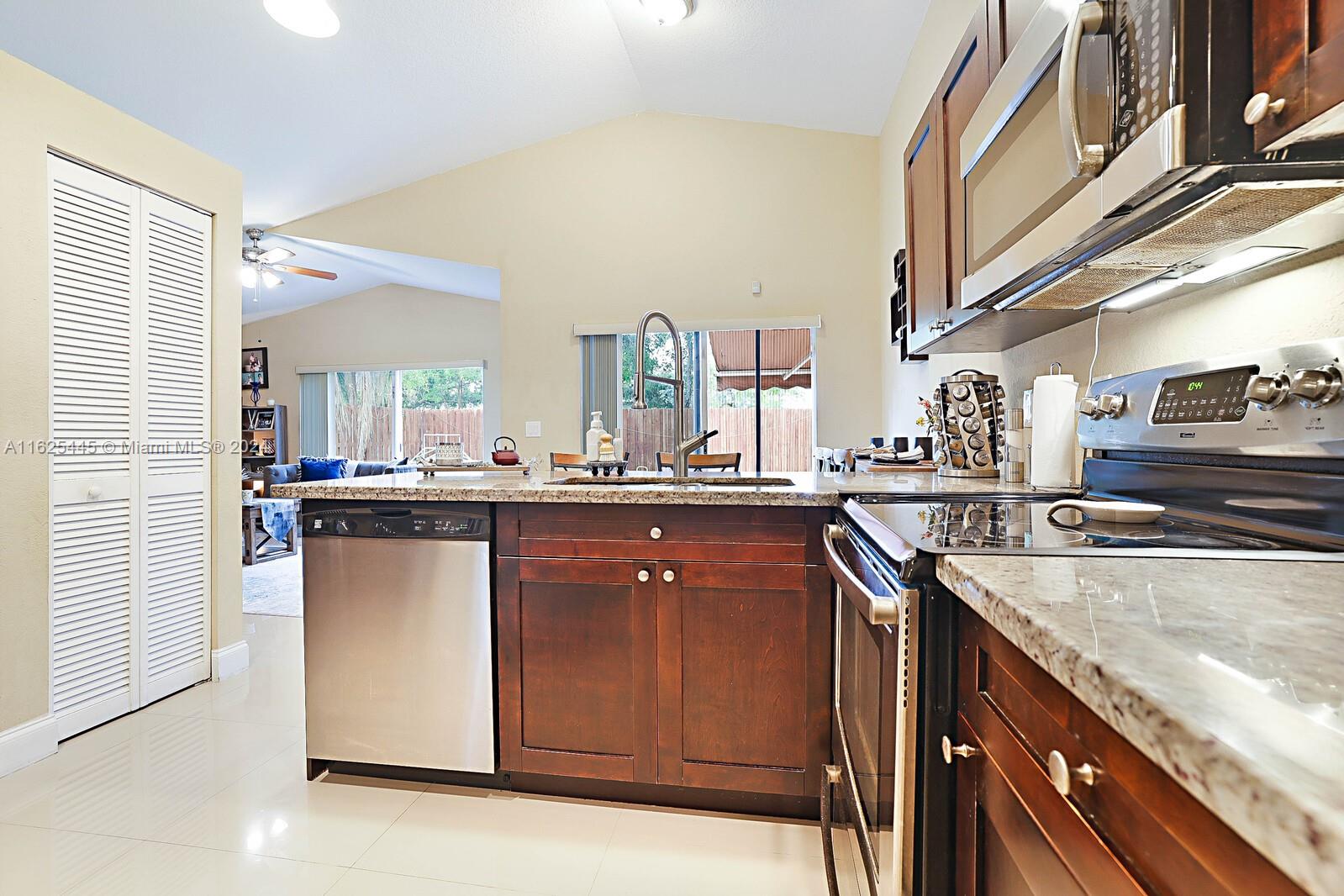 Welcome to this Boastfully Renovated 3 bed-2 Bath-2 car garage. Single Family home. Updated Kitchen with wood Cabinets and Granite counter tops. Big beautiful Porcelain tiles in the all the living areas and kitchen and Laminate Wood Floors in the Bedrooms. Updated Bathrooms. Beautiful huge fenced and completely turfed backyard for your family entertainment and enjoyment with room for a nice size pool. A new roof was installed in 2018 with permits. A new AC was installed in 2021. Driveway pavers was installed 2018. A new gas Water heater was installed in 2020. Also the washer and Gas dryer were installed in 2022. The property also features a gas powered backup generator with its own separate electrical panel in the garage with insulated Garage Door. Centrally located to major highways.