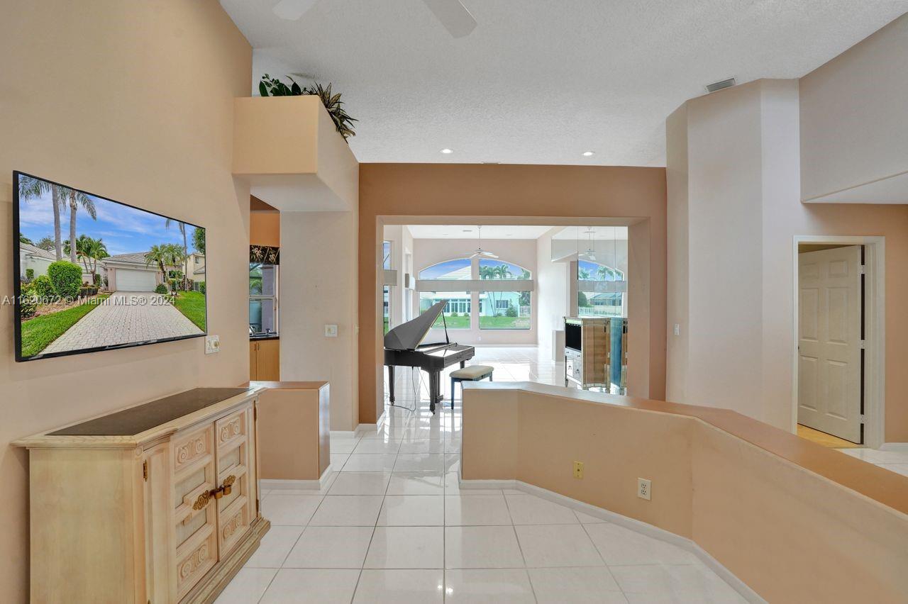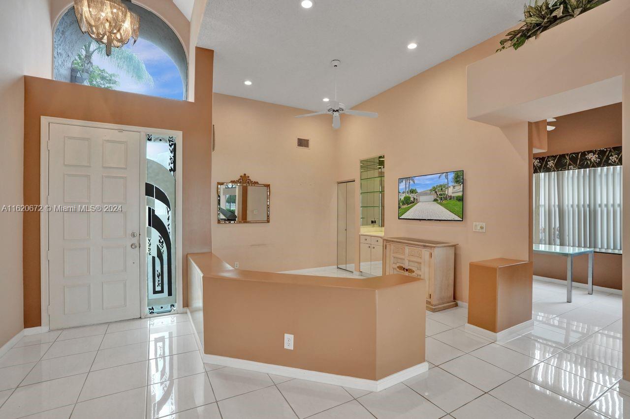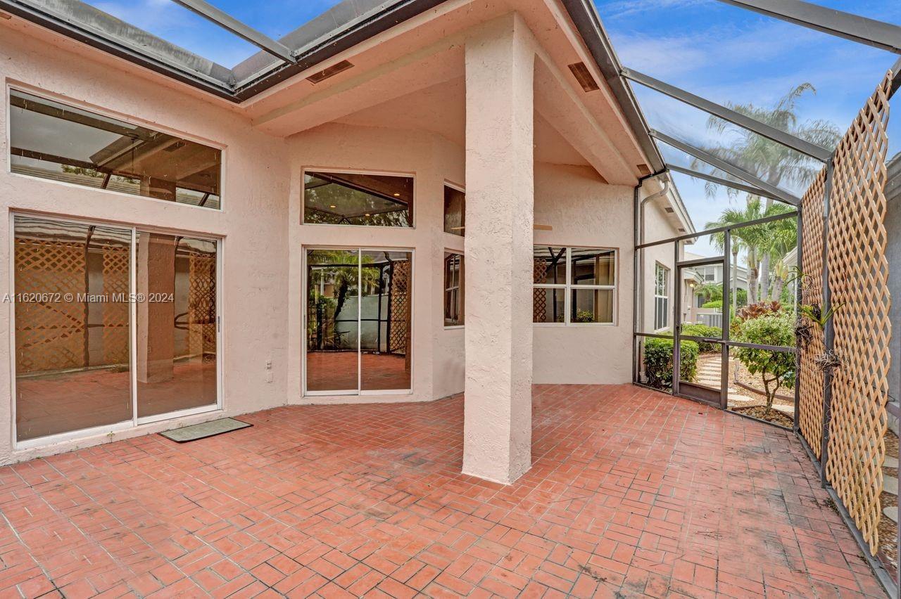 Nestled in Boca Pointe's exclusive gated Palms community, this lovely canal front, single-story 2 bedroom, 2 bath residence offers an open and airy ambiance. Highlights include updated designer Saturnia stone bathrooms, high ceilings throughout, a convenient 2-car garage, spacious master bedroom with a large walk-in closet and double sink bathroom vanity, oversized tub and large walk-in shower; an eat-in kitchen and separate utility room for practicality; ceramic tile in main areas and wood floors in both bedrooms. AC replaced in 2016 and water heater in 2022. Enjoy the serenity of canal-side living from the large screened patio, perfect for morning coffees or evening gatherings. Here is your perfect opportunity to make this a dream haven for relaxed Florida living!