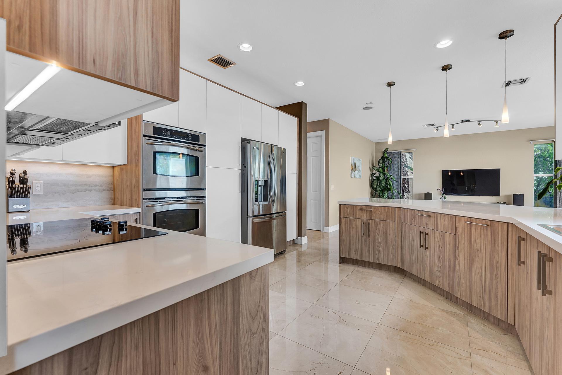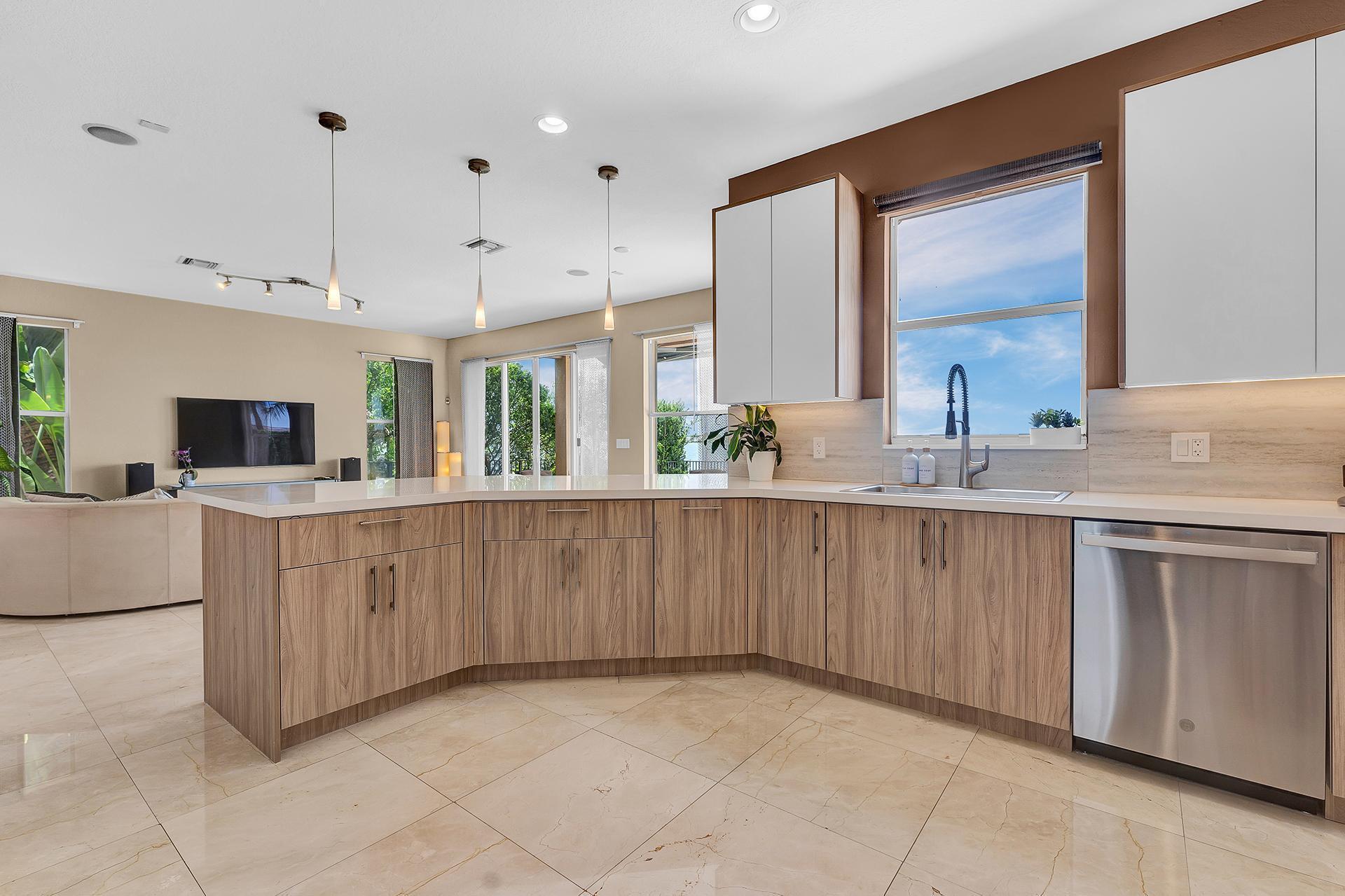 Sunset Falls luxury waterfront living at its finest, presents this stunning Paulina model home! Upon entry, you're greeted with breathtaking panoramic lake views from nearly every room. Enjoy abundance of natural light, elegance and functionality with a newly remodeled designer kitchen with quartz countertops, caramel birchwood cabinets, & stainless steel appliances. The spacious layout includes marble floors throughout, a grand family room, formal dining room, & soaring volume ceilings in the living room. Upstairs, indulge in the expansive master suite with a sitting area. This home offers resort-style amenities including clubhouse, pool, basketball, tennis, all within a secure gated community. Ideally located near Pembroke Gardens, I-75, & top-rated schools.