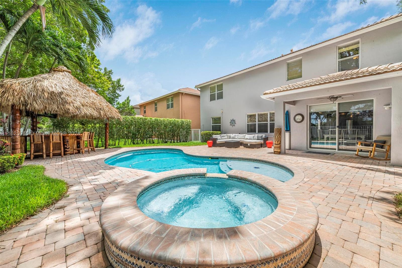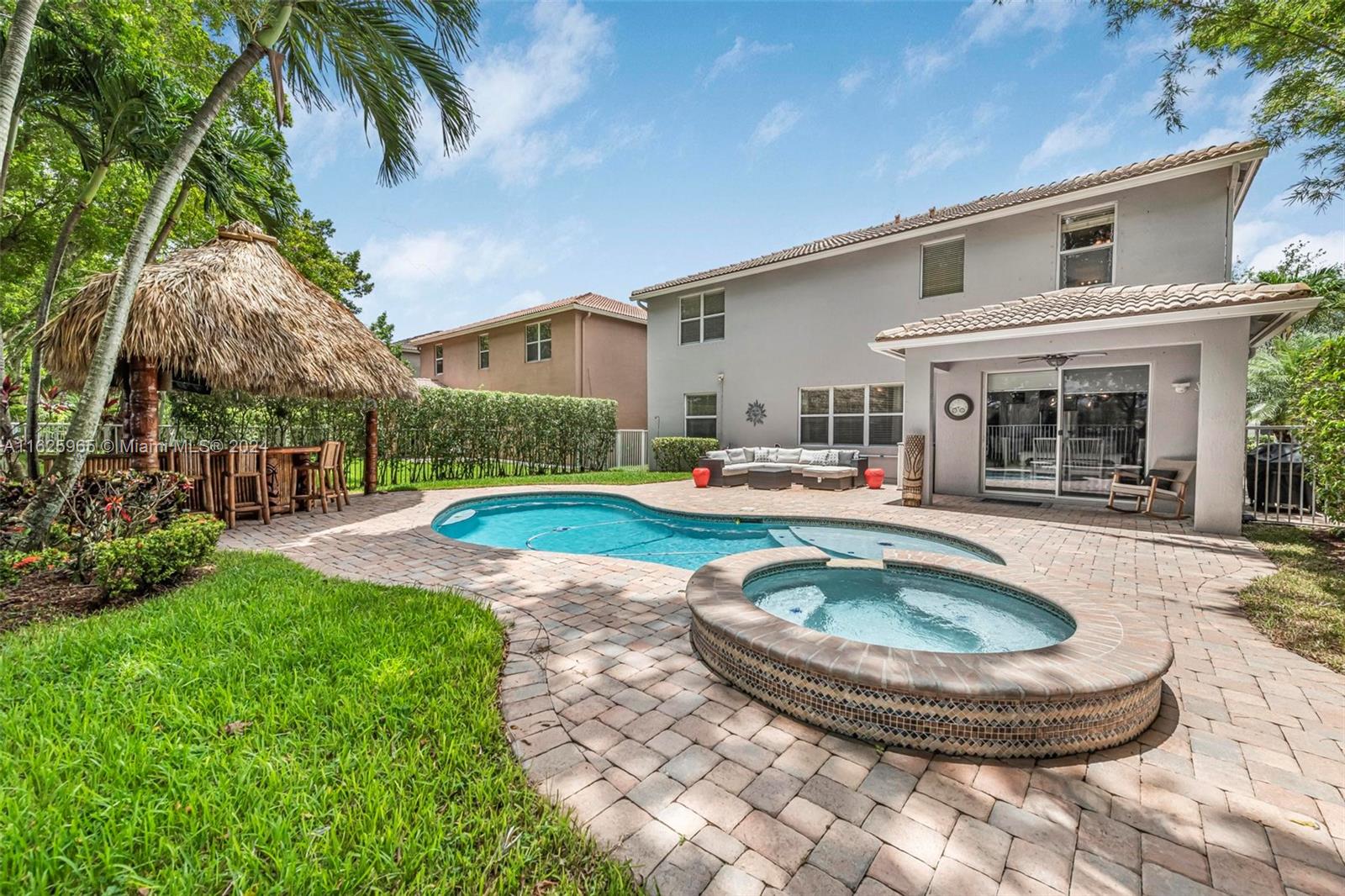 Stunning two story 5/4 pool home with 2 car garage! Located in the highly sought after + gated Isles at Weston community. Upgraded kitchen with granite counter tops and stainless steel appliances! Both exterior and interior of the home were recently painted! Gorgeous new flooring throughout the first floor. New AC + Water Heater! Desirable model and floor plan with one full bedroom and bathroom located on the first floor! Enjoy South Florida weather in your private oasis with a pool and spa. New pool heater recently installed. Entertain guest in style at the custom built tiki bar perfect for hosting gatherings! Excellent location with A+ schools! The residents have access to the state-of-the-art clubhouse with fitness center, pools, playground, and more. THIS HOME IS A MUST SEE!