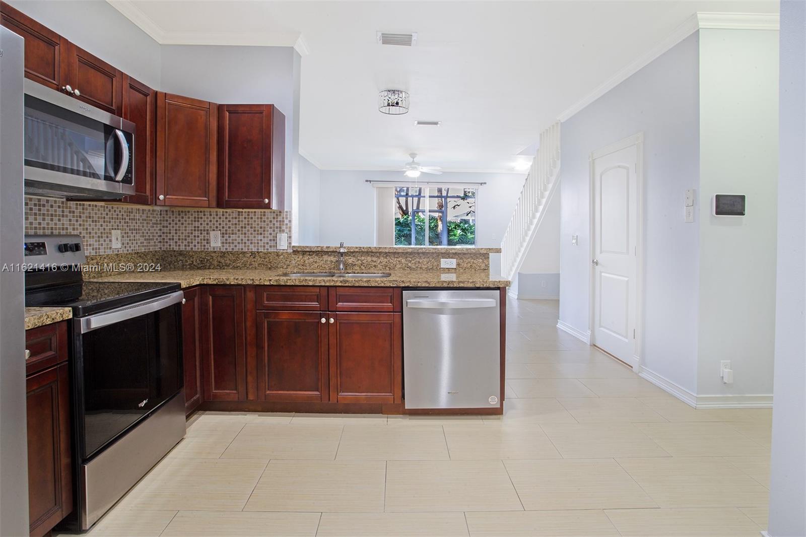 You will be delighted with this immaculate 2bed 2.5bath 1 car garage Townhouse in San Messina in Weston. Freshly painted and light and aery. Accordion shutters throughout. Each bedroom is an en-suite. Brand new SS Appliances, Granite countertops, Upgraded cabinets. All bathrooms have been tastefully upgraded. Tiled throughout. Master bedroom walk-in closet features closet organizer. Sliding glass doors lead to an enclosed patio with relaxing garden views. Enjoy the resort style pool, volleyball courts and kids playground. "A" rated schools. Supermarket, restaurants, and Mall just minutes away. Easy access to Highway and Sawgrass Expressway. Tenants Lease expires 28 Feb 25