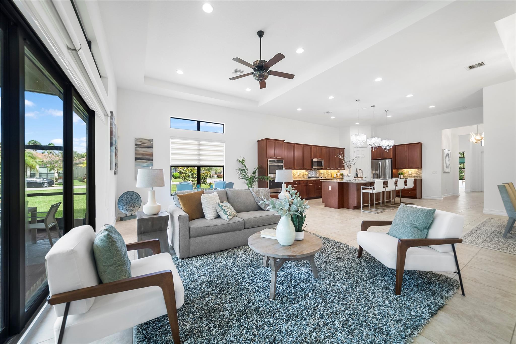 Best Priced Home In All Of Four Seasons Community! Turnkey 3 Beds (3rd Bed Being Presented As Office), 2 Baths Home On Oversized Corner Lot w/2-Car Garage, Impact Windows & Doors, On Gas, Spacious & Bright & Open Floor Plan, Screened-In Patio, High Ceilings, Chef's Kitchen w/Granite Counters & Island, Gas Stove, Spacious Primary Suite w/Sitting Area, 2-Walk-In Closets, Spa-Like Primary Bath Large Standing Dual Headed and Rainfall Shower, Dual Sinks, Popular Opal Floor Plan Ideal For Entertaining Guests, 2nd Bedroom Ideal For Guests, Resort-Style Amenities Including Heated Pool, Spa, Fitness Center, Pickleball & Tennis Courts, Huge Family Room Overlooks Patio, Formal Dining Area, 24-Hour Guard Gated Community, Close To Parks & Recreation.