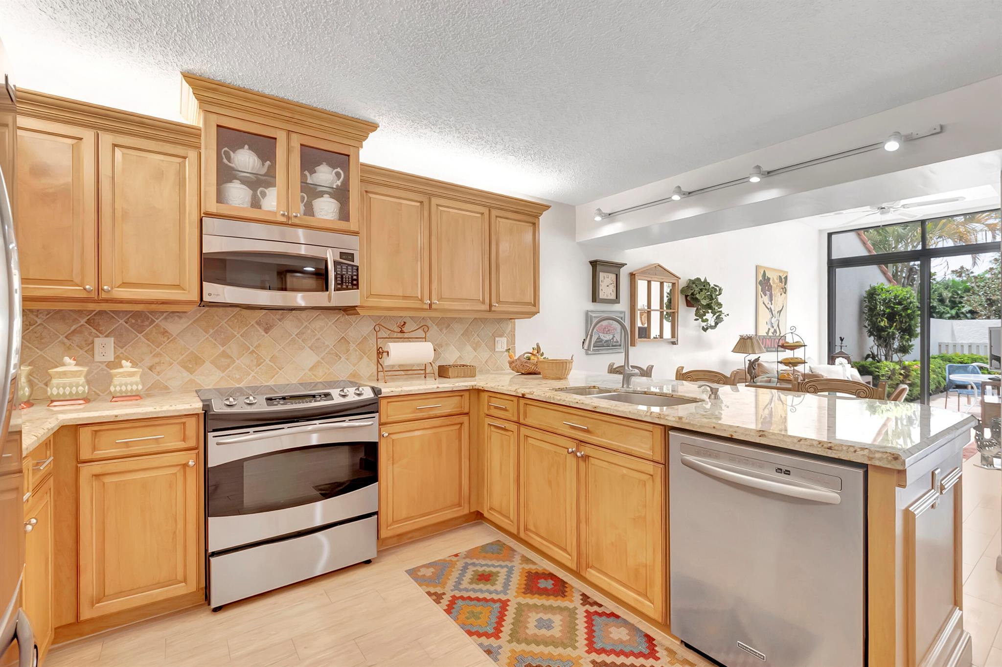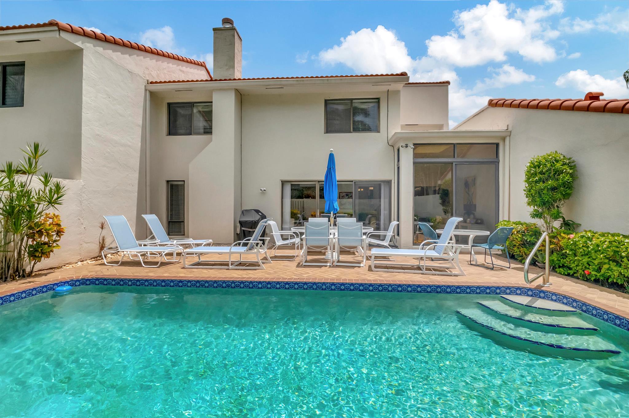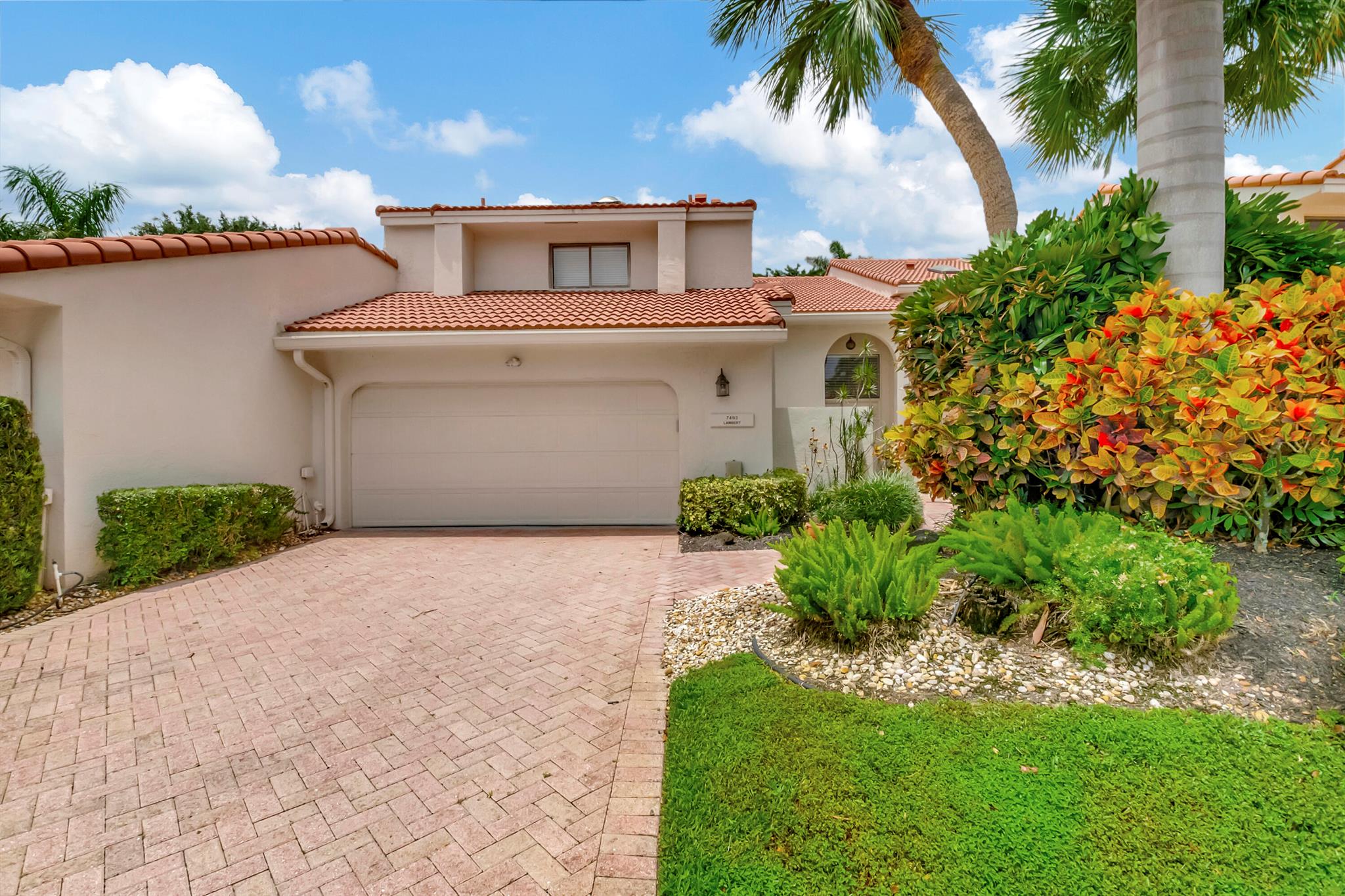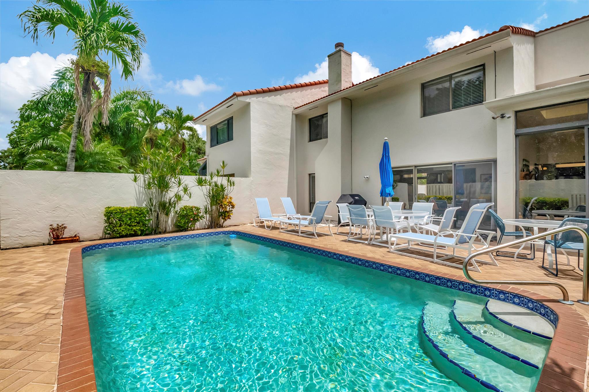 Woodcrest 2 story Cypress model Town Home with a spacious open privacy back yard and heated pool. Master and guest bedrooms are on the second level. Tiled living areas. Extended room off the kitchen & breakfast room area. Updated kitchen with granite counters and wood cabinets. Wet bar with wood cabinet. Ideal entertainment area. Full 2 car garage. Roof maintained by the association. Offered unfurnished with basic furnishings negotiable. Boca West Country Club membership is $150,000. Dues start at $22,593.05