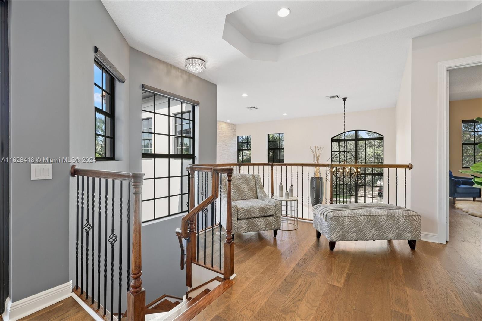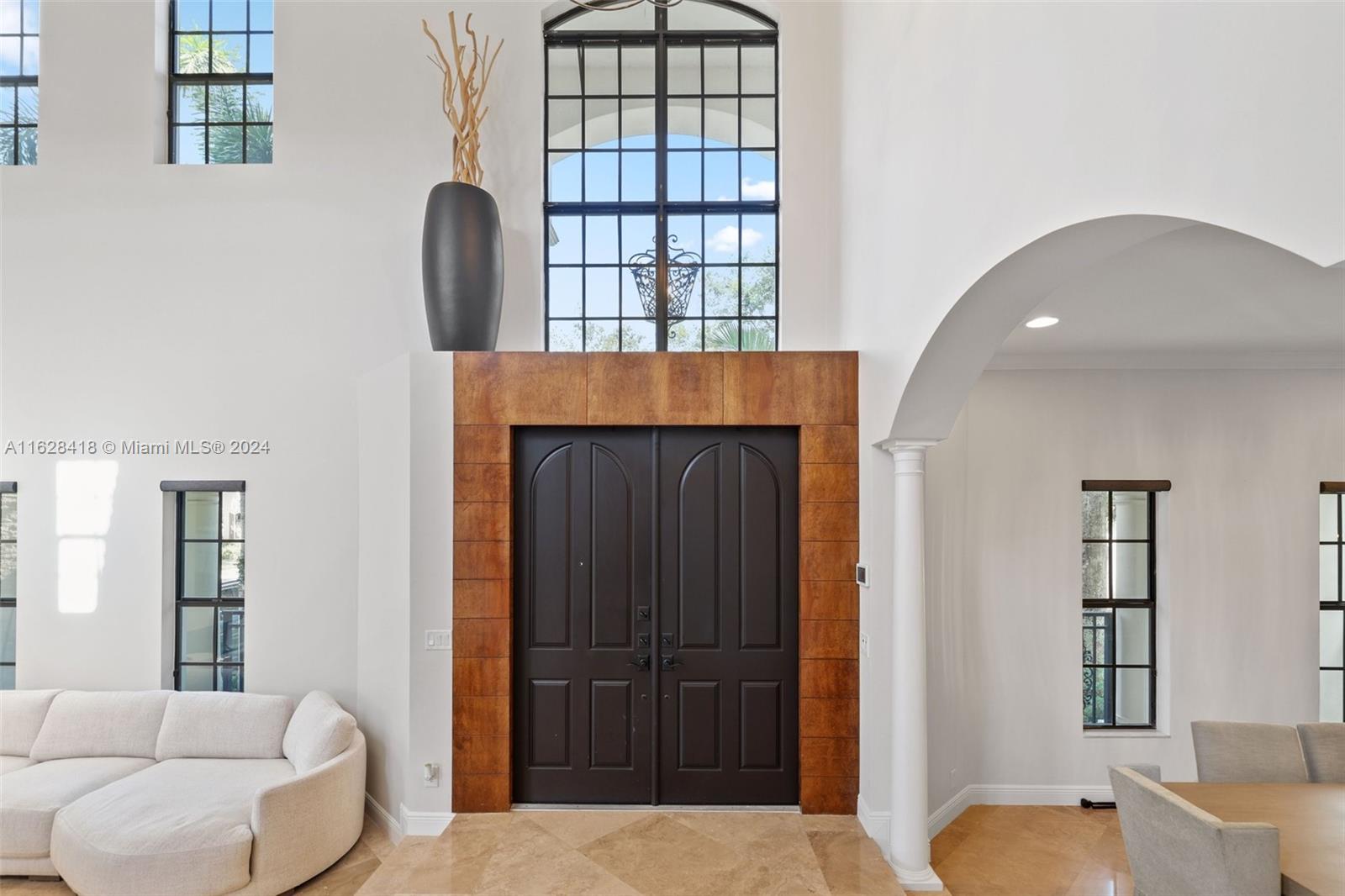 Gorgeous curb appeal at the front, not a single neighbor to the back, and completely turnkey! Welcome to your new home in the intimate enclave of Parkland Estates. Featuring 5 Bedrooms, 4.5 Bathrooms, over 4,200 sq ft of living space, this property is truly a head-turner. Meticulous landscaping with a modern marble driveway are punctuated by well-placed accent lighting and a custom gate into the courtyard. From the front door, you are struck with double height ceilings, a soaring fireplace, and countless impact windows that offer safety while bringing in tons of natural light, that can be easily dimmed at your convenience with remote blinds. The open kitchen and living space looks out onto the sunny backyard and pool/spa. Walk or bike to Parkland's A-Rated schools and best parks.