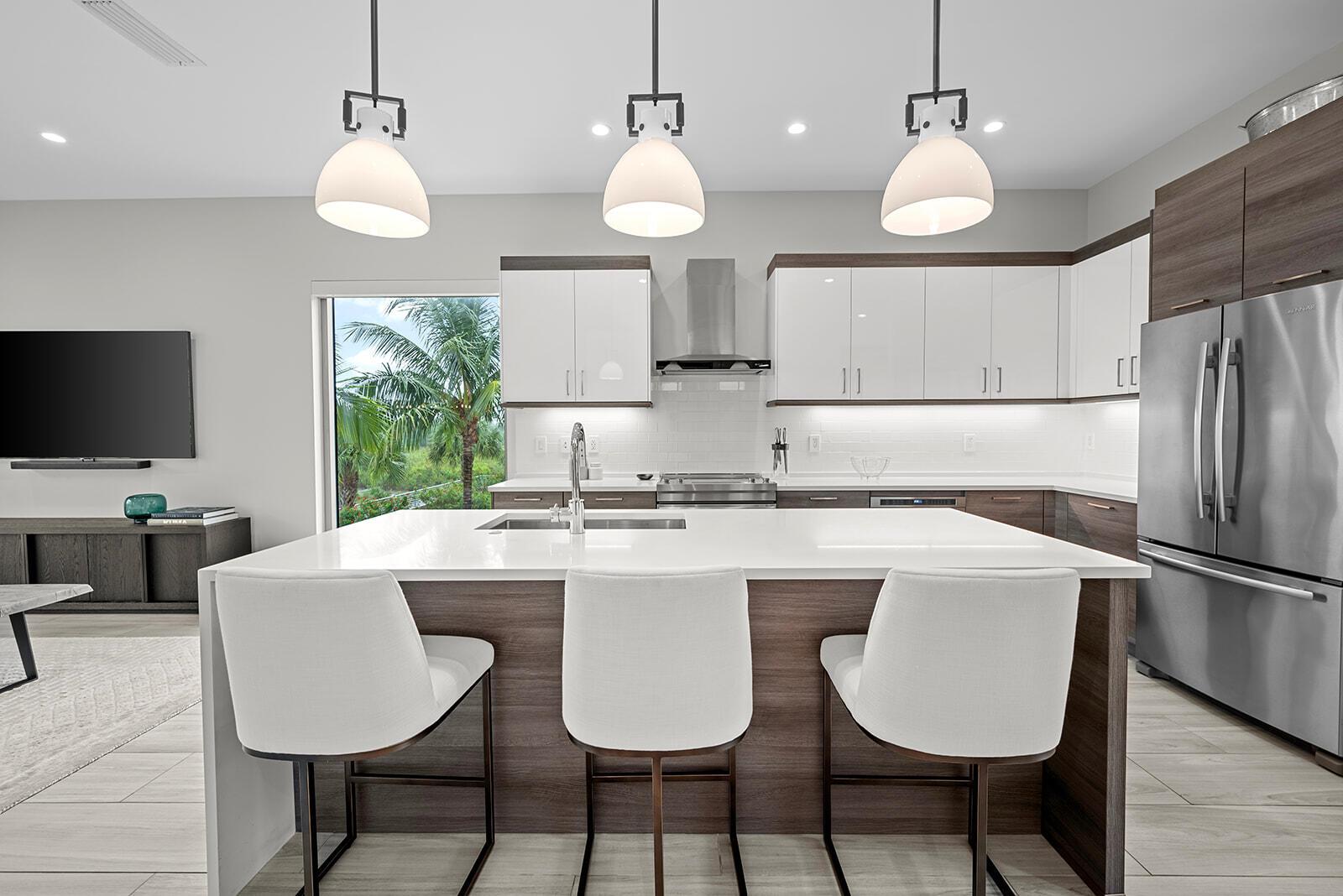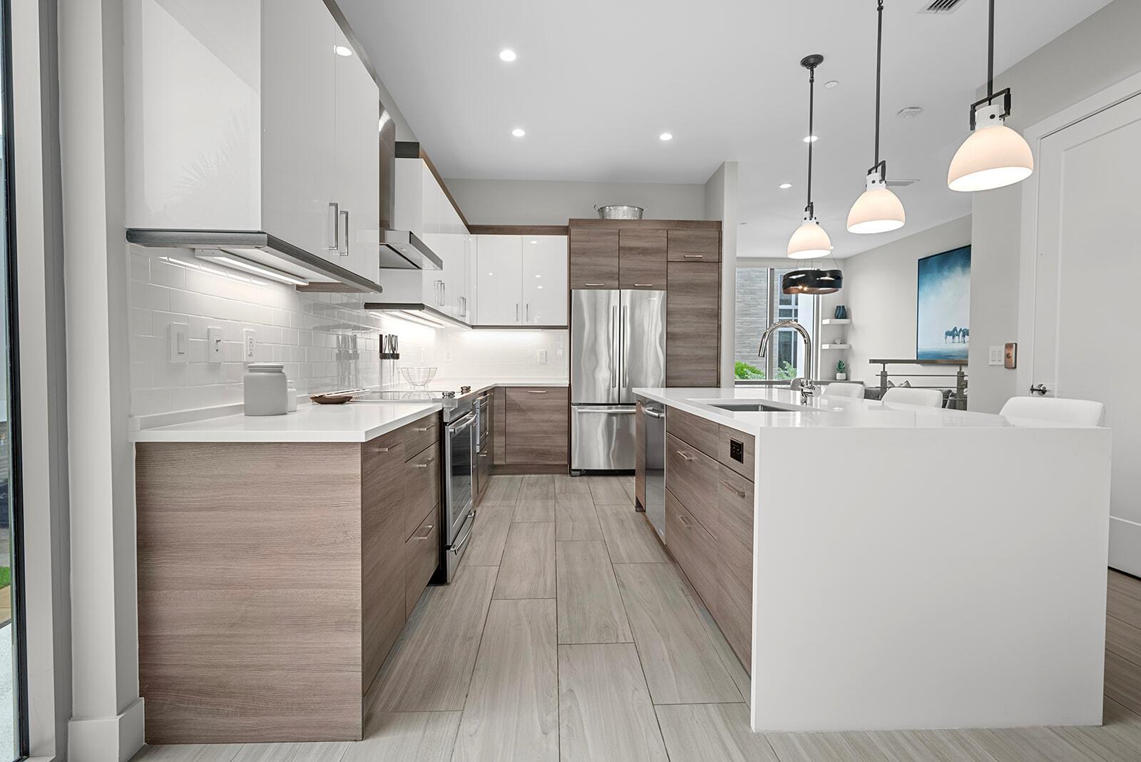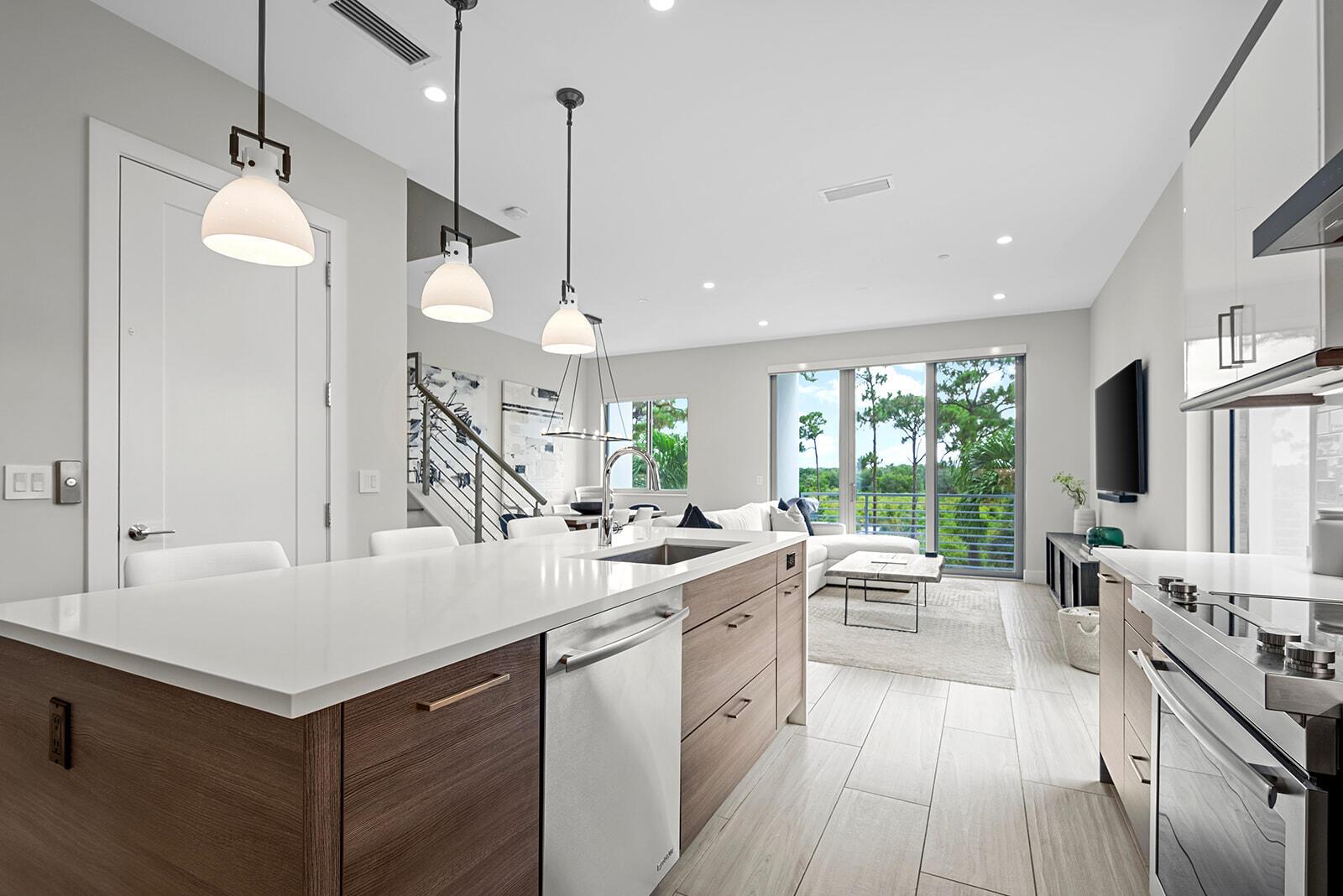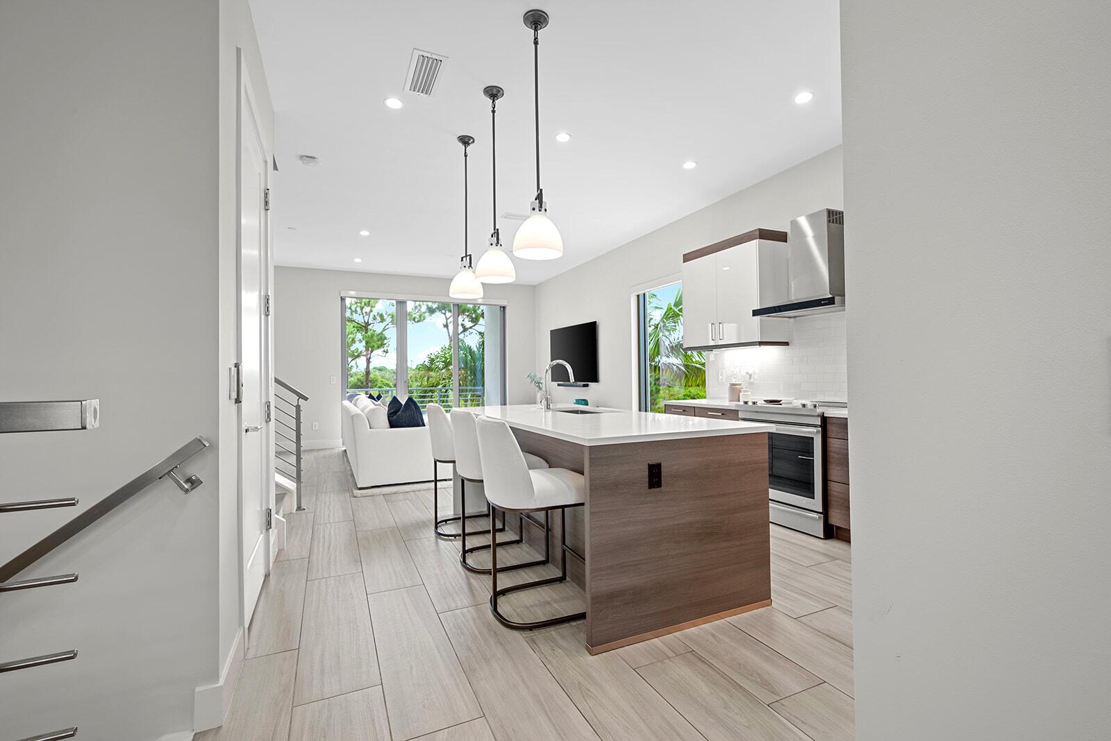 Welcome to your new home in Moderne Boca where you will experience contemporary living at its finest. Situated in a gated community, this 3 level townhome offers just under 2500 square feet, 3-bedrooms, 3.5-bathrooms, a private elevator, turfed backyard and a two car garage. The residence is equipped with smart home features offering modern technology for comfort and security. This corner unit boasts a unique position, offering tranquil views of the nature preserve and abundant natural light throughout. The open-concept layout seamlessly connects the living, dining, and kitchen areas, creating an ideal space for both relaxation and entertainment. The serene primary suite has his and her walk in closets, built in morning bar with fridge and a spa like bathroom.
