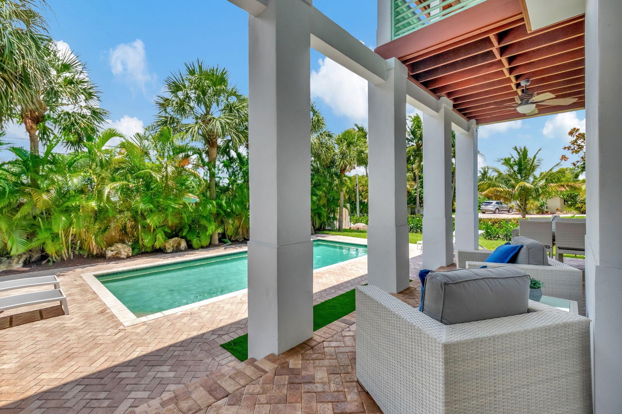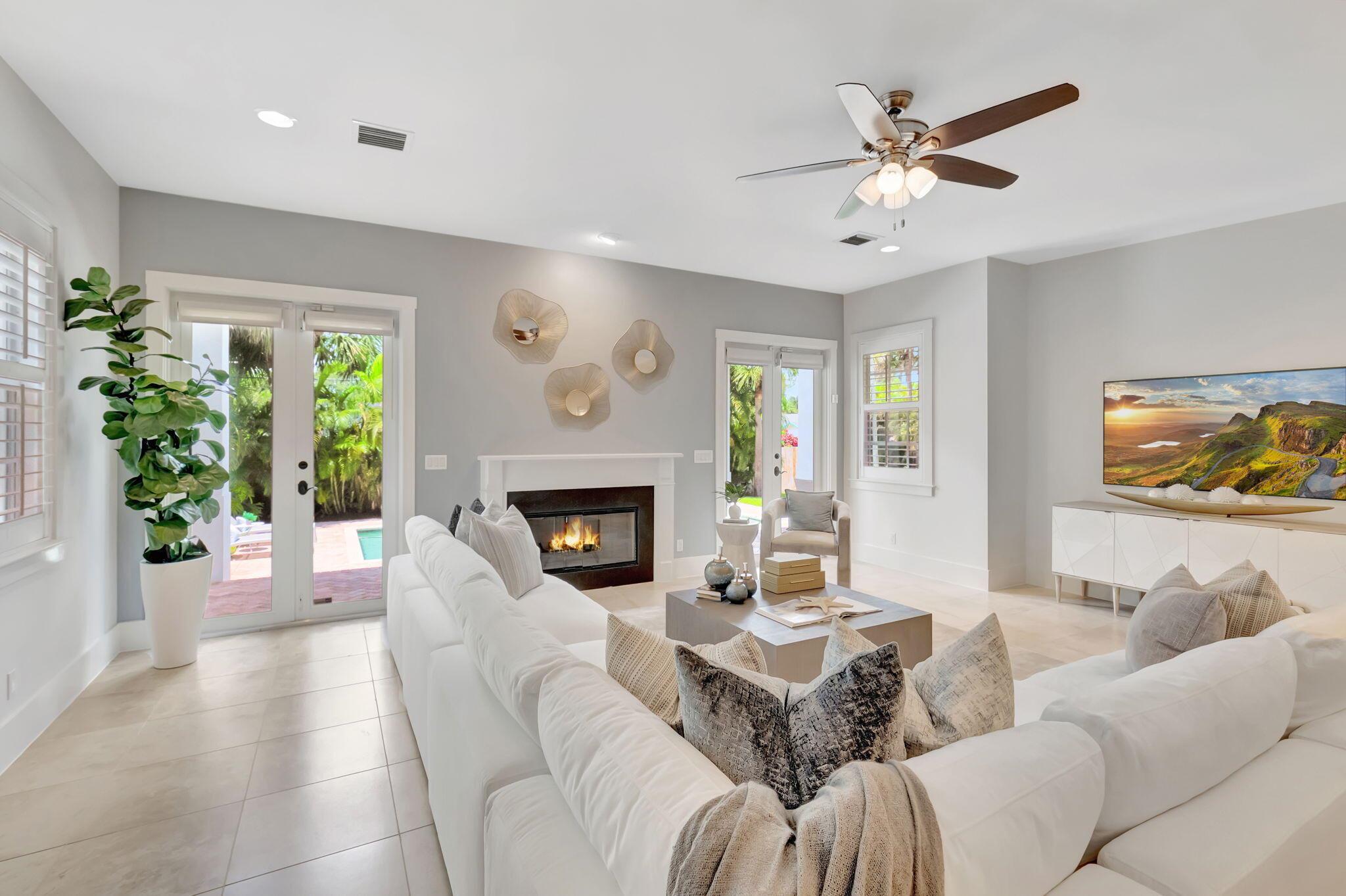 You'll love this coastal East Boca home, mere blocks to downtown, Brightline, Mizner Park, 2 parks, 2 miles to the beach. Blending classic elements of brick & cypress accents w/ the quality of newer CBS construction (2006)-hard to find in E Boca at this price. Every room has high ceilings, 8' custom doors, grand proportions. Main floor is designed with a dining room, office/great room & kitchen that opens to a large family room-perfect to enjoy the fireplace & view of the pool. Upstairs features hardwood flooring, primary bedroom w/huge finished walk in closet, bathroom w/his/hers vanities, large shower, whirlpool tub. It also offers a private balcony to enjoy stunning sunsets. Cross the loft to 3 more bedrooms, 2 bathrooms & laundry room. Metal roof, full hurricane protection. No HOA