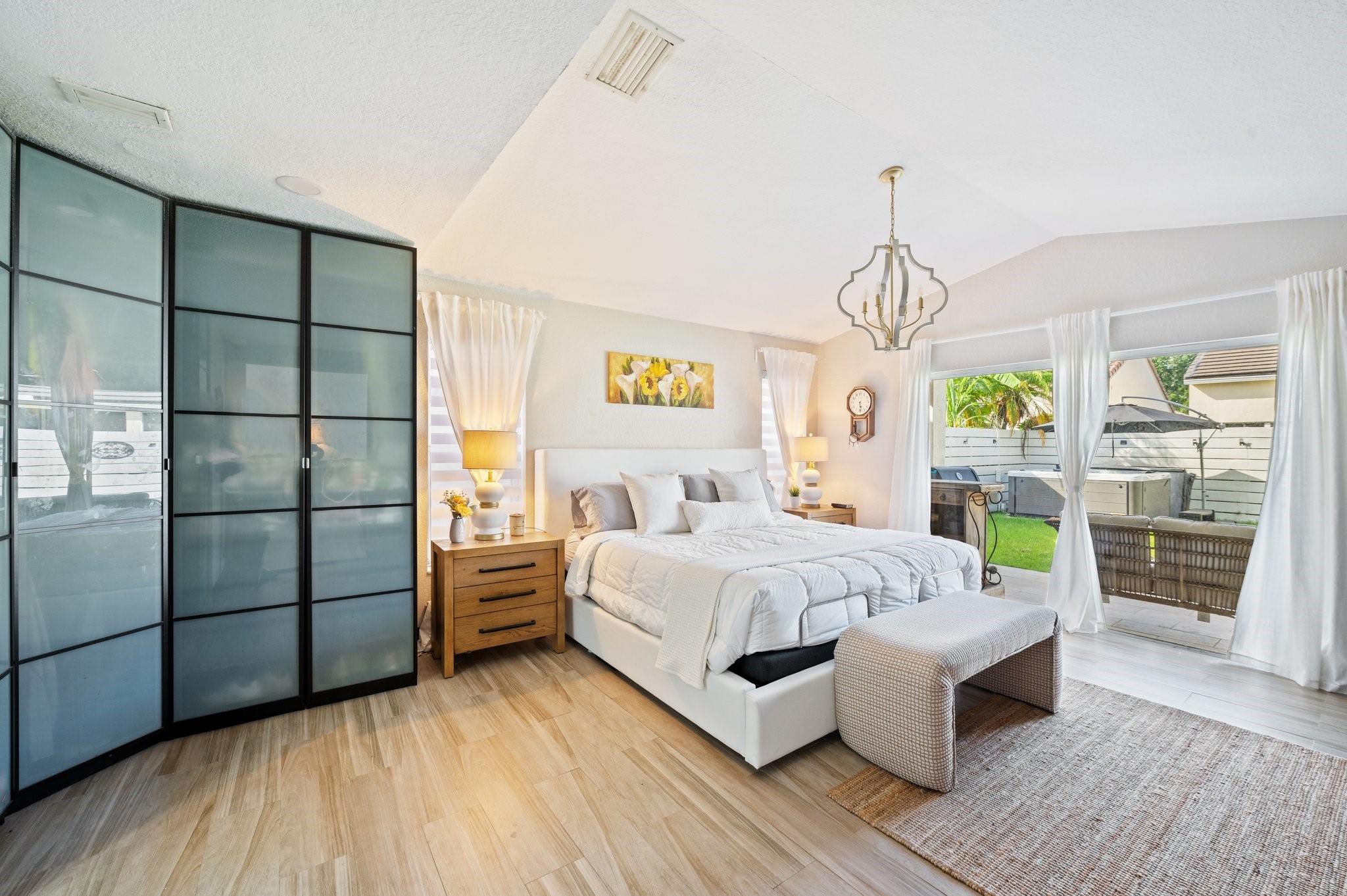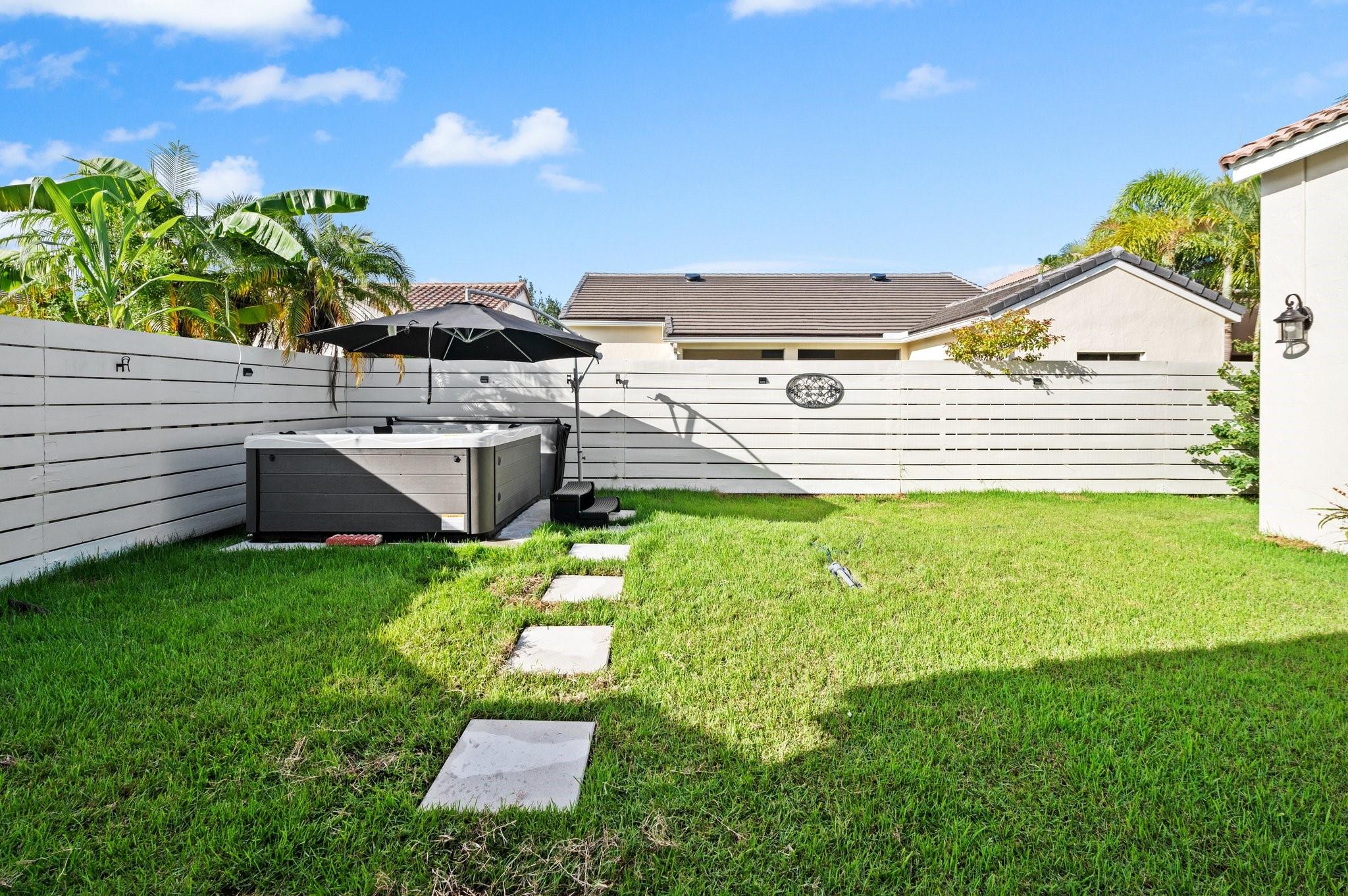 Gorgeous and highly upgraded. This one story split floor plan home boasts gorgeous new beautiful impact glass front doors, an updated open concept kitchen w/ wood cabinet, granite countertop, stainless steel appliances & counter bar that opens to the family rm. Marble floors in living areas, porcelain tile & wood laminate in bdrms. Formal dining rm & spacious light & bright liv. areas w/glass doors to private backyard w/privacy fence, covered patio w/ jacuzzi spa. Beautiful remodeled baths, primary suite w/ soaking tub, large spa style shower & dual vanities. Wardrobe style closets, high ceilings w/ lots of light, front loading washer & dryer & laundry sink. Laundry rm currently a private office. Covered patio w/ tile floor. Freshly painted exterior. Community amenities & A-schools!