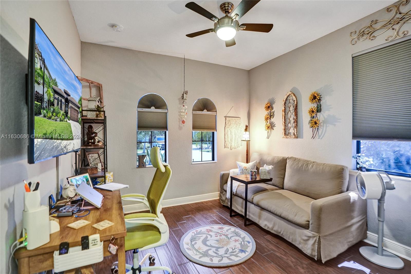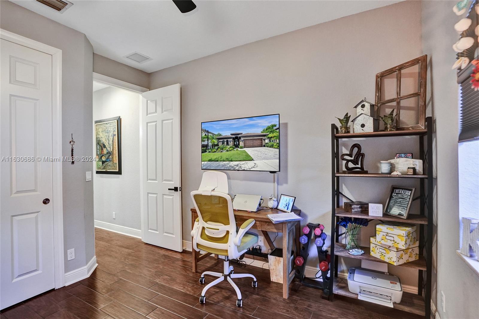 Welcome to your dream home in premier Parkland Golf CC! Stunning 3 bed 2 1/2-bath + office easily converted to 4th bedroom. Property has been thoughtfully designed & meticulously maintained. As you enter, you'll be greeted by new glass front doors, textured walls, A/C 1 yr old. Kitchen features soft-close hinges on all cabinets & vanity doors,. The spacious master suite has new flooring and a luxurious freestanding tub. Custom built-ins enhance the primary closets, great room, and office.Updated lighting throughout for a touch of elegance. Step outside to the extended screened patio with New landscaping and lighting ensures home has outstanding curb appeal, 2-yr-old washer & dryer, refrigerator and dishwasher less than 1 yr, fresh paint throughout, Epoxy garage floor.