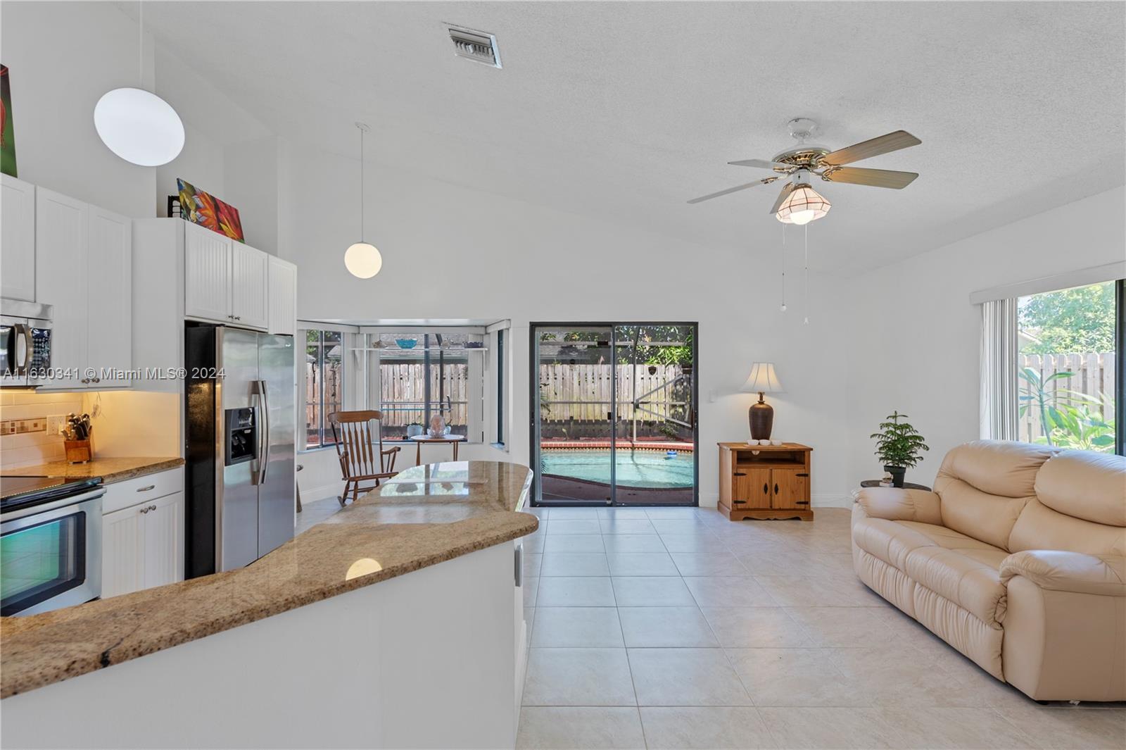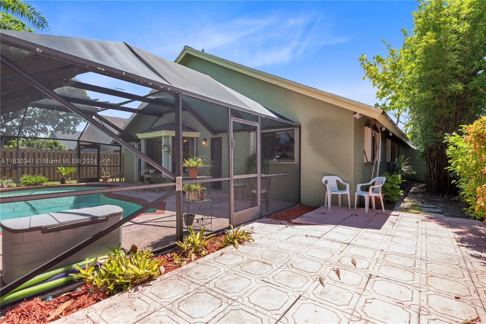 Nestled on a cul-de-sac street with no HOA, this charming pool home has been well maintained by its original owner & features 3 bedrooms, 2 bathrooms, 1-car garage, pool with upgraded lighting features, extended driveway with pavers, updated kitchen with 42" wood cabinets, under cabinet lighting, stainless steel appliances, granite countertop with tile backsplash, tile flooring throughout main living areas, bamboo flooring in all bedrooms, & an updated primary cabana bathroom. Additional features include full hurricane protection with accordion shutters & impact-rated garage door & cabana bathroom door, alarm system, a private almost fully 6ft fenced back yard, screened pool & patio area, outside deck area, & exterior lighting. Close to Sunrise Civic Center & Sawgrass Expressway.