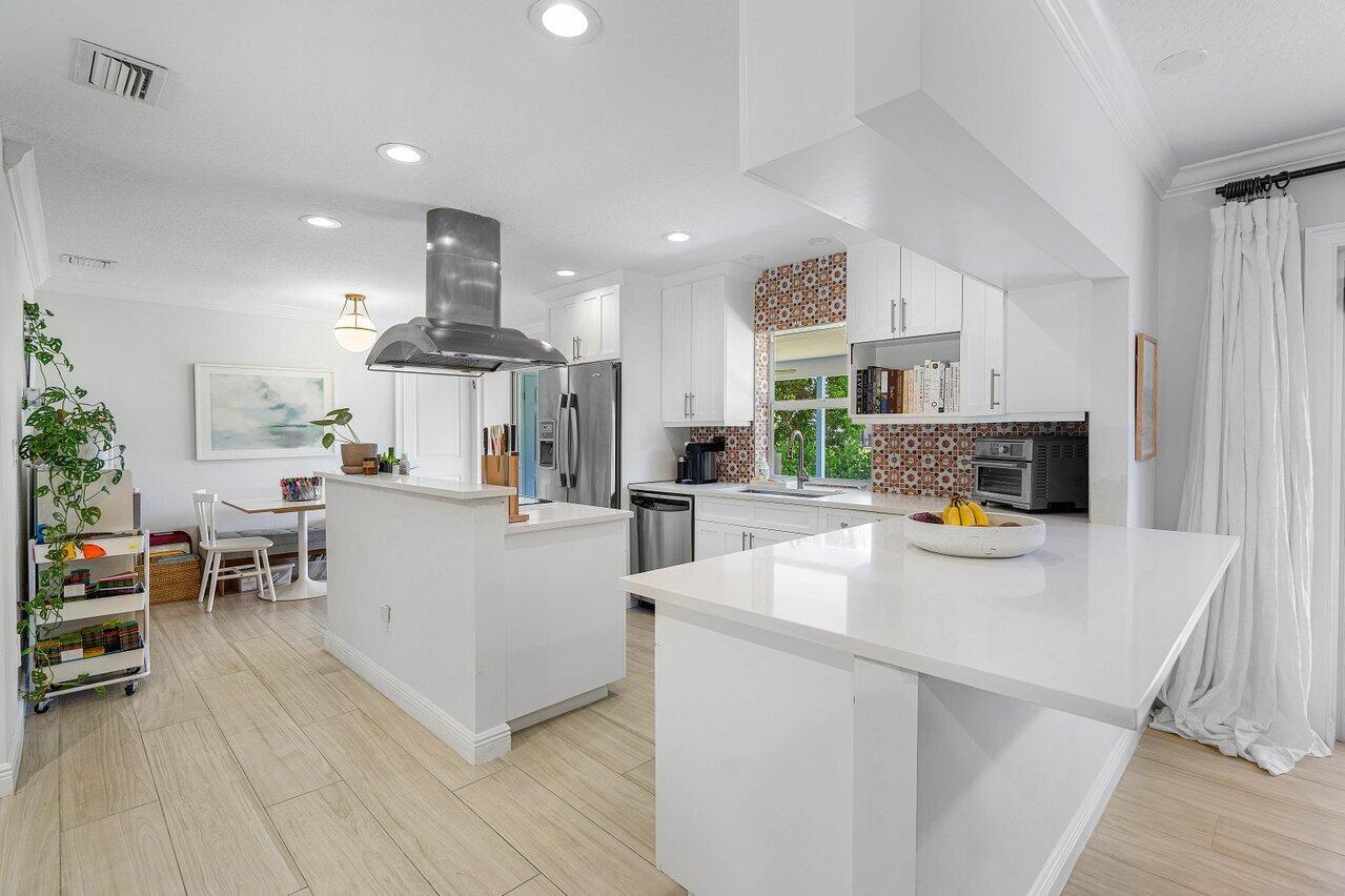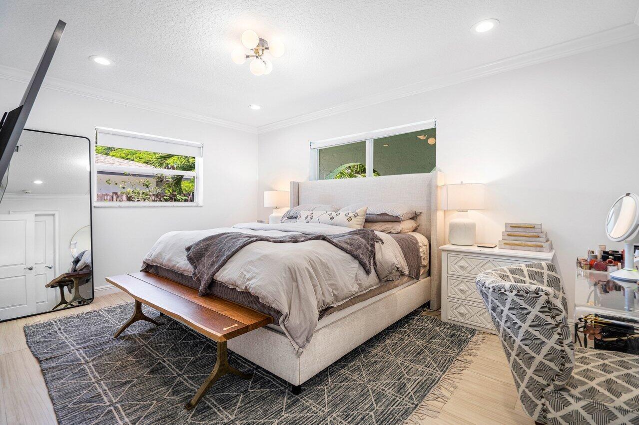 Nestled in the heart of Central Boca, this beautifully renovated home is situated in the most sought-after location renowned for its A-rated schools. This home has been meticulously renovated with high-quality finishes, new flooring, renovated bathrooms and new built-in pantries. The thoughtfully designed open-concept floor plan boasts ample natural light, featuring a generous living area, elegant dining space, and a charming newly renovated kitchen. Step outside to your private backyard retreat, ideal for family gatherings or quiet evenings overlooking the water. The yard offers a tranquil space with room for a pool. Air conditioned garage is currently being used as an office and gym!Boca's best location- close to parks, shopping, universities. NO HOA! Lease right away!