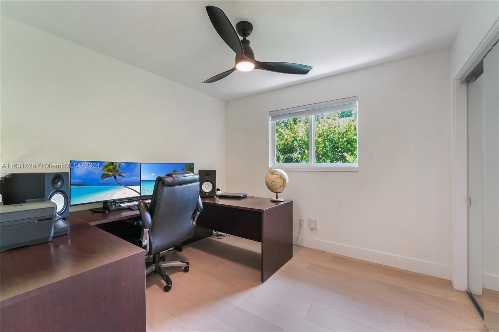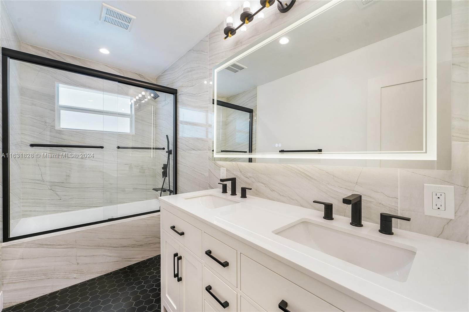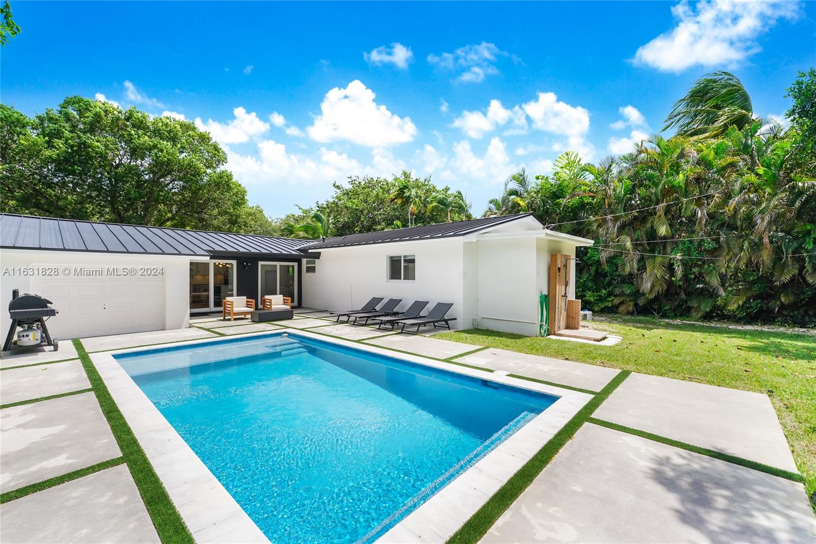 Welcome to the fully remodeled home where everything is completely updated. Brand new Brazilian hardwood floors. Custom-designed kitchen with stone countertops. All new Thor kitchen appliances. The bathrooms have been fully remodeled, featuring double sinks in every bathroom. And don't worry about storms, as the hurricane-proof windows will keep you safe and sound. The brand-new metal roof is built to last for 50 years or more. The front and back yards have been beautifully landscaped, complete with a brand-new pool and patio. The spacious driveway offers ample parking space for multiple cars, and a brand-new fence ensures privacy and security. Both the interior and exterior of the house have been freshly painted. Big master bedroom custom-designed closet! Option to sell furniture too.