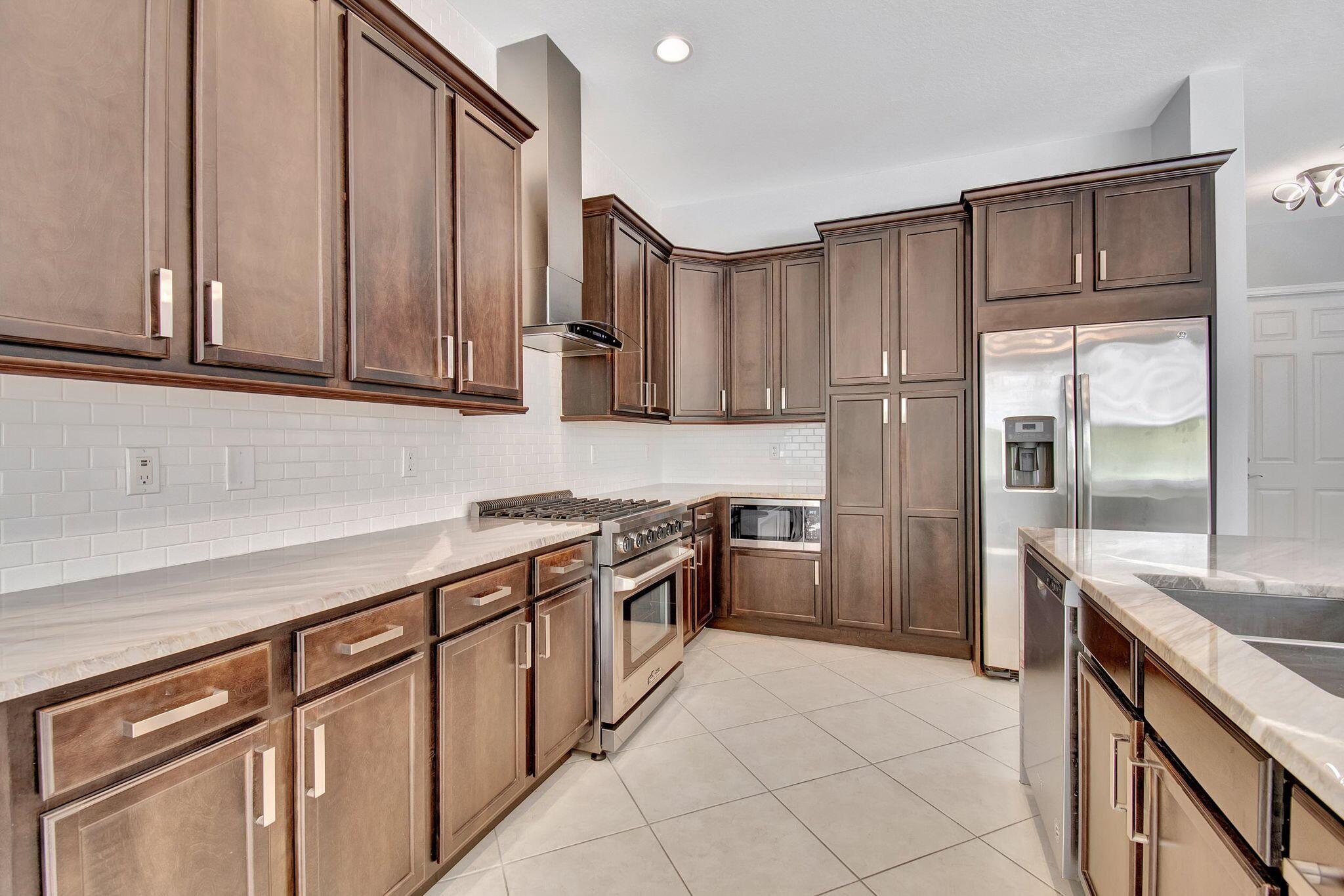 Beautiful 3 bdrm/3 bath home with a loft and pool, located on a private, fenced lot in the desirable gated community of PortoSol. The main level features an open concept living area with high ceilings, an upgraded kitchen with custom cabinets (including pullout shelves, mixer storage and stand), quartzite counters, a large island with a waterfall edge, undermount cabinet and island lighting, a gas range, and SS appliances. The first-floor guest bdrm has ceramic tile floors and a custom bathroom finished in all marble. The unique stairs feature a marble inlay. The second floor has LVP flooring, a sep laundry room, and a master bathroom with his/her vanities and a spacious walk-in closet. Privacy galore in the backyard w/large sparkling pool. 2 car garage is wired for generator, too!