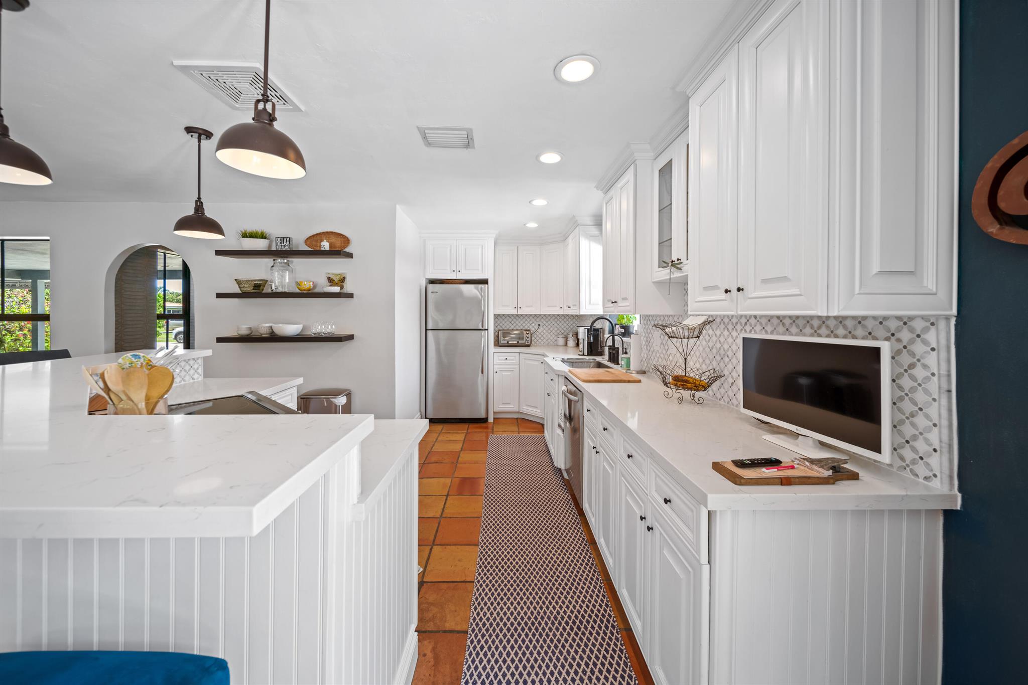 Totally remodeled, 4 bedroom in east Boca loaded with charm from the front porch to the back yard. This home is truly adorable, cozy casual living filled with light. White Kitchen, quartzite counters, 100% impact windows and new roof (Dec 2022). Must see and priced to sell!!