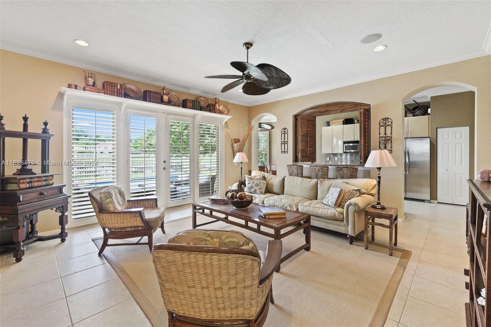 This elegant two-story home in the prestigious Weston Hills Country Club features 6 bedrooms Plus den, 5 bathrooms, and a 2-car garage. The residence includes a living room, separate dining area, breakfast nook, and a first-floor bedroom. Enjoy a spacious private garden with a pool and lake view, perfect for entertaining. Situated in a gated community with two golf courses and several parks. The neighborhood is served by top-rated schools. Club membership is optional.