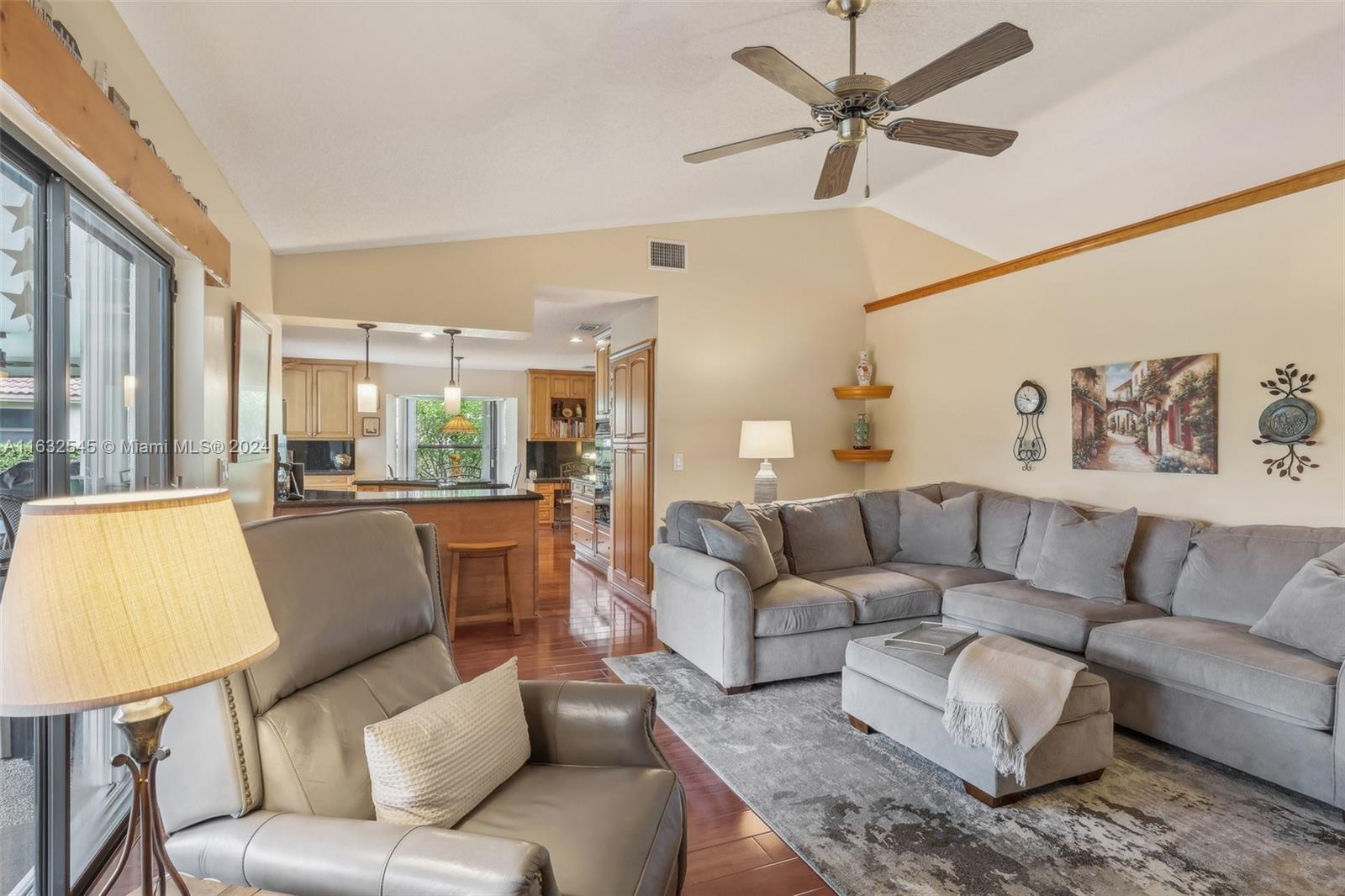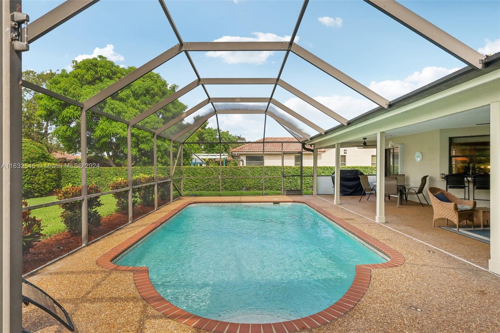 Come see this beautiful 4/2 home with pool in sought after Pine Ridge! Original Owners. Home features hurricane impact windows and doors, two A/C units, brand new 2024 on bedroom side and 2021 replaced on living room side, circuit breaker 2021, new pool pump, lanai flat roof replaced 2021, kitchen with island and granite counters, instant hot water dispenser at sink, and more! Security system includes 6 cameras/3 keypads. Large screened in patio great for entertaining. Child safety fence for pool. Owner had builders make the rooms larger than other models in neighborhood and added a pocket door to close off bedrooms from the rest of home. Large circular driveway that was resealed last month. All Valleys on roof have been replaced within the last 5 years. Close to highway and "A" schools!