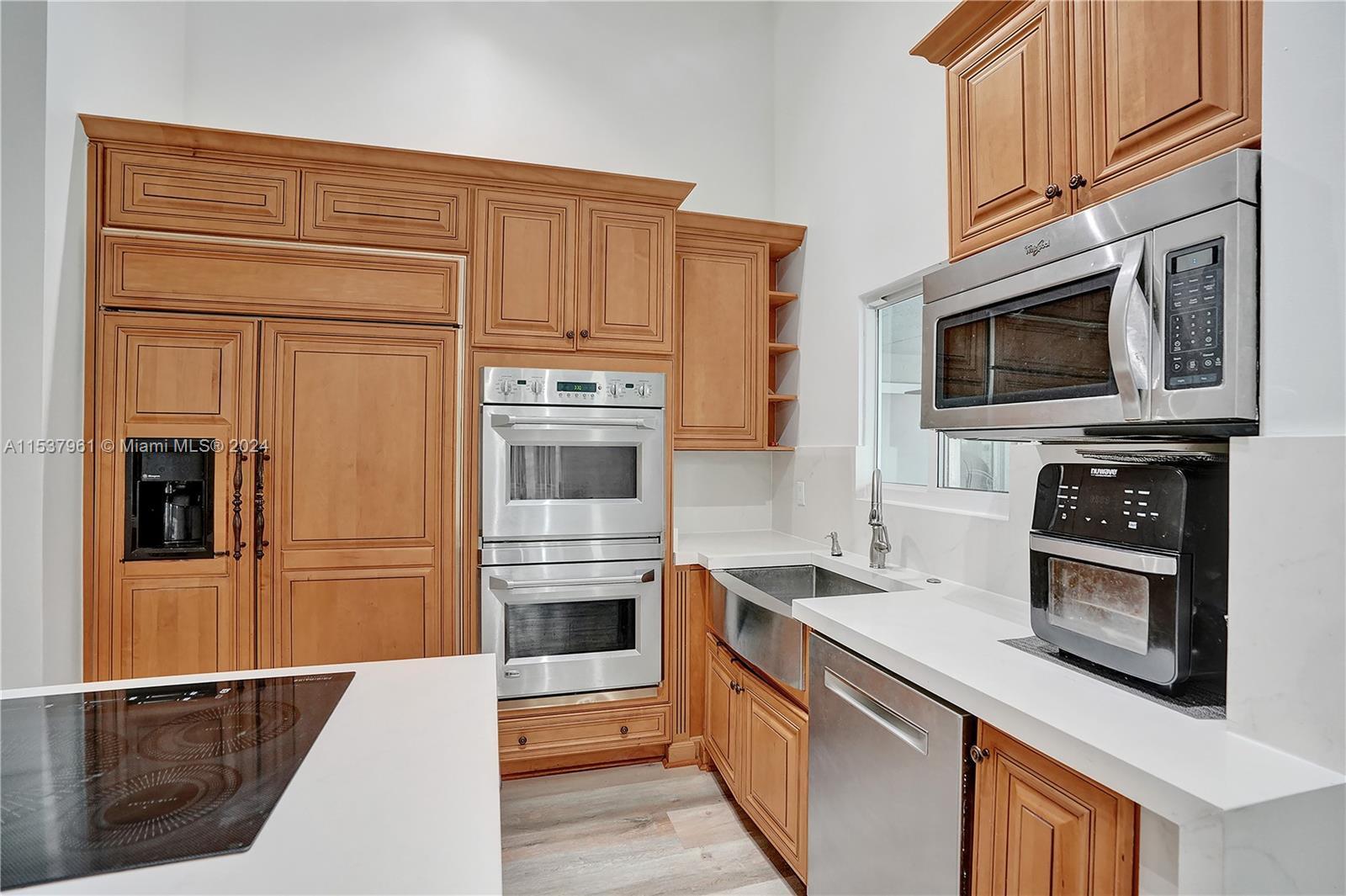 This beautifully renovated home in West Boca is waiting for you! Featuring 3 bedrooms, 2 bathrooms, and a versatile 4th room perfect for a den or office. Located near A-rated schools. The high-quality upgrades include all impact windows (lifetime warranty), a 2015 roof, AC installed in 2019, and a tankless water heater. The chef's kitchen has been tailored to culinary lovers with a quartz countertop island featuring an induction stove, double oven and oversized fridge. The summer kitchen tops off the chef's delight with a Thermador gas stove, wood burning stove and pizza oven! The spacious layout includes a split bedroom floor plan, offering privacy and functionality, perfect for easy living and entertaining. The bathrooms have been remodeled with modern finishes...