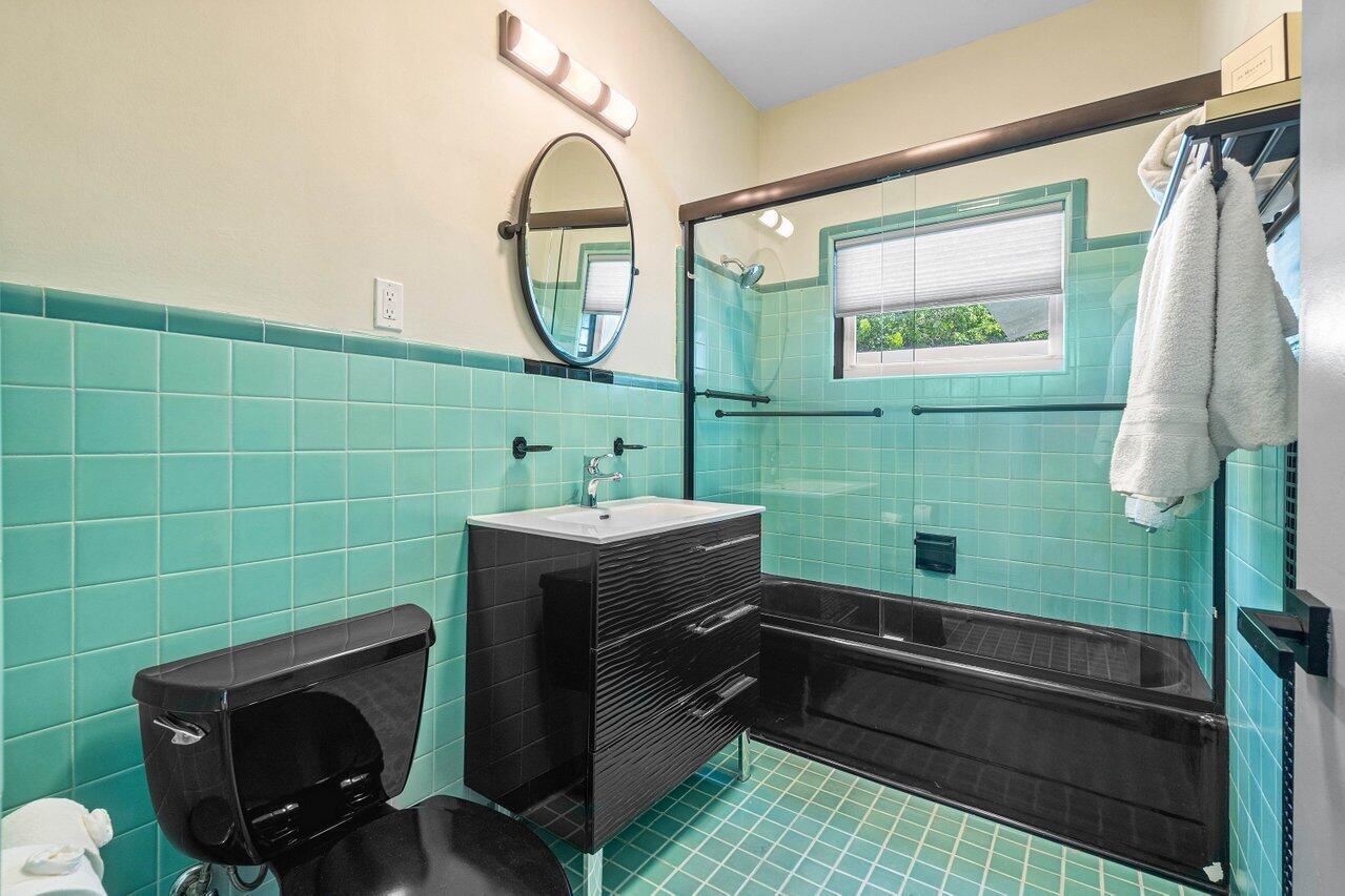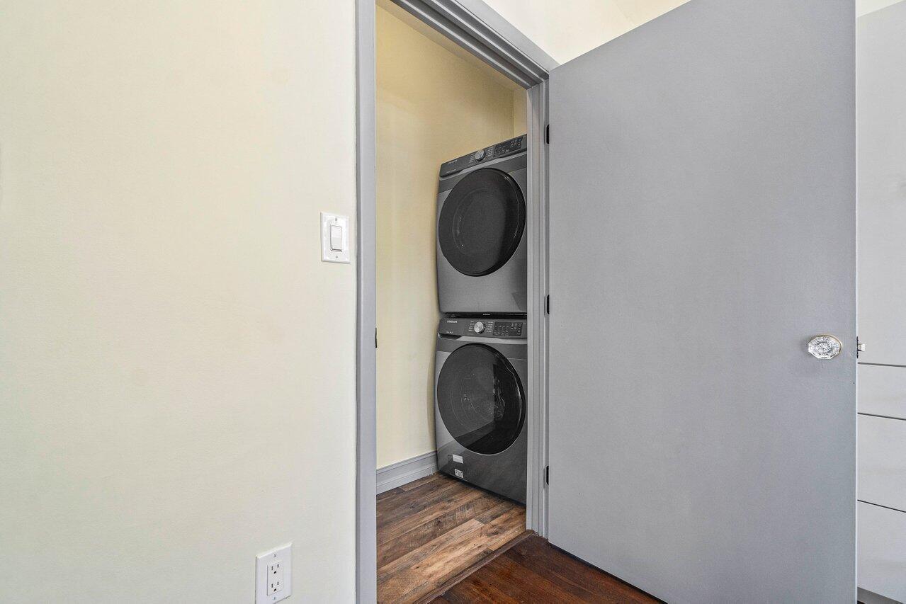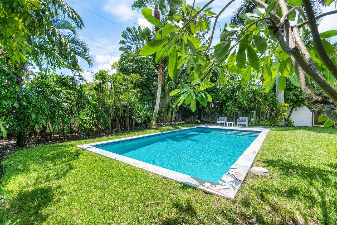 Belford Shoumate, Modernist Architect, modified this 1935 home on the WPB lake block.. The light filled spacious primary rooms open up to an expansive pool area, tropical lush gardens, ensuite baths & Al fresco showers. Spacious primary dressing area, hardwood floors, and Cedar closet, There is a nautical inspiration on the second level with an open deck considered the 4th rm The Art Moderne home features a fireplace for the living & dining area. The bright open Kitchen has a gas stove, double ovens, two work stations with sinks, a wine fridge.The ensuite 3rd bed/ family room accesses the garden area. Renovated in 2021. One car garage.Heated Pool. Centrally located to antique row and a bridge away to PB Island.
