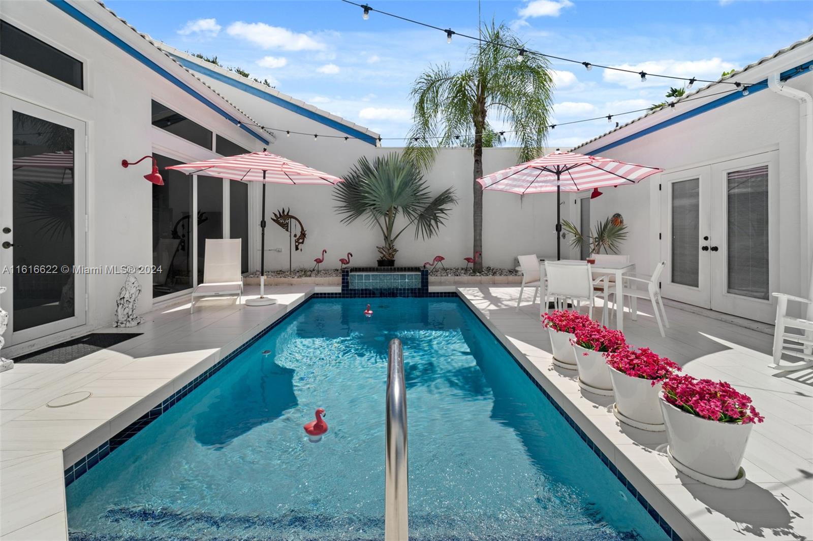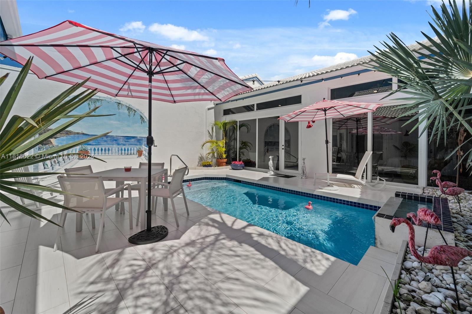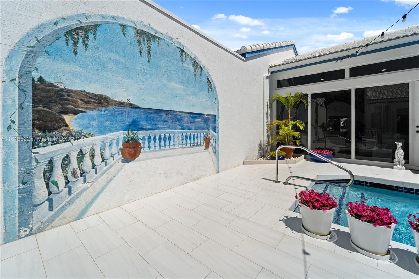 Welcome to your private oasis at Mykonos Court in the prestigious, gated Boca Country Club. This stunning & fully renovated with style 2 bed + den, 2.5-bath fee-simple townhome with garage boasts a spacious, open-concept layout that seamlessly integrates indoor and outdoor living. This residence features a beautifully designed private courtyard with a pool, fountain and Greek-inspired touches, and its backyard offers serene lake canal and Bocaire golf course views. The elegant design and tranquil setting make this home a perfect blend of luxury and relaxation. Situated in one of Boca Raton's most sought-after communities, you'll enjoy top-rated A schools, a low HOA, and no mandatory membership requirements.