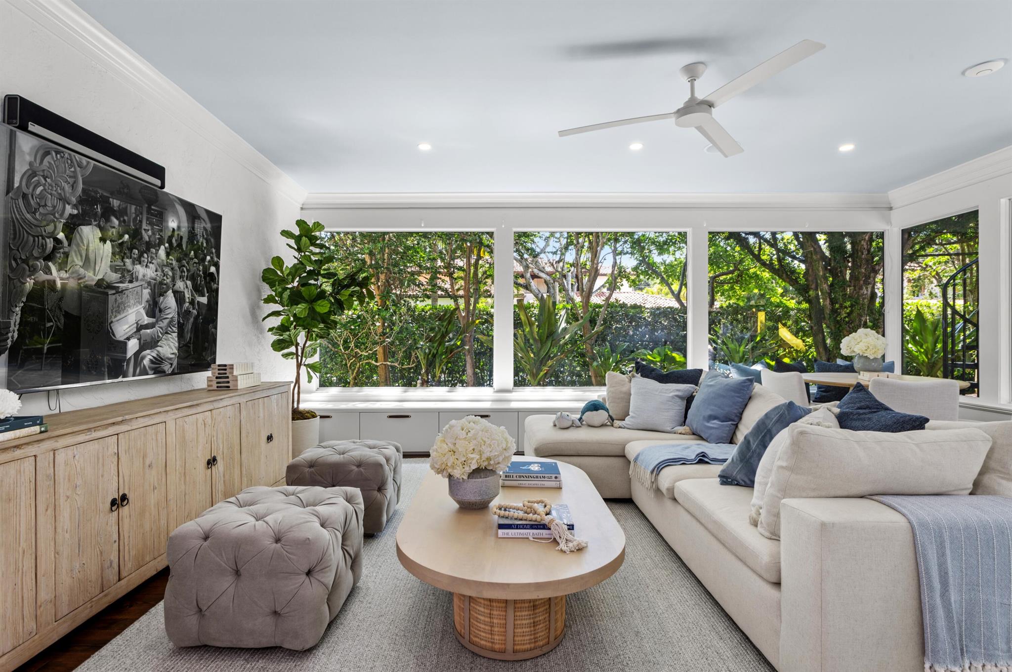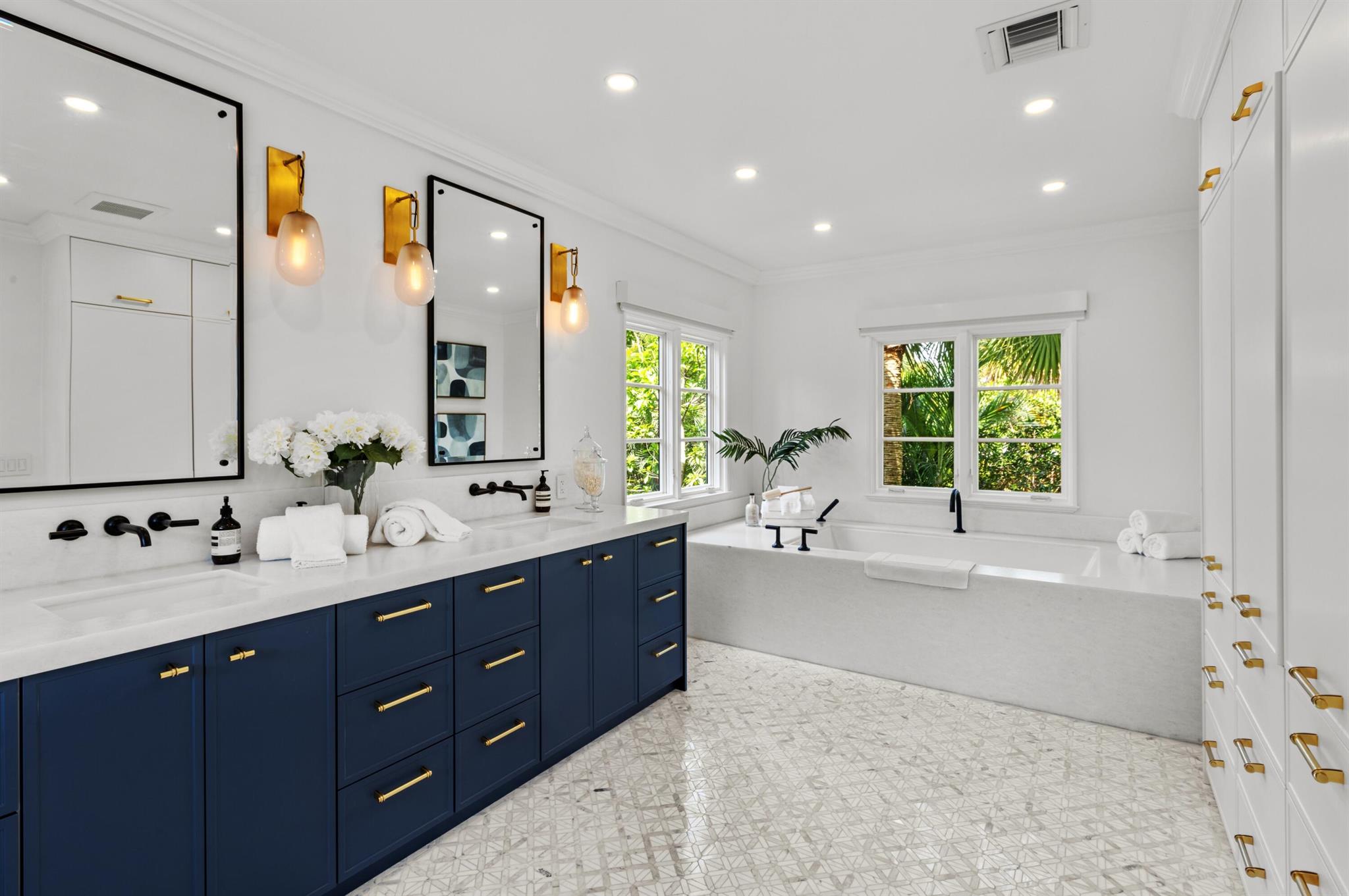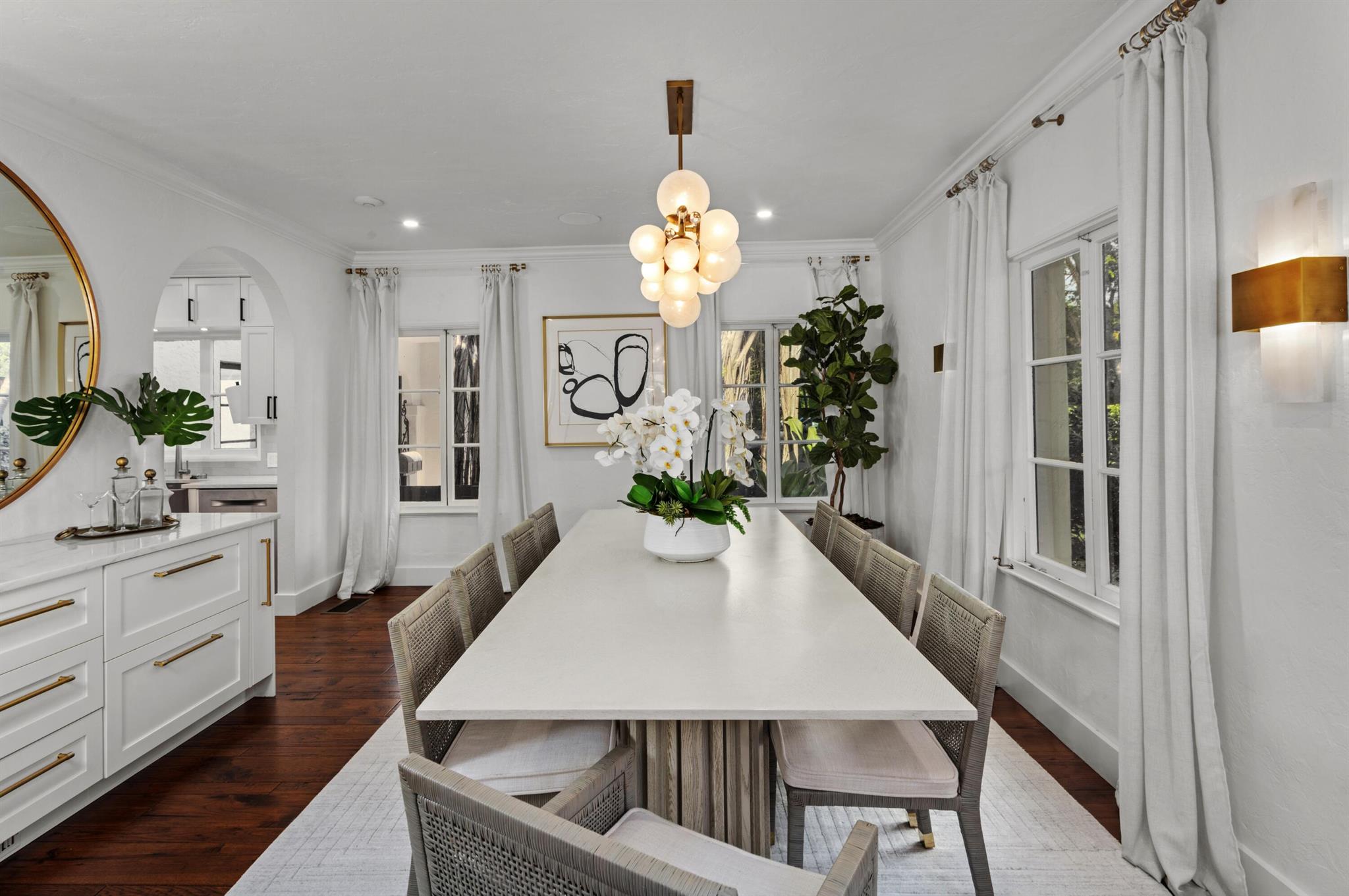 Hibiscus Street, Boca Raton, Florida. Nestled in the heart of Old Floresta, an acclaimed historic enclave established in the 1920's by celebrated architect Addison Mizner, just minutes from the world-class shopping, dining and entertainment in beautiful Mizner Park; the renowned Boca Raton Resort and Club; pristine ocean beaches; and Boca Raton's private executive airport. The property is framed by a clusia privacy hedge, a brick walkway meanders, under a carefully lit canopy of Royal Poinciana trees, live oaks, specimen palms and banyan trees, past the front entry, toward a fenced, privacy landscaped, rear entertainment area. There, a multi-arched covered loggia overlooks a resort-style heated saltwater pool and Spanish tile deck with areas for sunning and alfresco dining.