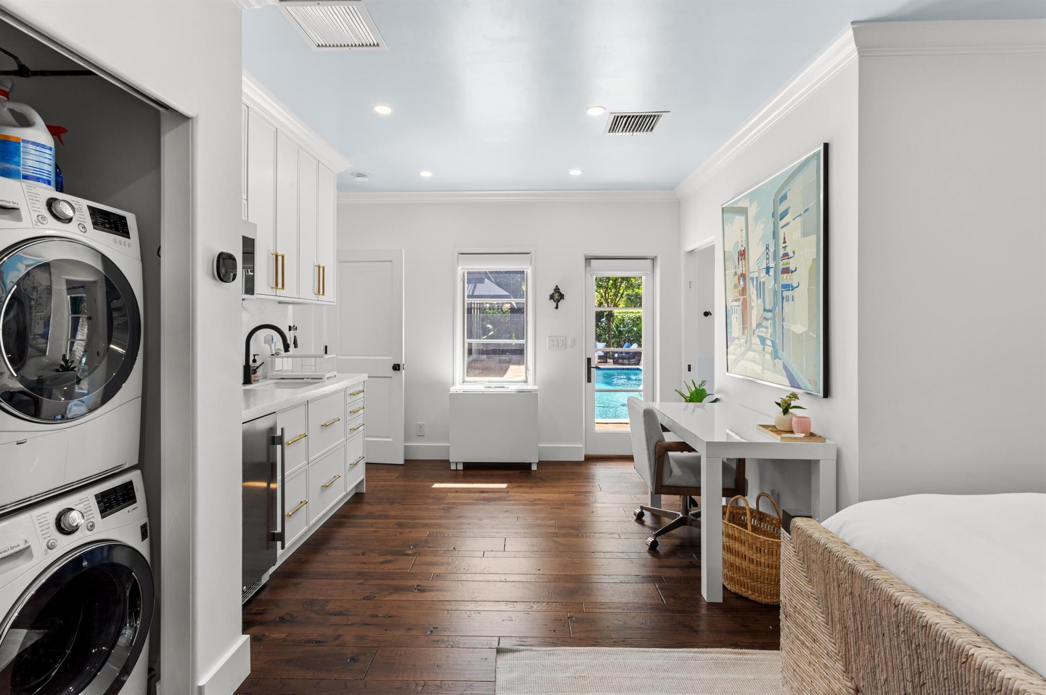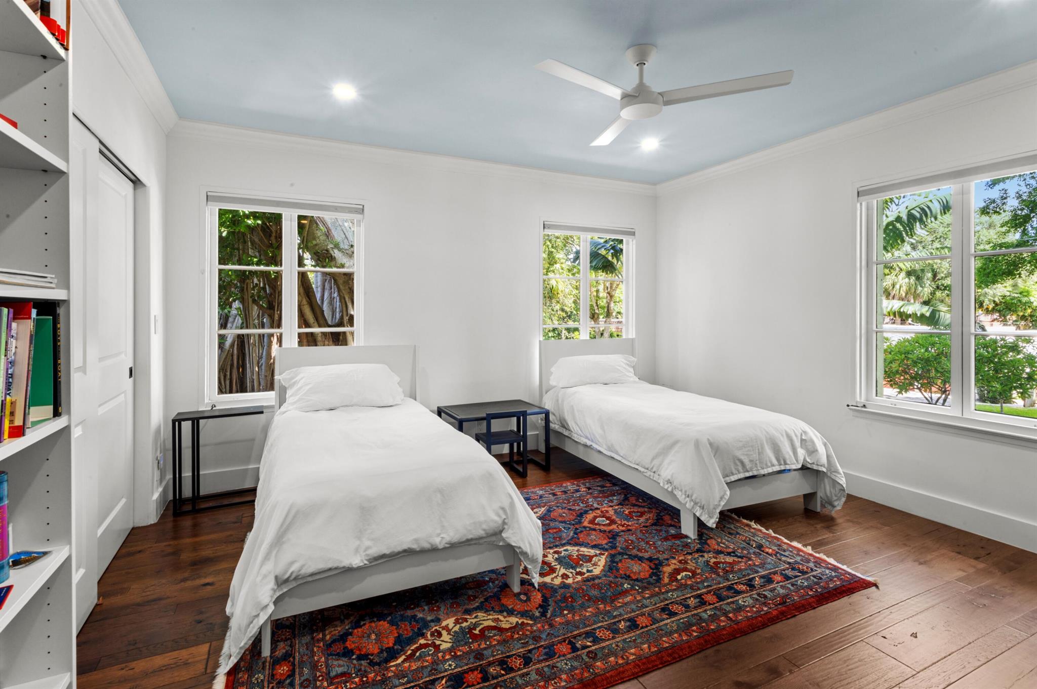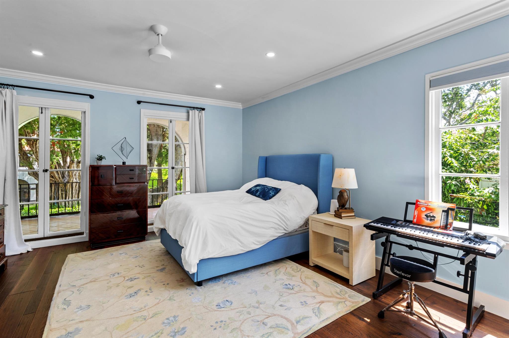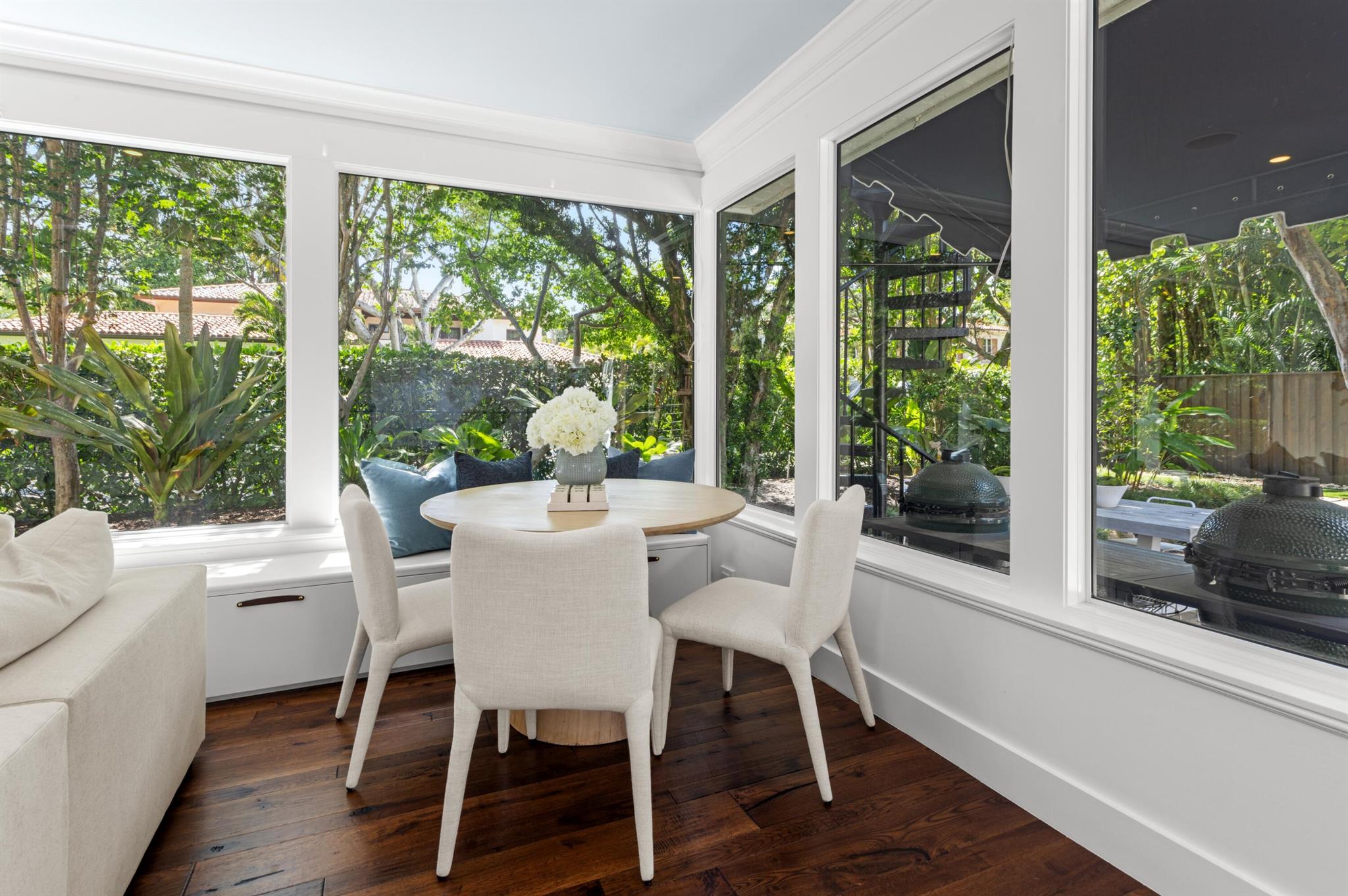 Hibiscus Street, Boca Raton, Florida. Nestled in the heart of Old Floresta, an acclaimed historic enclave established in the 1920's by celebrated architect Addison Mizner, just minutes from the world-class shopping, dining and entertainment in beautiful Mizner Park; the renowned Boca Raton Resort and Club; pristine ocean beaches; and Boca Raton's private executive airport. The property is framed by a clusia privacy hedge, a brick walkway meanders, under a carefully lit canopy of Royal Poinciana trees, live oaks, specimen palms and banyan trees, past the front entry, toward a fenced, privacy landscaped, rear entertainment area. There, a multi-arched covered loggia overlooks a resort-style heated saltwater pool and Spanish tile deck with areas for sunning and alfresco dining.