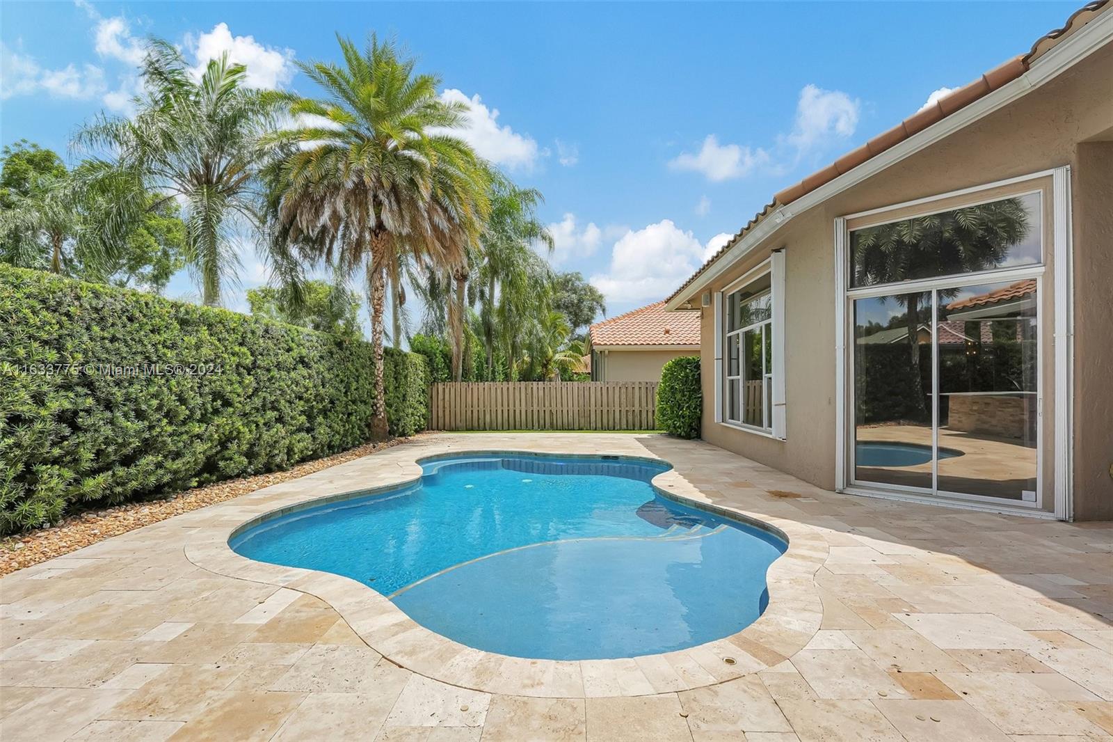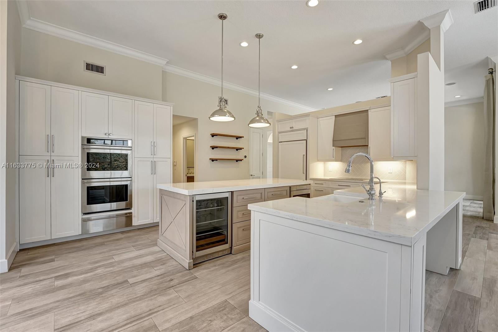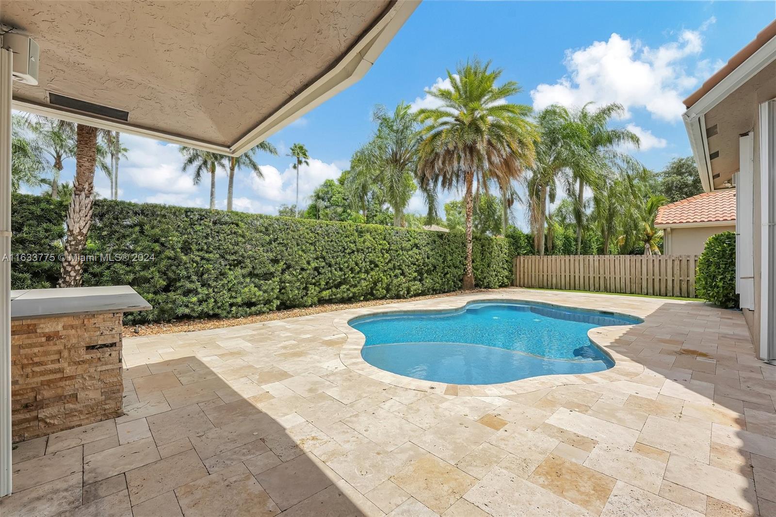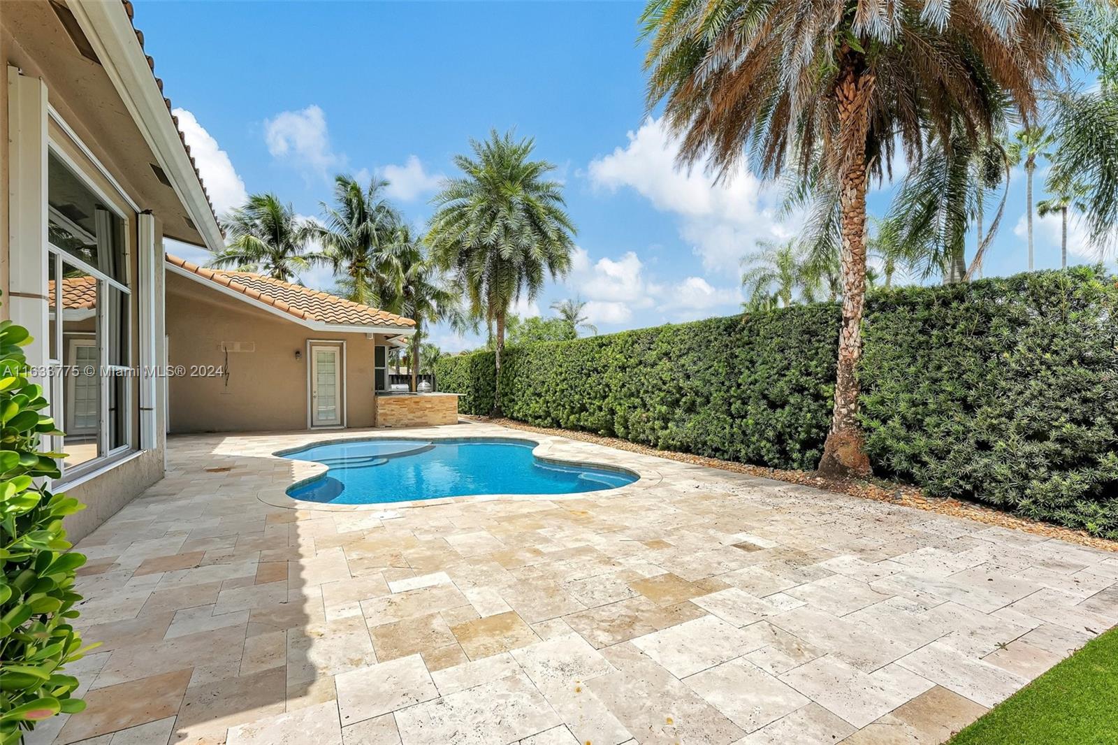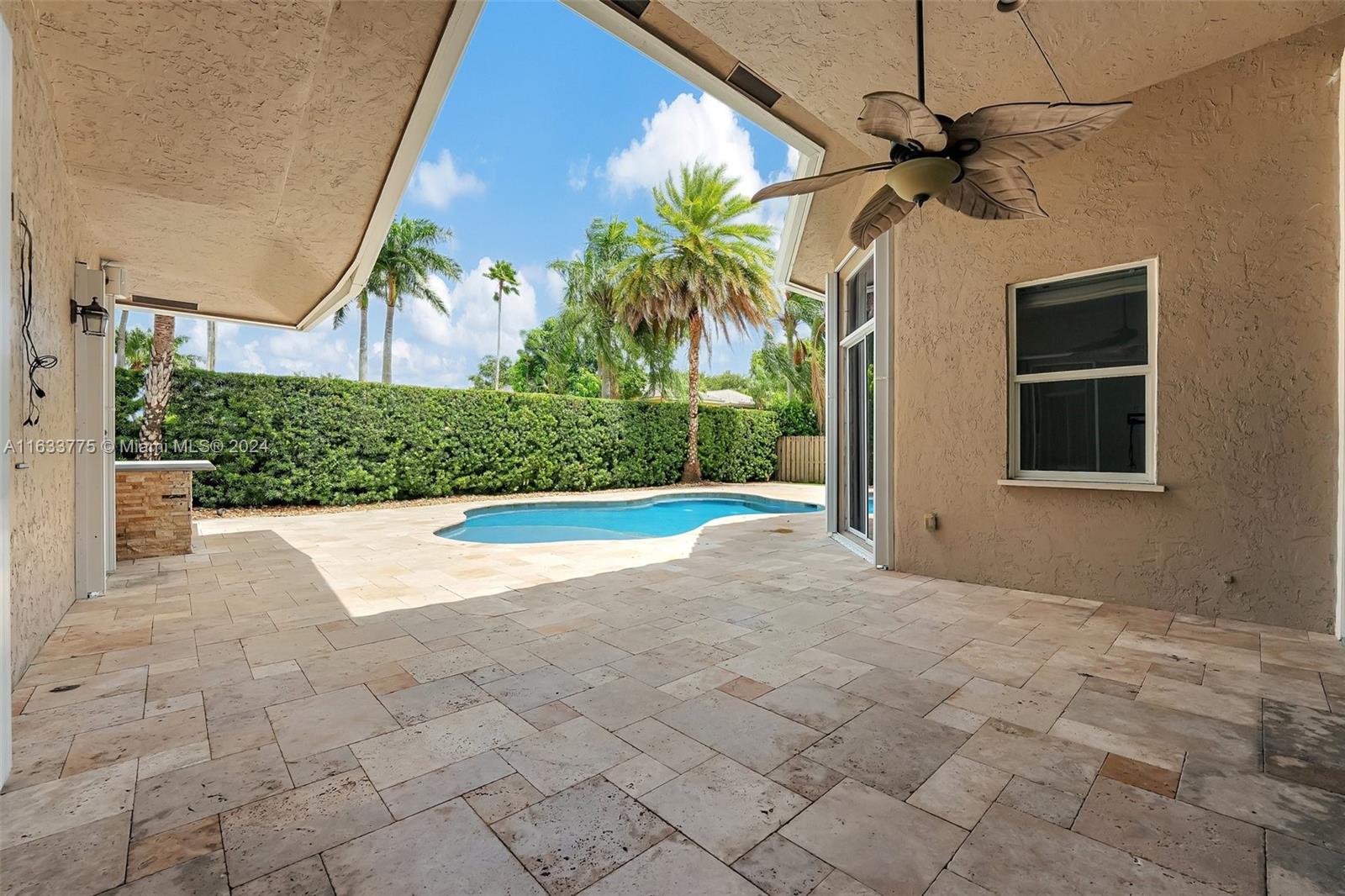 Stunning 4/3.5 home in Westport! Roof (2019). AC (2022). Impact glass windows, 12' impact sling glass door, accordion shutters & impact garage door. Pool/travertine deck built in 2013 by Van Kirk Pools features Salt Water system and heater. Open layout w/ 12' volume ceilings & 8' interior doors. Renovated kitchen w/ quartz counter tops, large island, double oven w/ warming drawer, paneled fridge and dishwasher, built-in wine fridge, microwave drawer & pantry. Tile plank flooring throughout main living areas, real hardwood in primary. Built in cabinets in all closets. Primary bath - stand alone tub, shower w/ frameless enclosure. Sonos system & ADT sec w/ 11 cameras (interior/exterior). Custom curtains & Roman shades in living area & plantation shutters in secondary rooms.