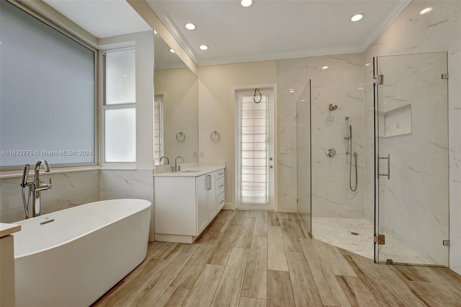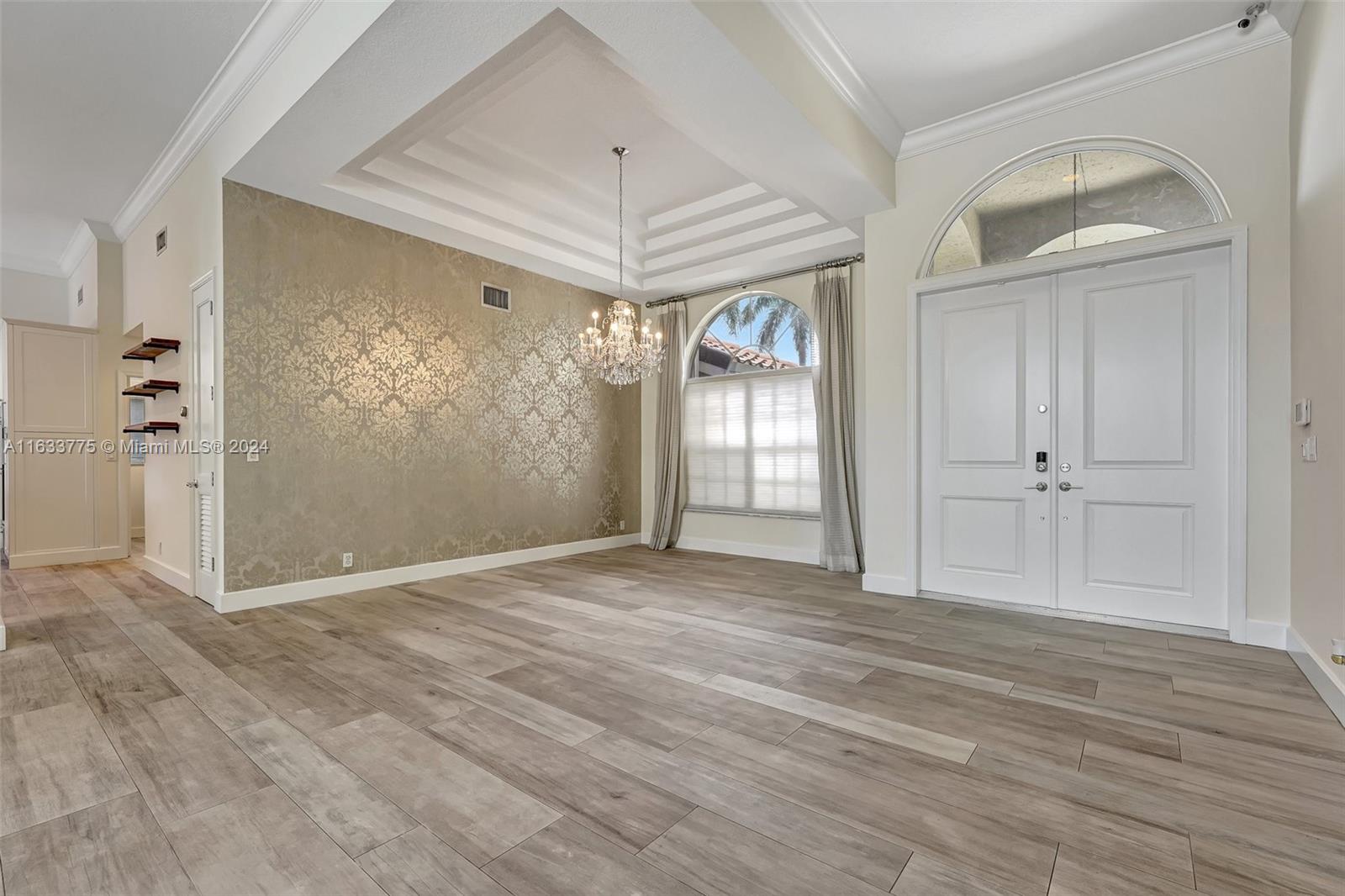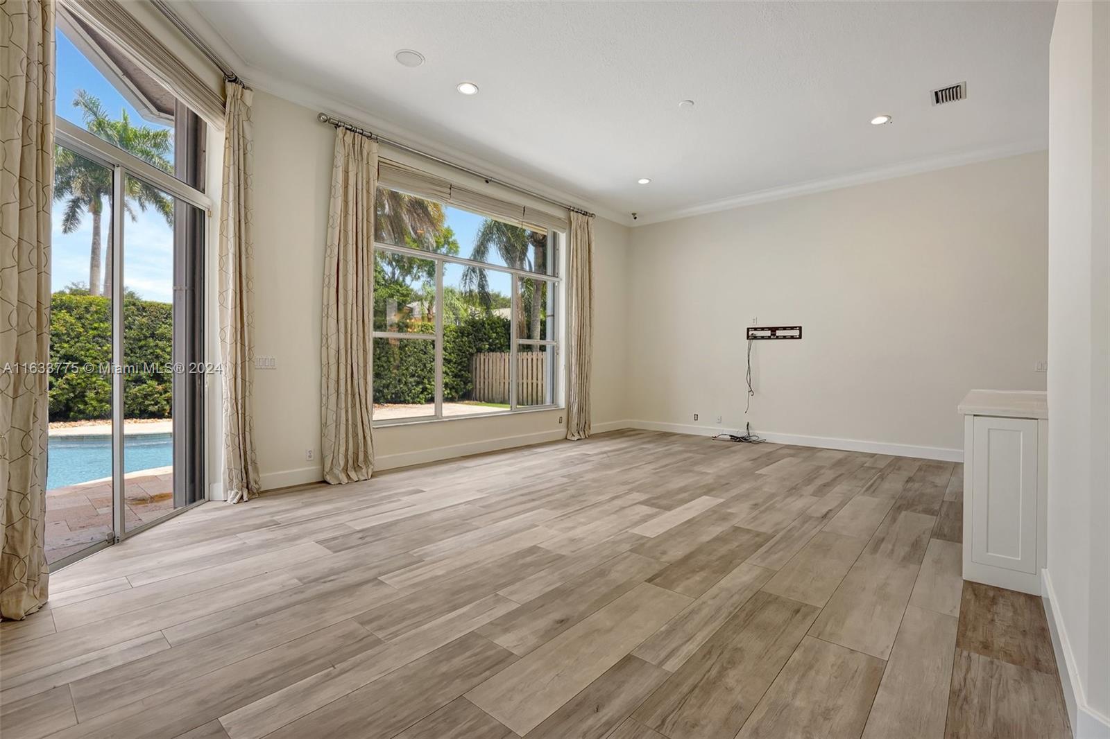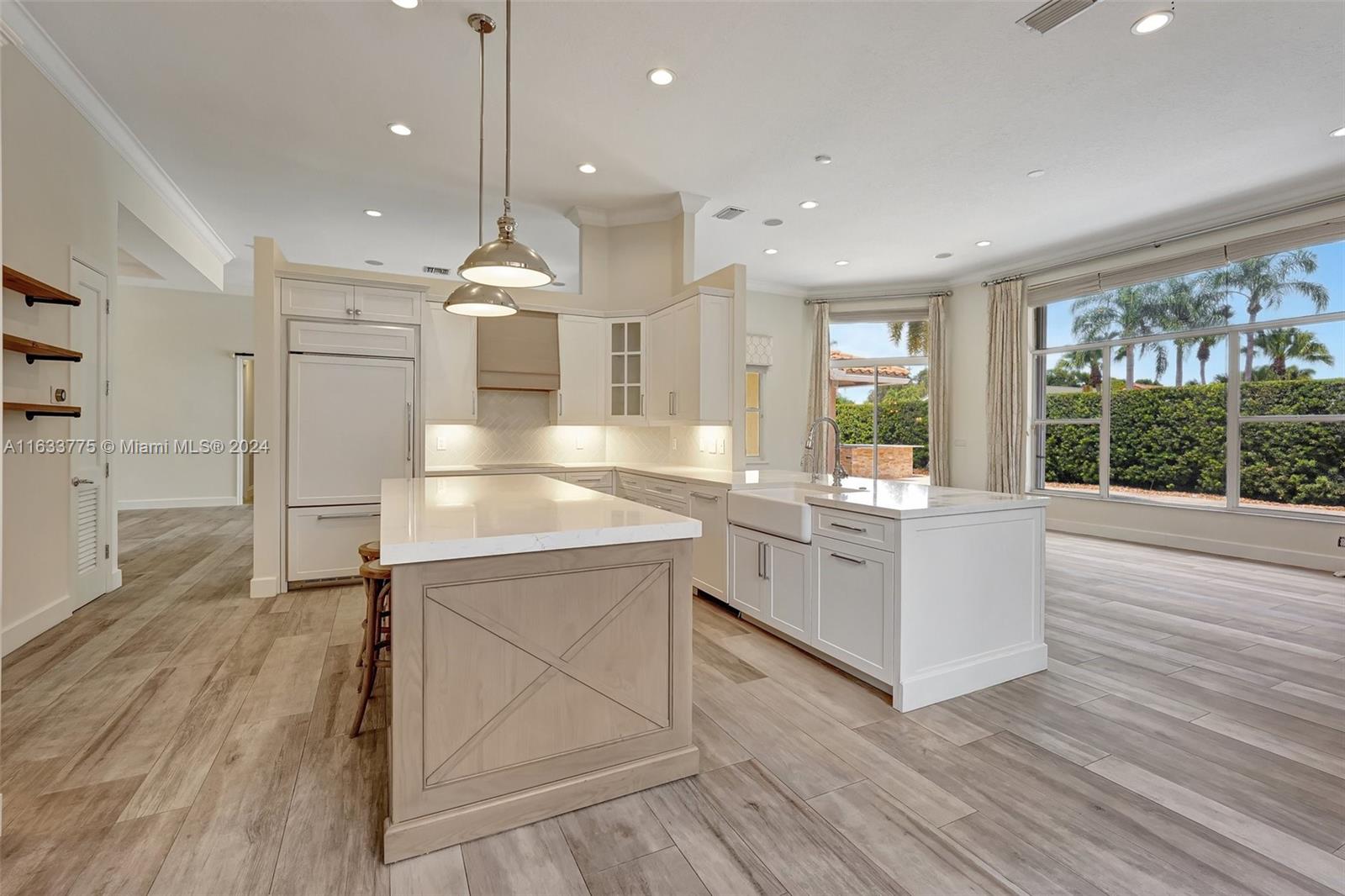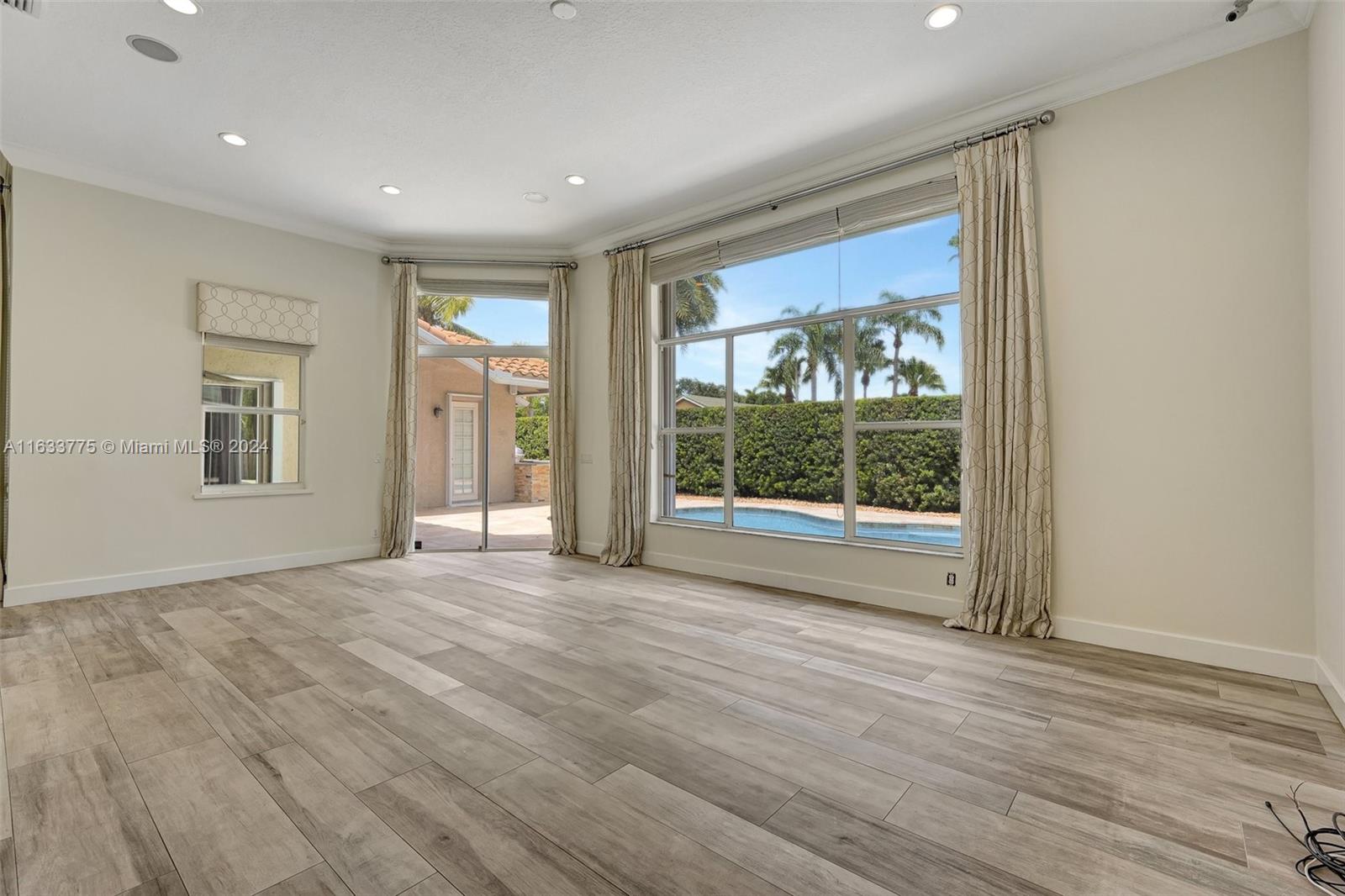 Stunning 4/3.5 home in Westport! Roof (2019). AC (2022). Impact glass windows, 12' impact sling glass door, accordion shutters & impact garage door. Pool/travertine deck built in 2013 by Van Kirk Pools features Salt Water system and heater. Open layout w/ 12' volume ceilings & 8' interior doors. Renovated kitchen w/ quartz counter tops, large island, double oven w/ warming drawer, paneled fridge and dishwasher, built-in wine fridge, microwave drawer & pantry. Tile plank flooring throughout main living areas, real hardwood in primary. Built in cabinets in all closets. Primary bath - stand alone tub, shower w/ frameless enclosure. Sonos system & ADT sec w/ 11 cameras (interior/exterior). Custom curtains & Roman shades in living area & plantation shutters in secondary rooms.