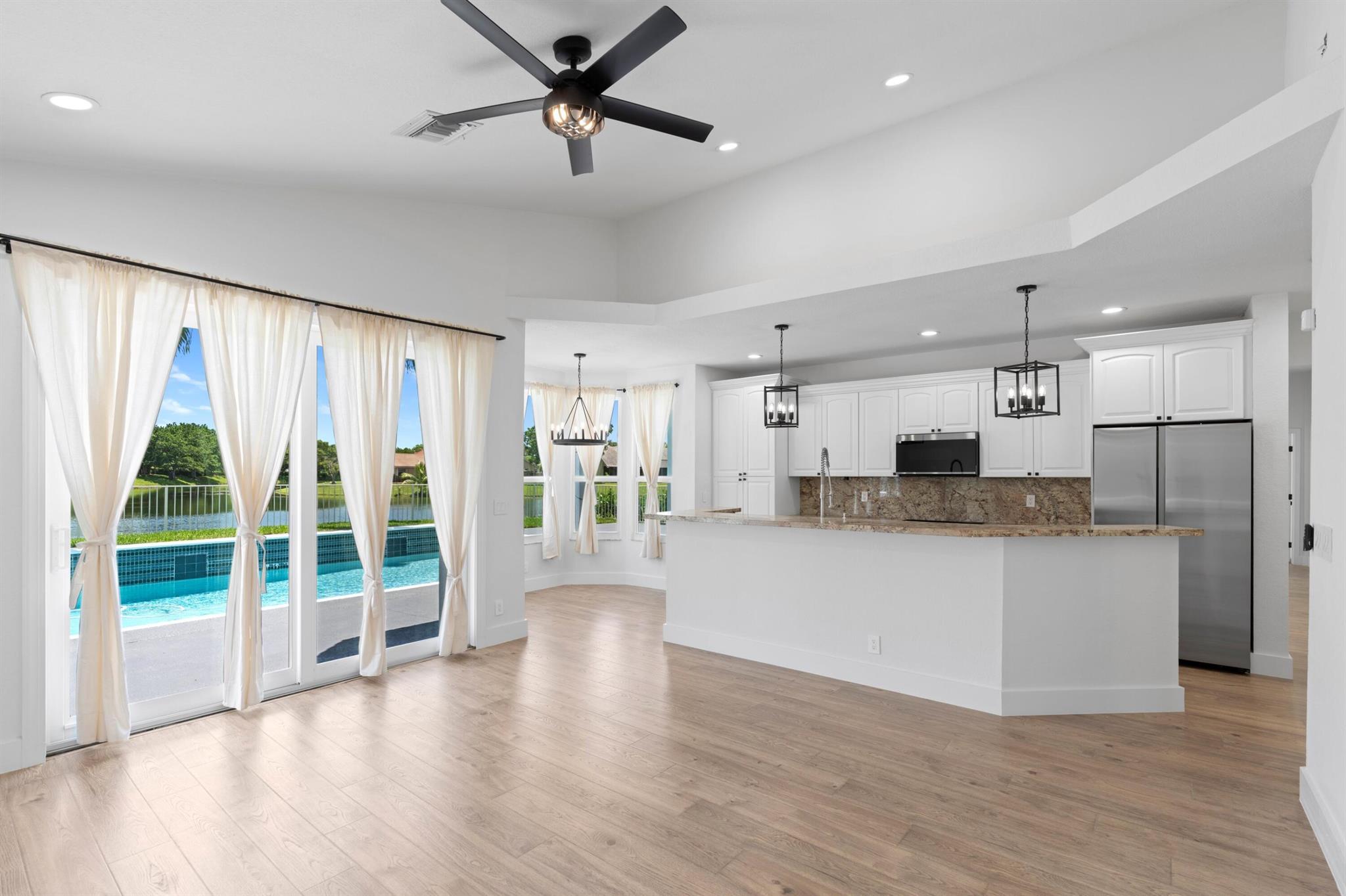 Discover this stunning lakefront single-family home in the highly desirable West Boca neighborhood of Boca Winds, known for its excellent schools all within walking distance. This meticulously updated 5 bedroom, 3 bathroom home sits on an expansive lot, offering modern comforts and style. Enjoy brand new flooring, baseboards & fresh paint inside & out. The kitchen boasts all new Samsung stainless steel appliances. Additional features include flush high hat lighting, a resurfaced pool deck & a master balcony with serene lake views. The community offers a warm and welcoming clubhouse with a pool, community room & a rare fishing dock. The detailed upgrades list goes on & the light & bright feeling that you get when you step inside is only to be understood in-person. Come see for yourself!