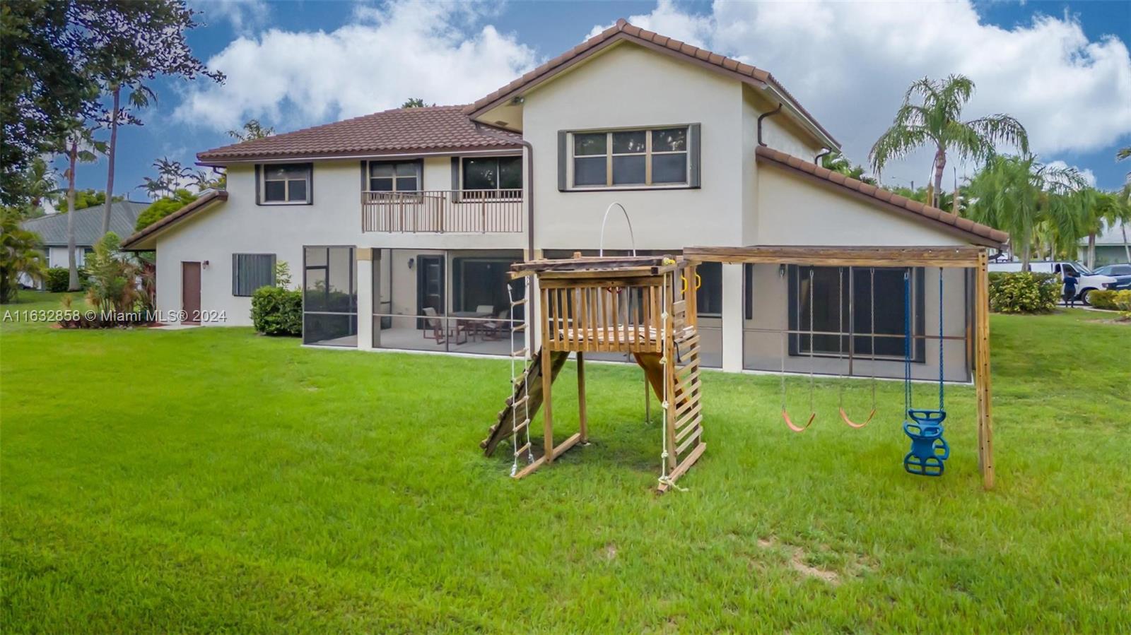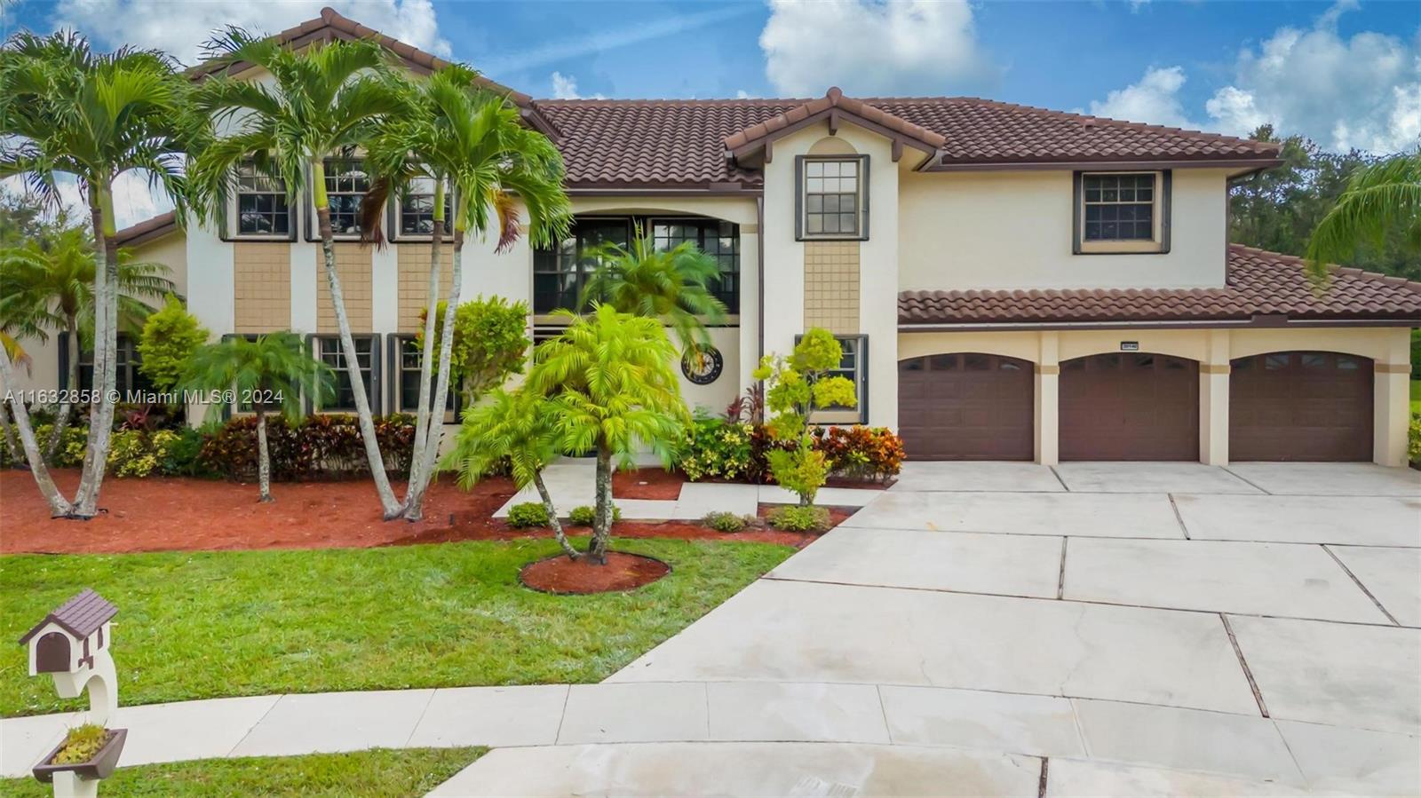 Discover luxury living in this stunning 4-bedroom, 4-bathroom San Simeon model home, located in the exclusive Pasadena Estates of Chapel Trail. This two-story gem features a spacious 3-car garage, updated laminate flooring, and a newer Spanish tile roof. The beautifully updated kitchen boasts white shaker cabinets and quartz countertops. The expansive master suite offers double bathrooms, walk-in closets, and a private balcony with serene yard views. Enjoy the huge screened-in patio with ample space for a pool. Located in a private cul-de-sac on one of the largest lots in the area, this home also includes hurricane shutters, a new electrical panel, and access to top-rated A+ schools. Perfect for families seeking style and convenience.