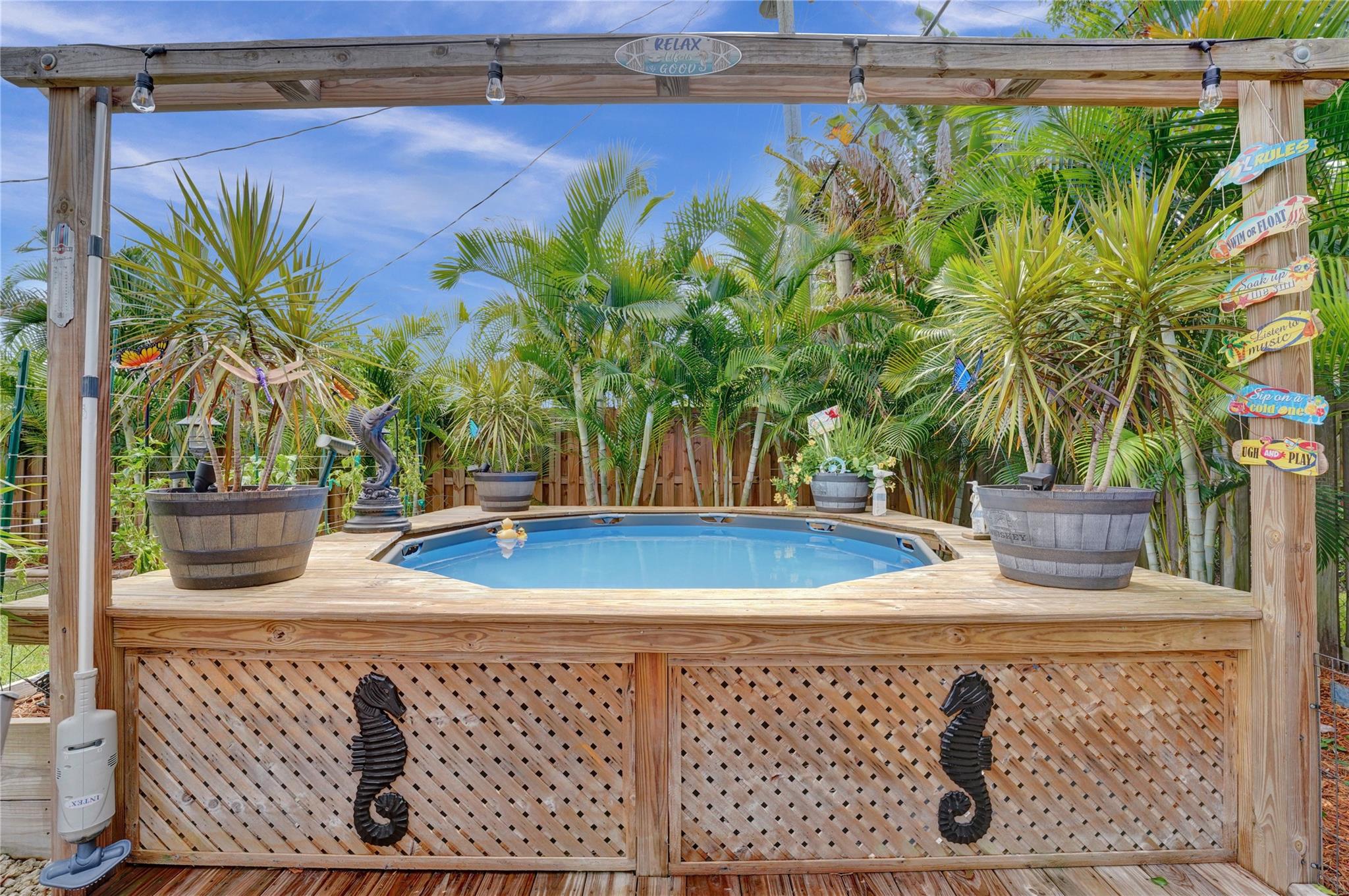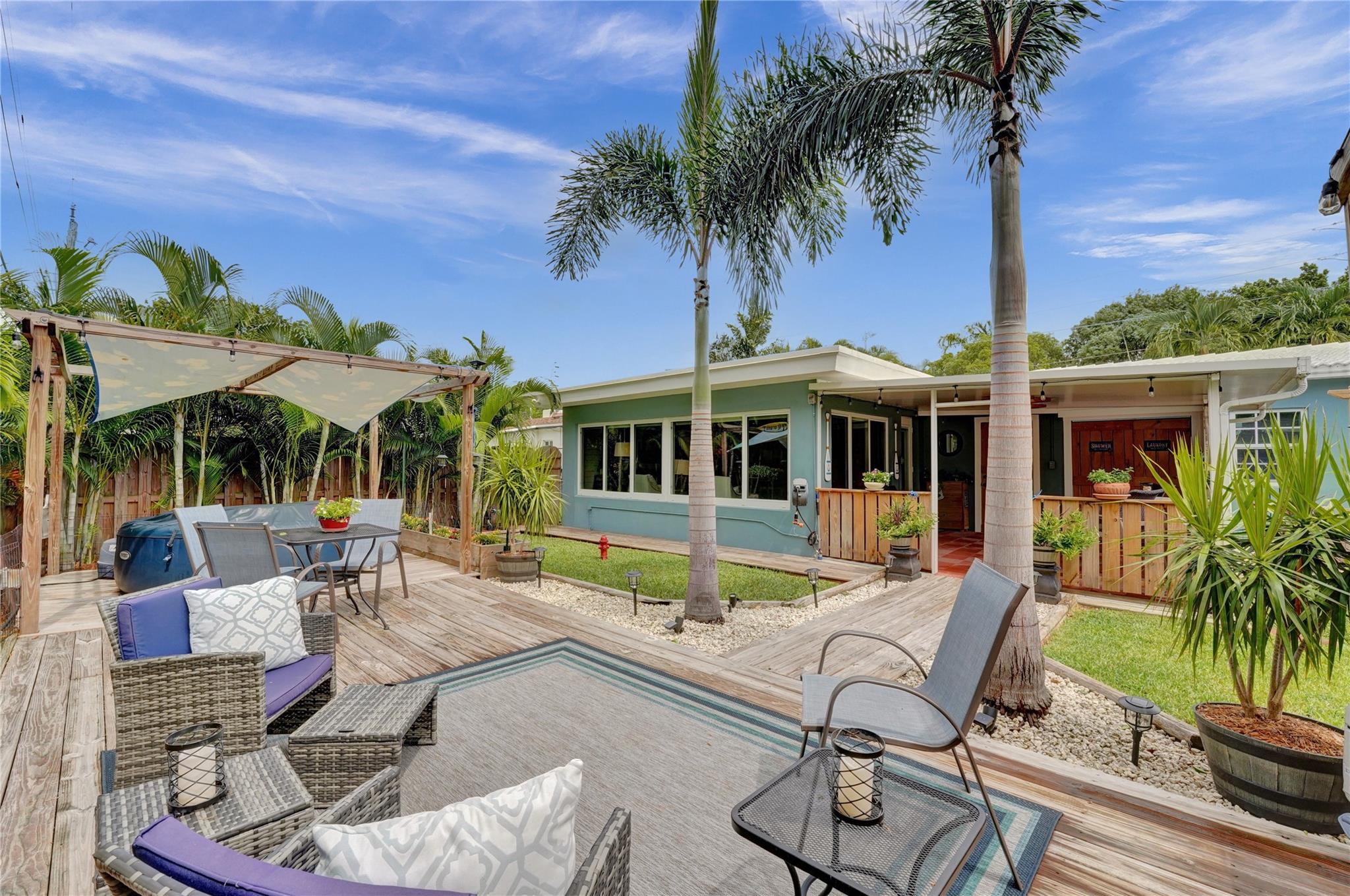 Seller Financing Considered with at least 30% down! Private retreat in the highly sought-after Middle River Terrace neighborhood, just minutes away from the vibrant Wilton Drive and its renowned entertainment district. Prepare to be amazed as you step into this tastefully updated home. Expansive 17x19 sun-filled family room opens to a charming Key West-style covered porch and patio, complete with an outdoor bathroom—perfect for seamless indoor-outdoor living. Lush, tropical landscaping features an above-ground dipping pool & a relaxing hot tub, creating your personal paradise. Beautifully updated interior, with tongue-and-groove wood flooring, stunning designer kitchen with Quartz countertops and stainless appliances, impact glass windows & doors, and a brand-new A/C system.