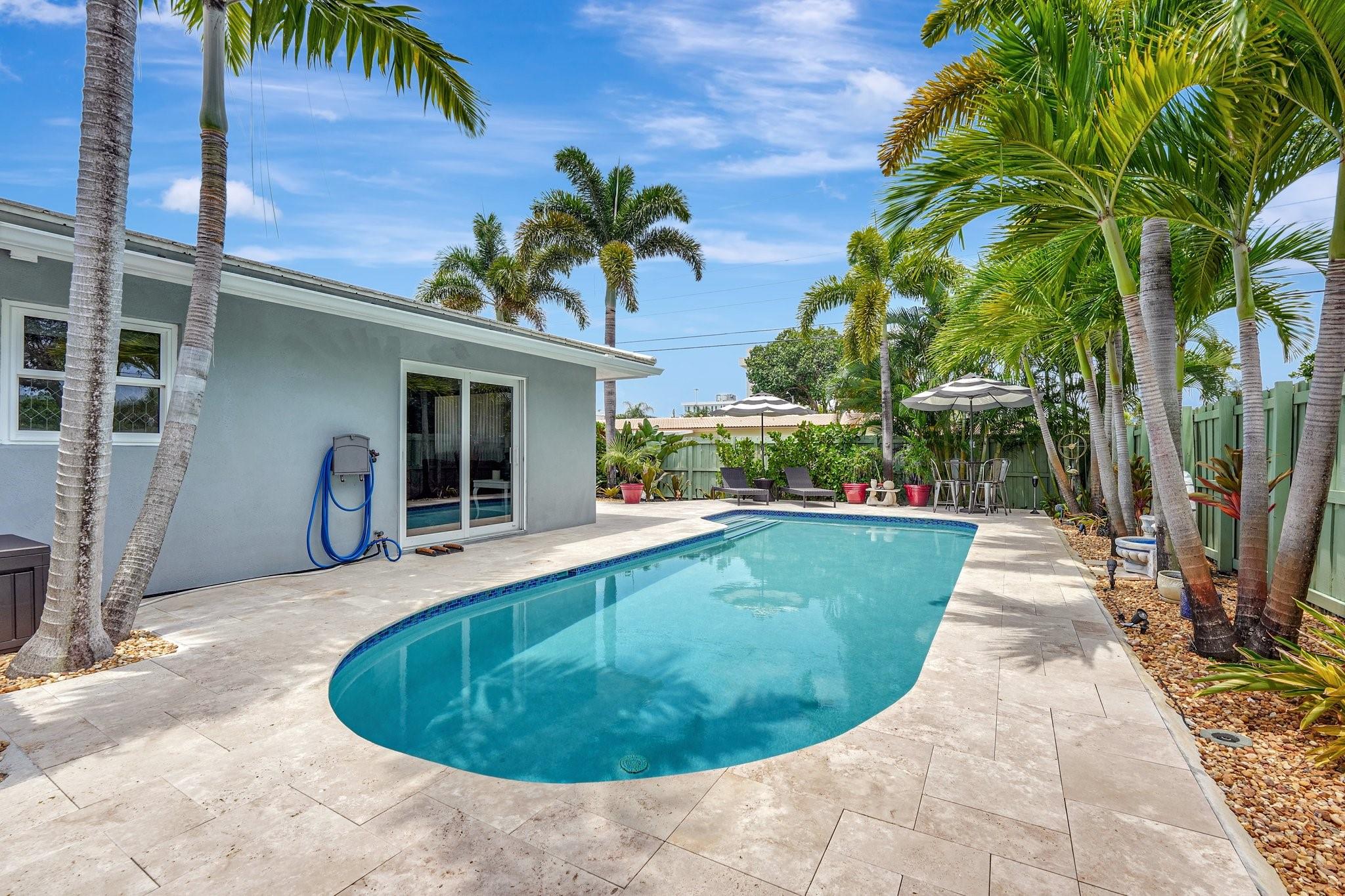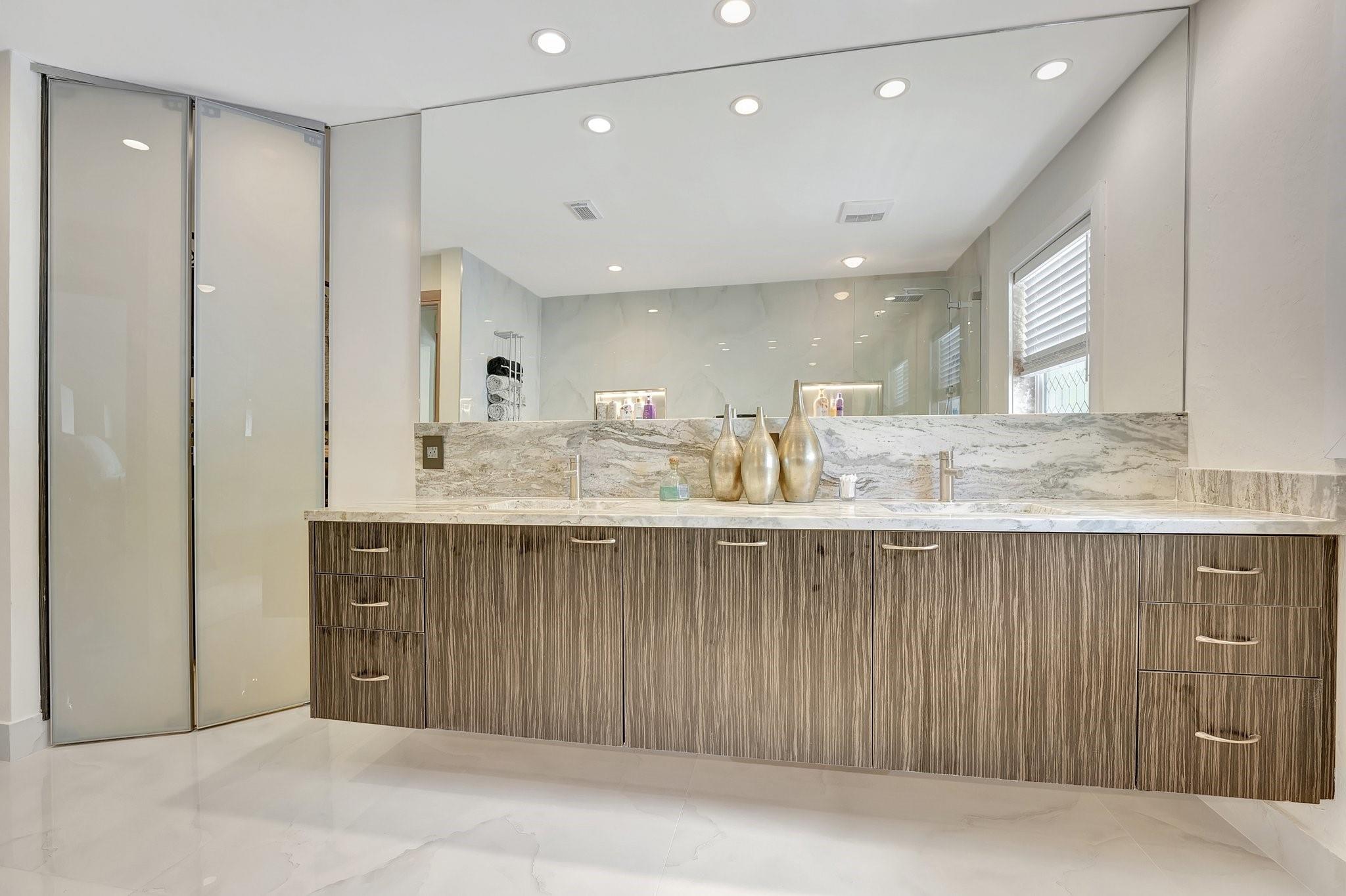 Extremely large 2 bedroom (sf similar to 3 bedrooms) Coral Ridge pool home on rare oversized, private corner property! Garage could be converted to 3rd bedroom! NO Flood Insurance required! Lush landscaping & totally renovated private pool. Move-in ready, impact glass, some electronic shades, new tile floors, totally renovated pool. Open concept living room for space & functionality. Custom Poggenpohl kitchen, Miele appliances, cocktail bar/butler's pantry & refrigerator. Two bright & spacious primary bedrooms & updated custom baths, sliders open to pool area, separate spa & outdoor shower. Outdoor entertaining oasis, retractable power awning over outdoor living & dining area. Solar panels. New marble drive way & path. Bayview School District.