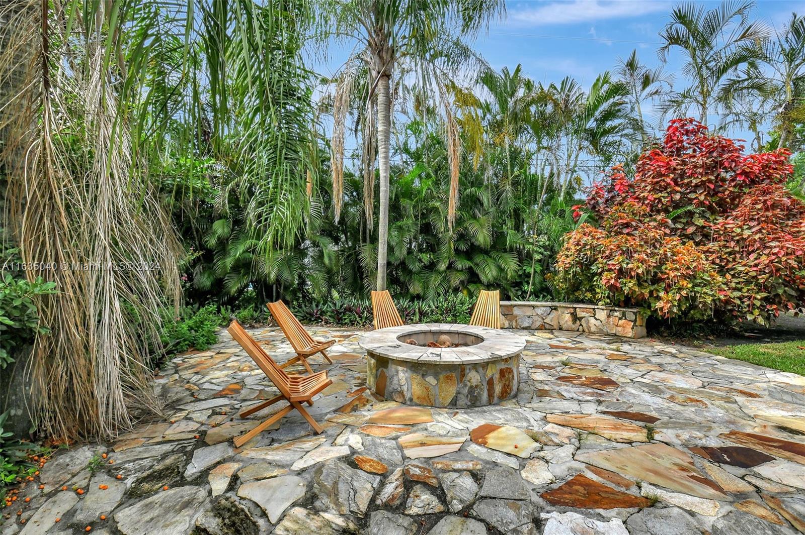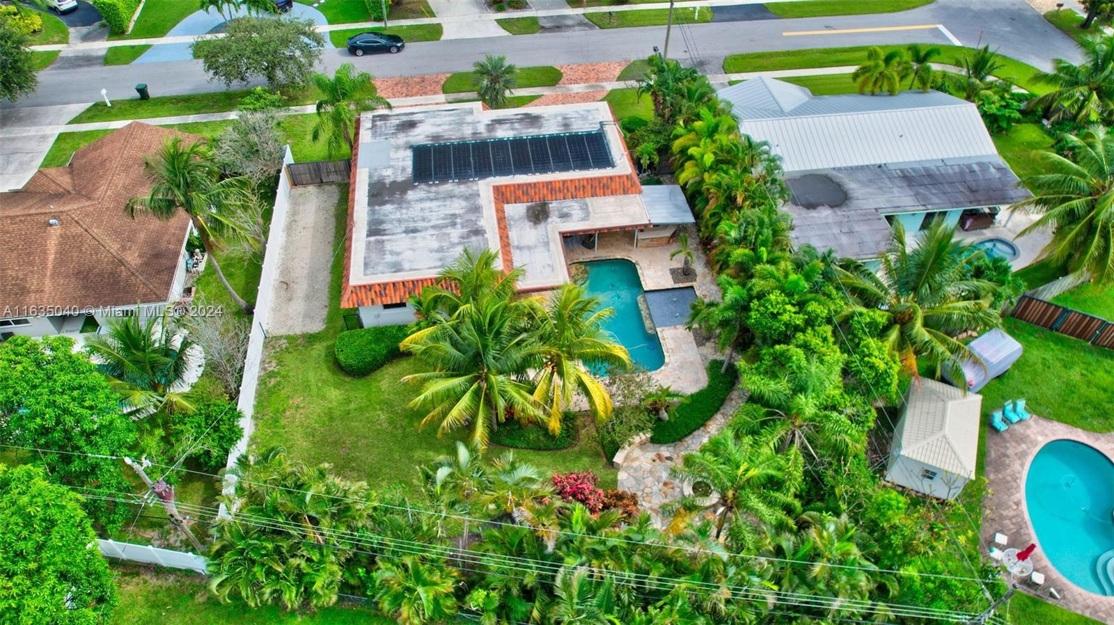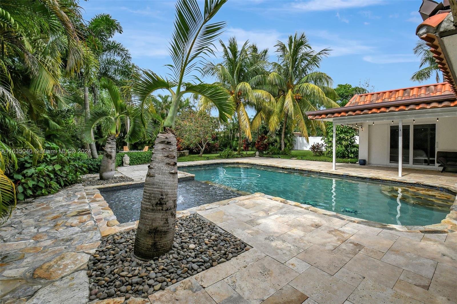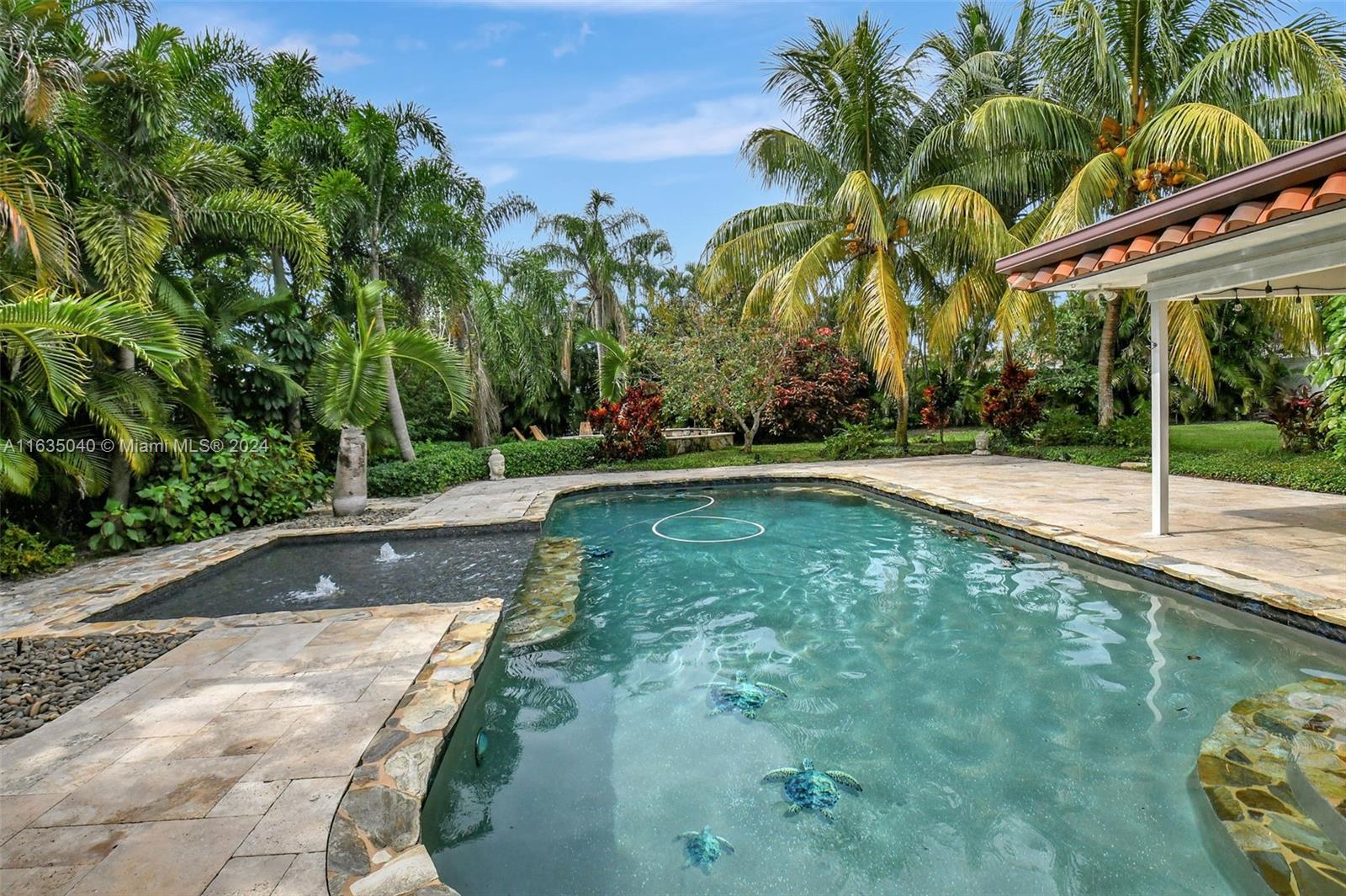 Enjoy a tropically landscaped garden, pool views, & natural light w/northern & southern exposures. Your private oasis features a custom oversized solar-heated salt chlorinated pool w/swim jet, water features, &glass-tiled swim shelf. Travertine patio includes a flagstone fire pit, built-in BBQ grill, fridge, sink, & fenced backyard w/RV space. Bright interior w/impact windows/doors, split floor plan, updated baths, LED lights, built-in speakers, & smart home features. Open kitchen w/energy-star stainless appliances & pantry. Primary bed w/ walk-in closet; guest bath w/ dual vanity. PVC pipes, relined copper sewer lines, large garage w/'24 washer/dryer, '22 AC, shop vac, & generator switch. Minutes to top schools, FAU, beach, & shops. Cameras on site.