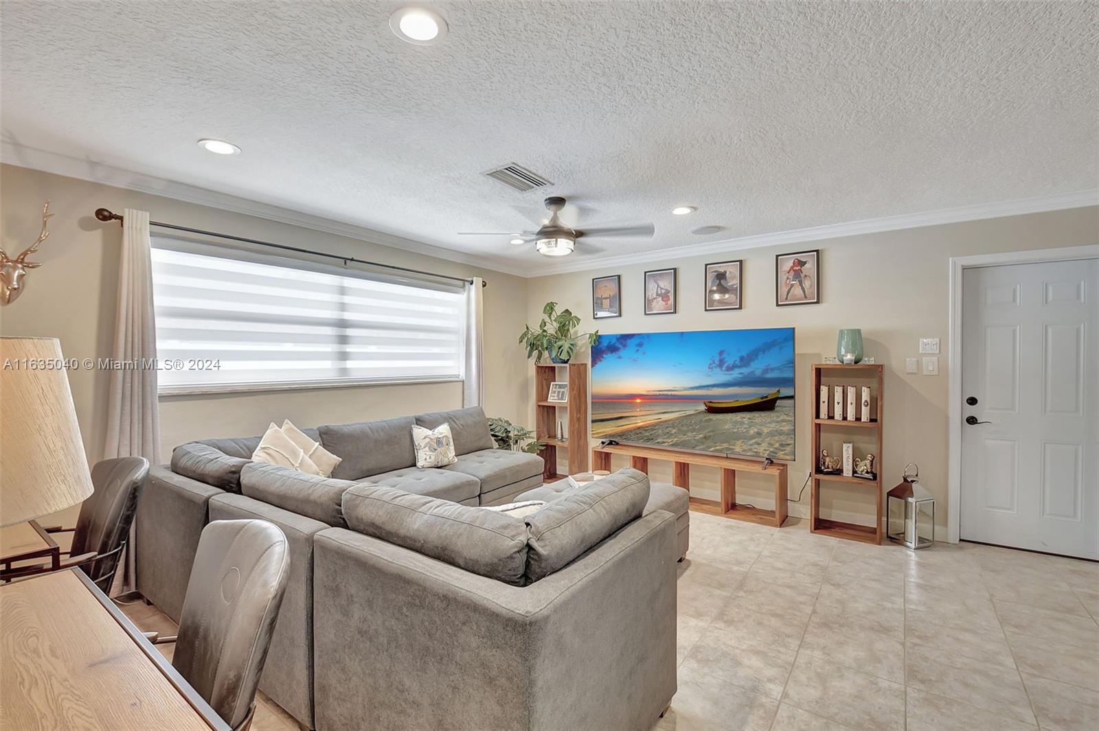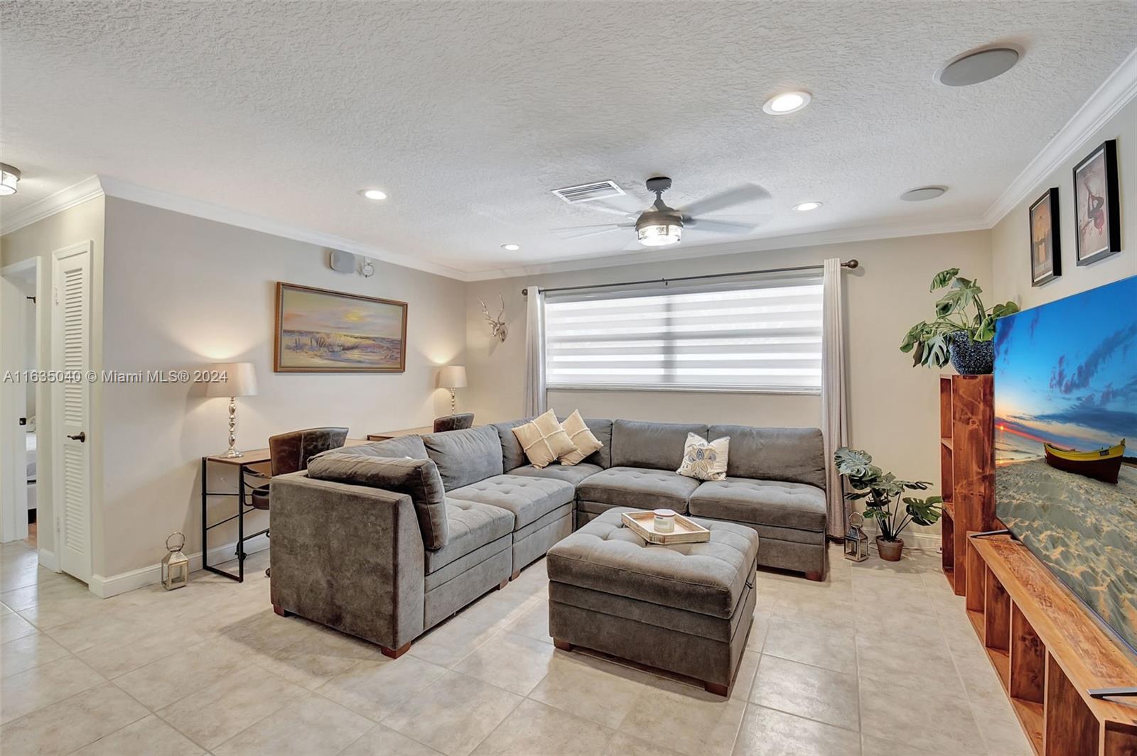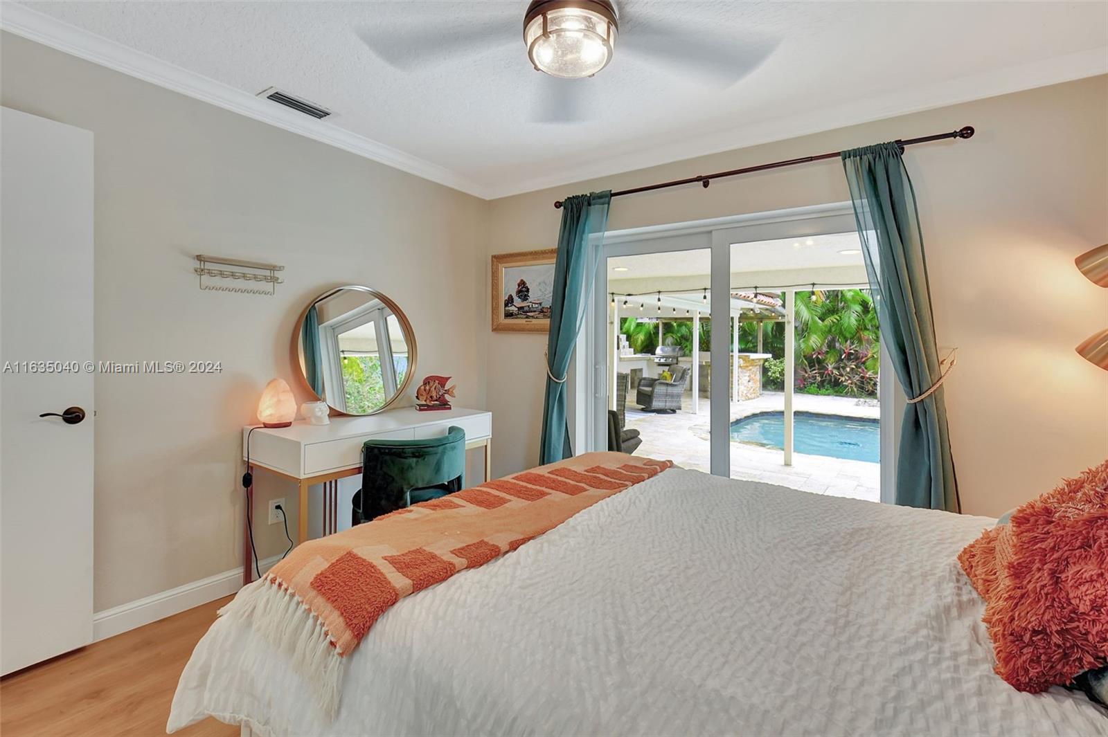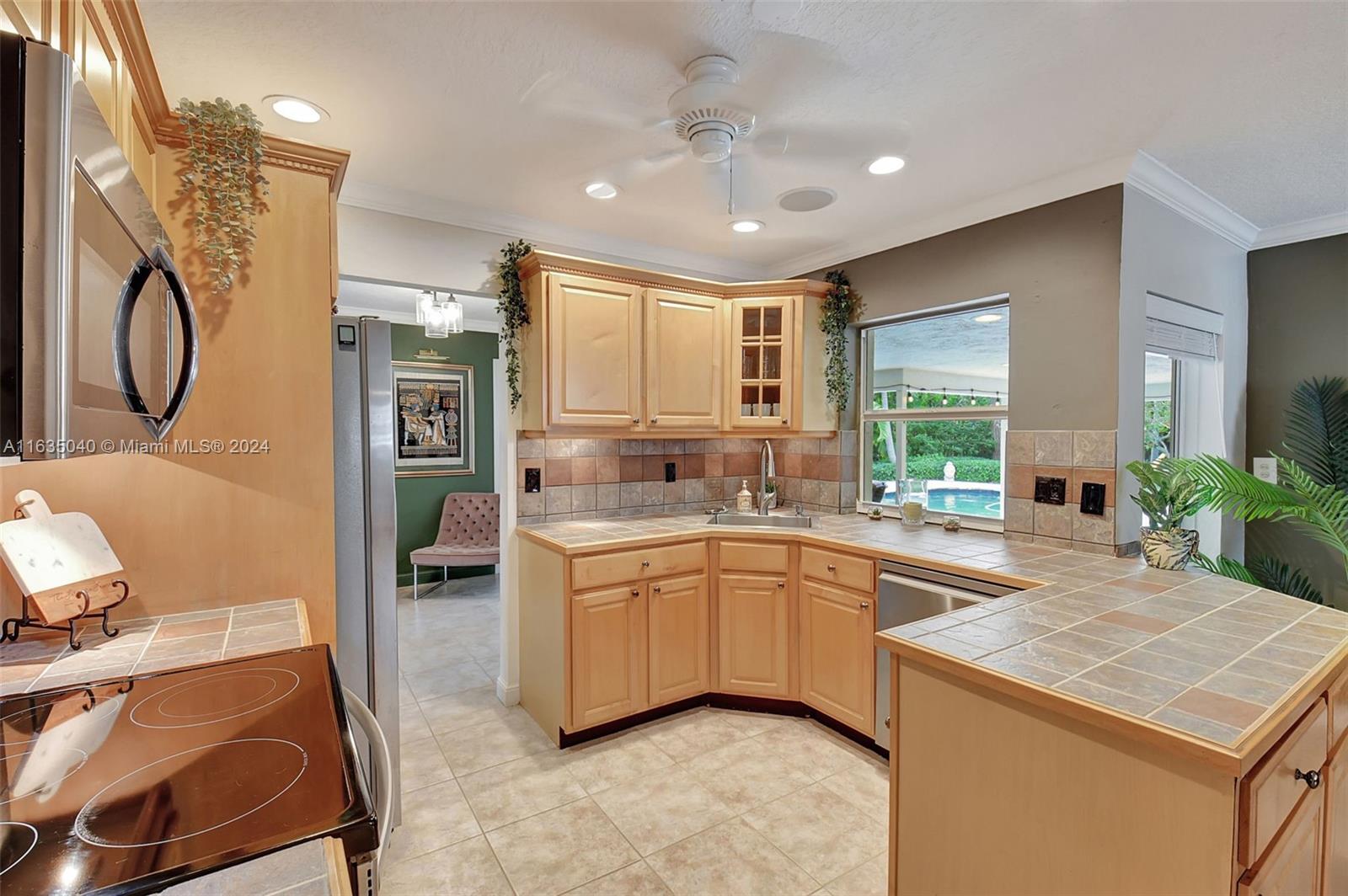 Enjoy a tropically landscaped garden, pool views, & natural light w/northern & southern exposures. Your private oasis features a custom oversized solar-heated salt chlorinated pool w/swim jet, water features, &glass-tiled swim shelf. Travertine patio includes a flagstone fire pit, built-in BBQ grill, fridge, sink, & fenced backyard w/RV space. Bright interior w/impact windows/doors, split floor plan, updated baths, LED lights, built-in speakers, & smart home features. Open kitchen w/energy-star stainless appliances & pantry. Primary bed w/ walk-in closet; guest bath w/ dual vanity. PVC pipes, relined copper sewer lines, large garage w/'24 washer/dryer, '22 AC, shop vac, & generator switch. Minutes to top schools, FAU, beach, & shops. Cameras on site.
