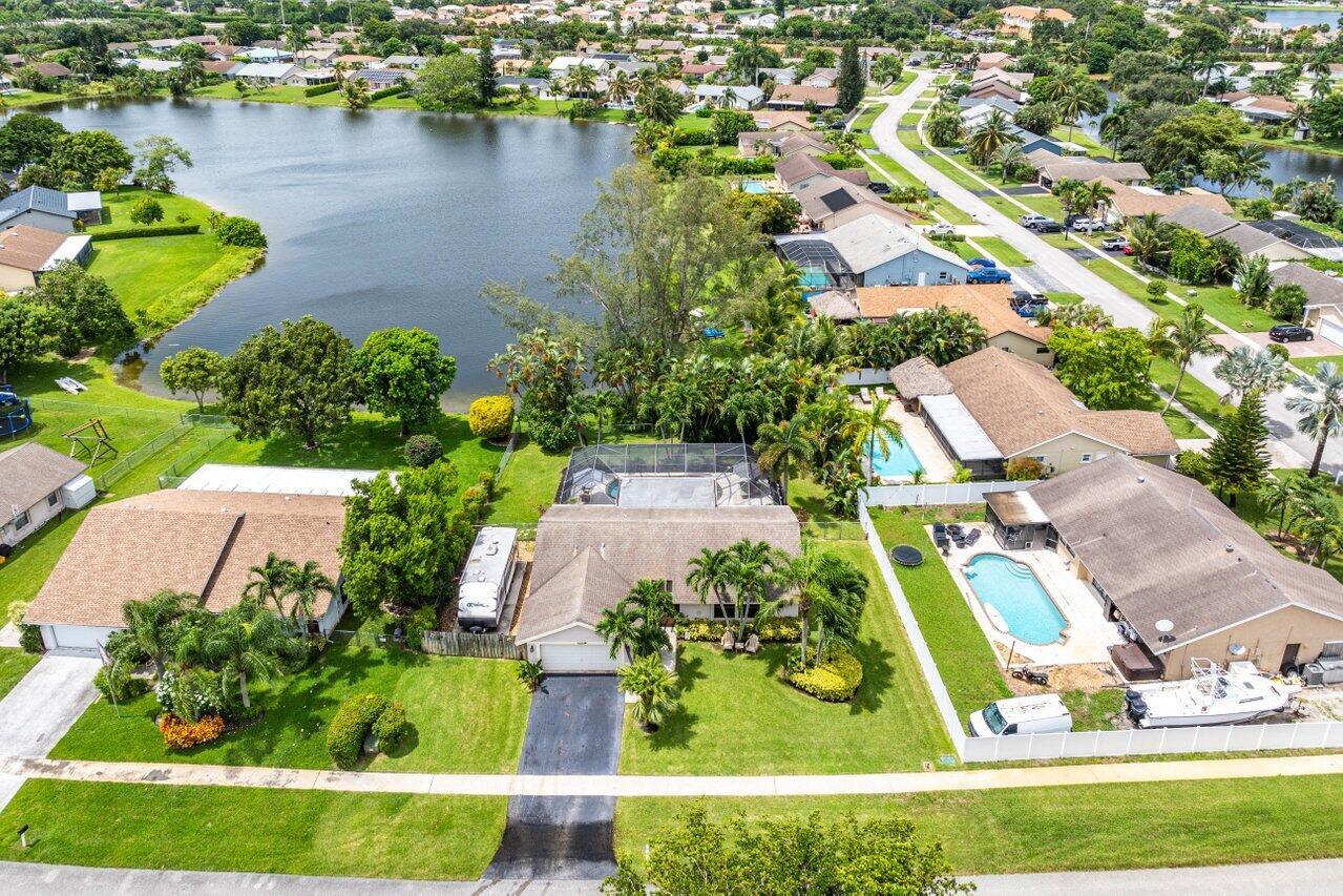 Discover your dream home in West Boca's low HOA community of Southwind Lakes! This beautifully designed 4-bedroom, 2-bathroom residence sits on an expansive 12,000+ sqft lot, offering endless possibilities for outdoor living. Dive into your private pool, unwind on the screened-in patio, enjoy lake views complemented stunning sunsets, and enjoy the peace of mind that comes with a fully fenced yard--perfect for family, fun and pets. With nearly 1,500 sqft of living space, this home blends comfort and style, featuring a 2-car garage and a layout perfect for entertaining. This split floor plan features three guest bedrooms, a full bathroom, and most importantly, a separate primary wing which features gorgeous wood floors, a walk-in closet, dual vanities, and recently updated walk-in shower.