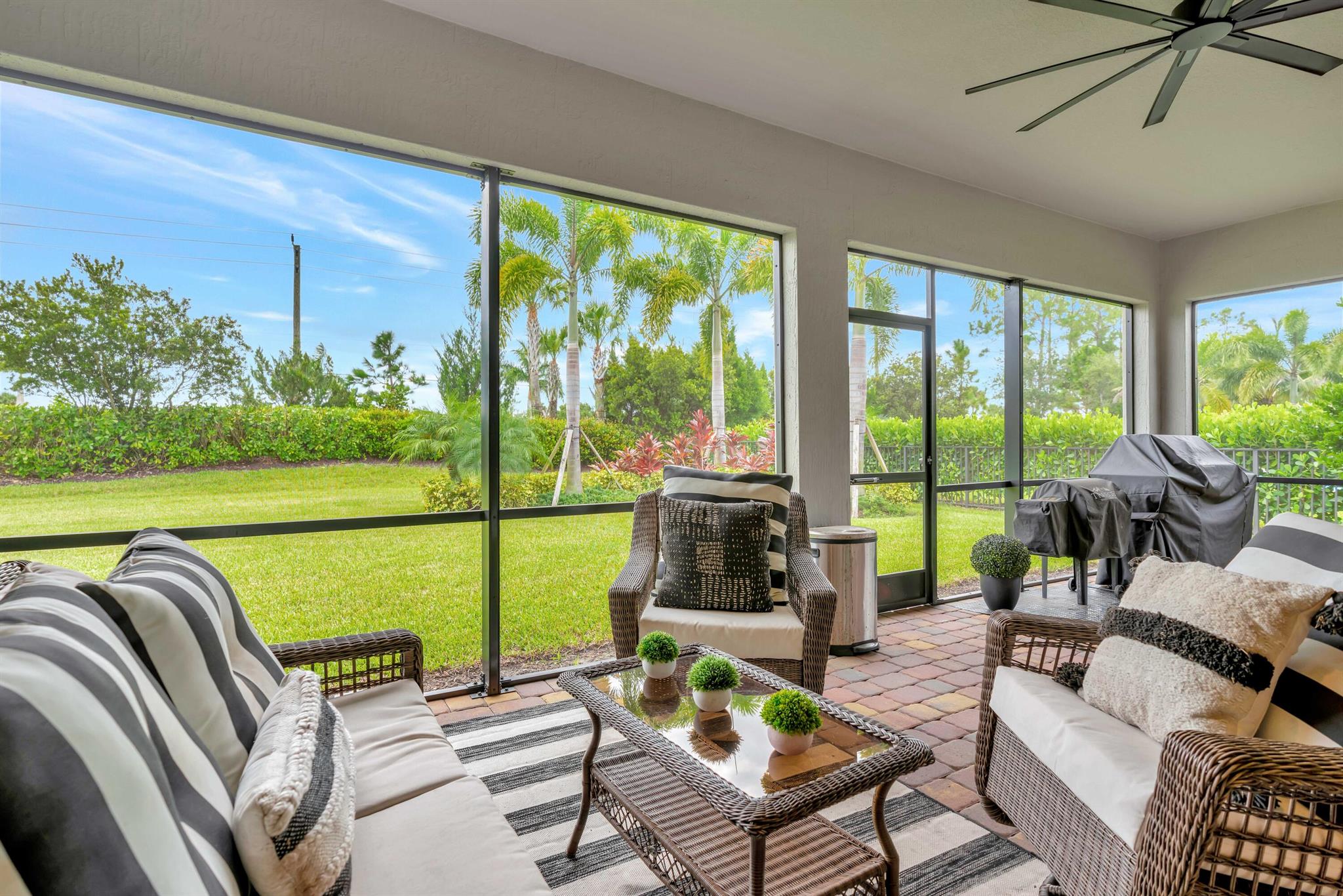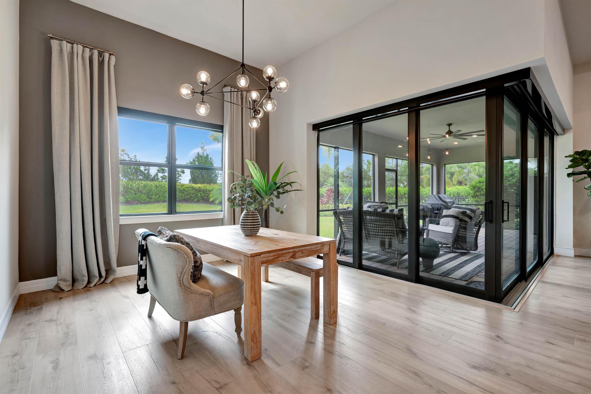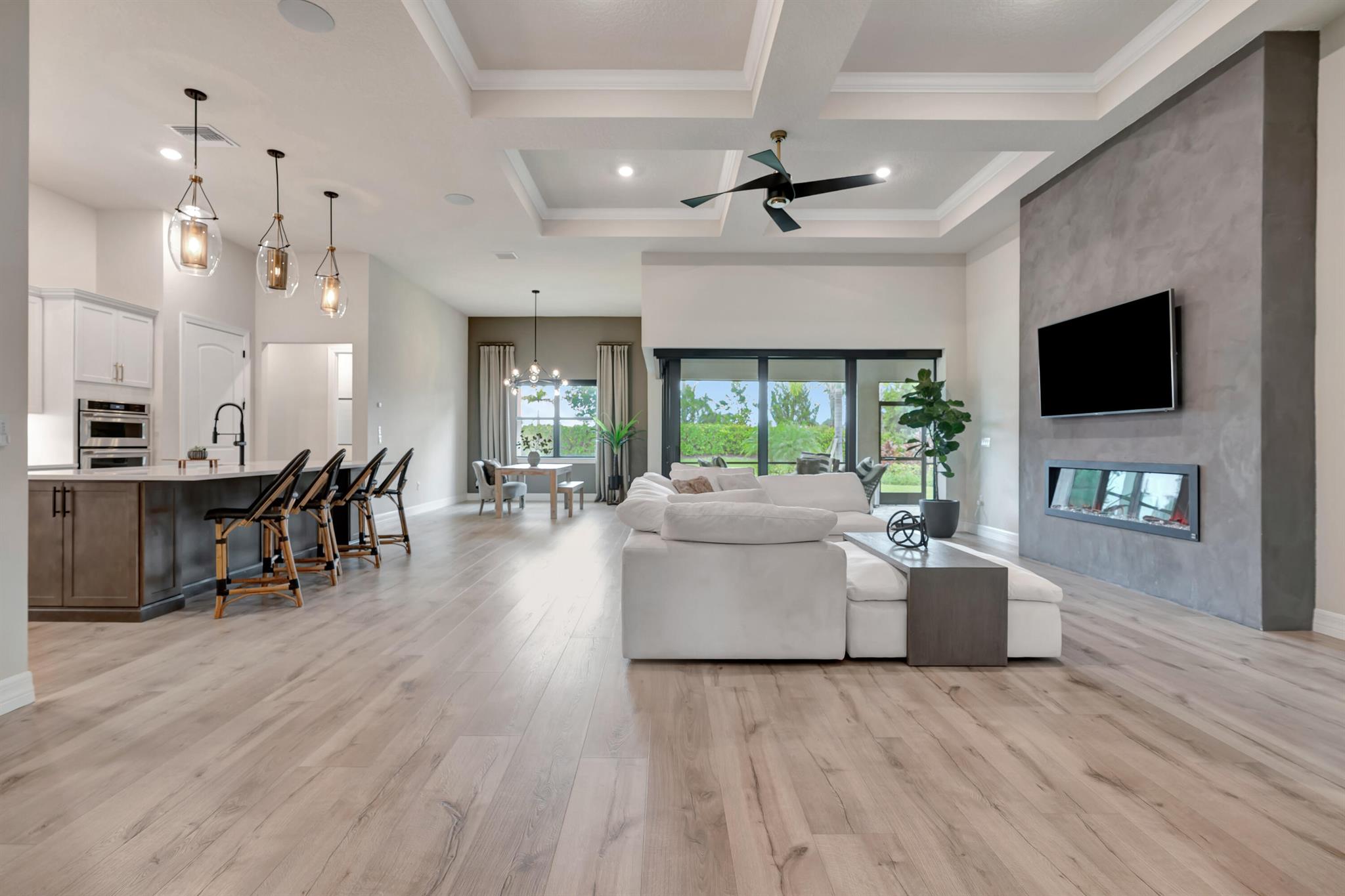 Welcome to your dream home in Ancient Tree, a prestigious gated community built by DiVosta! This stunning newer construction residence offers over 3,000 square feet of luxurious living space, designed with modern living in mind with over $150,000 in upgrades!Freshly painted inside, this home features an open floor plan that is light and airy, perfect for entertaining and everyday living. With 4 spacious bedrooms and two versatile flex rooms, you'll have all the space you need. Some of the windows are adorned with electric shades, providing both privacy and aesthetic appeal.Structural upgrades include zero corner sliding glass doors, a tankless water heater, a pool bath with a covered lanai, all-impact glass, and a screened-in lanai, ensuring durability and convenience.