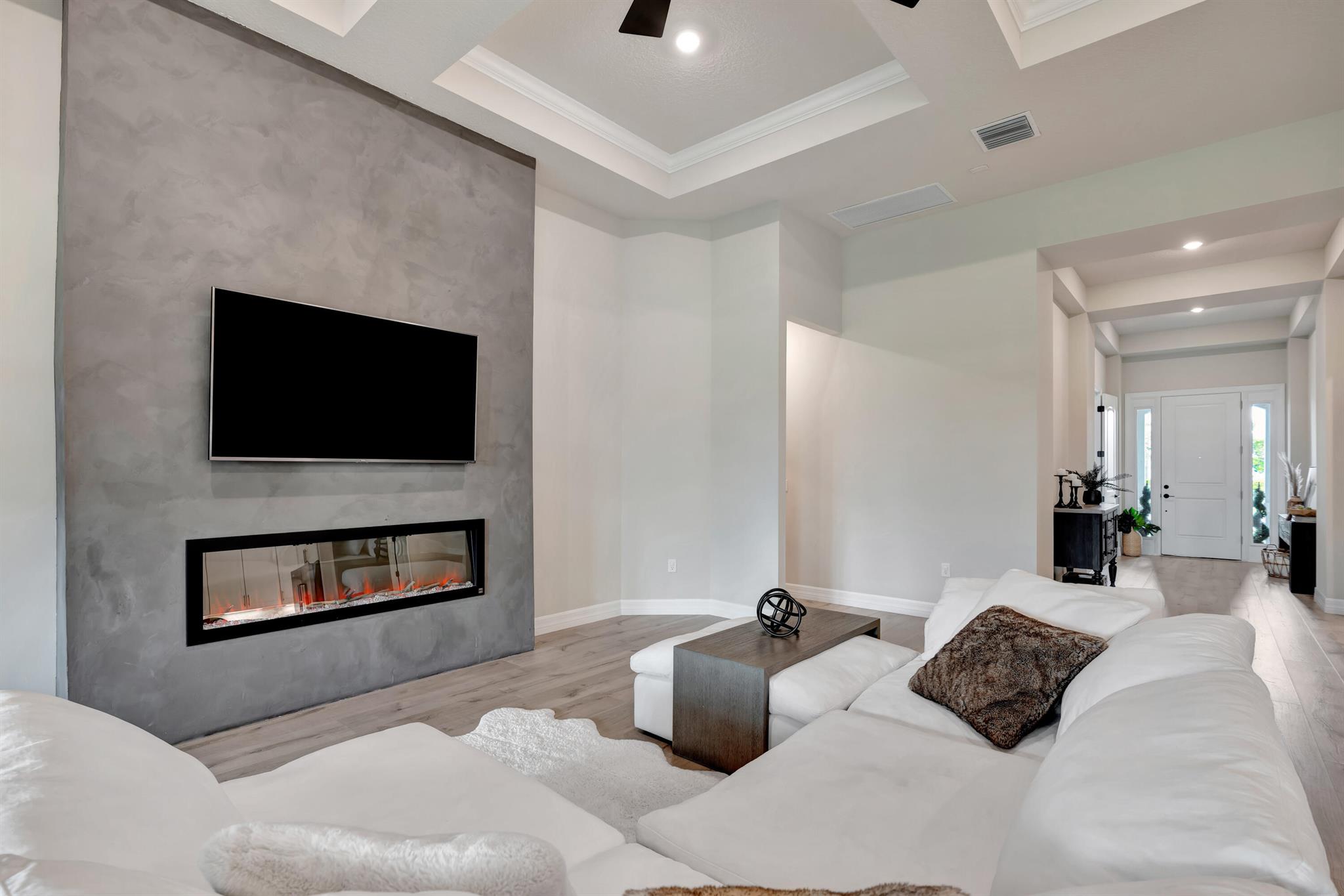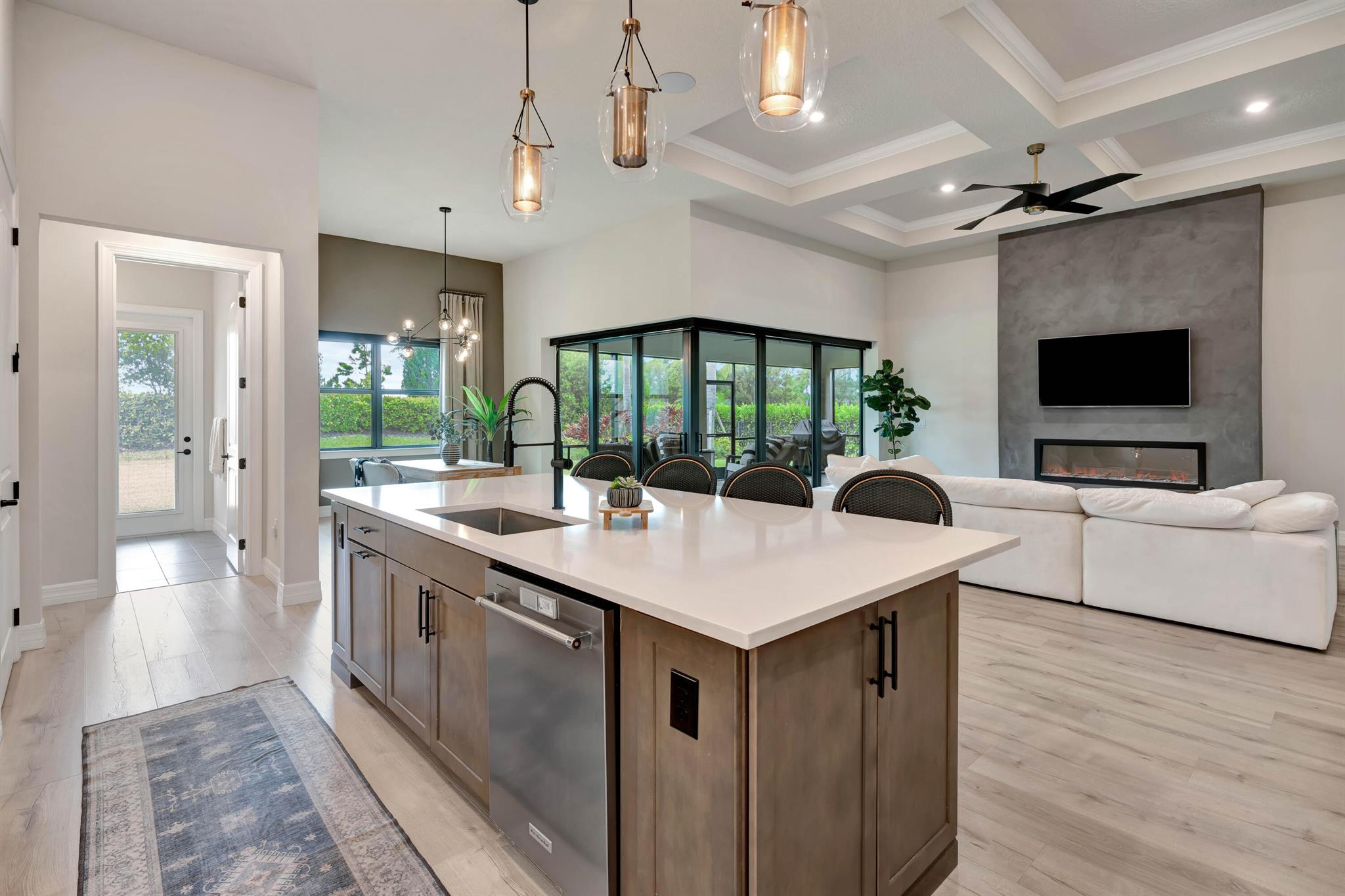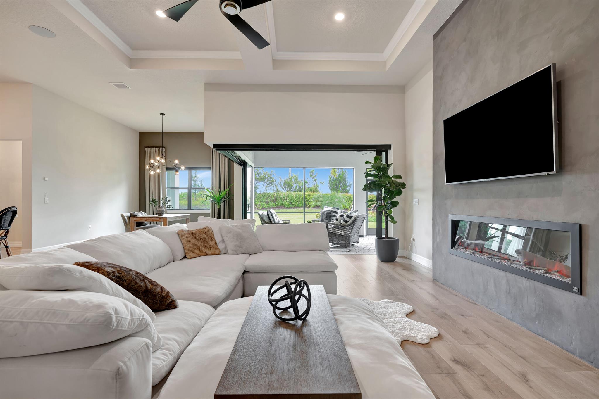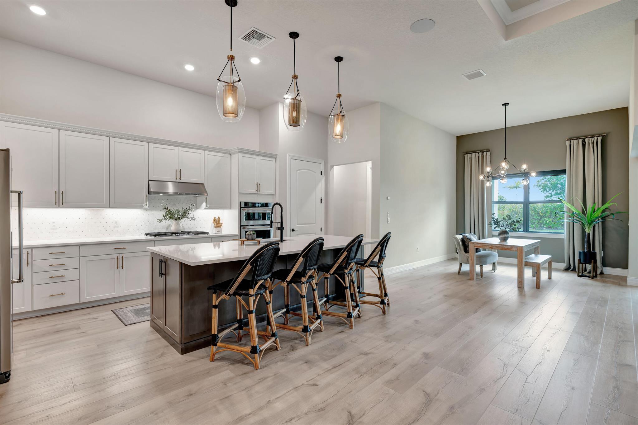 Welcome to your dream home in Ancient Tree, a prestigious gated community built by DiVosta! This stunning newer construction residence offers over 3,000 square feet of luxurious living space, designed with modern living in mind with over $150,000 in upgrades!Freshly painted inside, this home features an open floor plan that is light and airy, perfect for entertaining and everyday living. With 4 spacious bedrooms and two versatile flex rooms, you'll have all the space you need. Some of the windows are adorned with electric shades, providing both privacy and aesthetic appeal.Structural upgrades include zero corner sliding glass doors, a tankless water heater, a pool bath with a covered lanai, all-impact glass, and a screened-in lanai, ensuring durability and convenience.