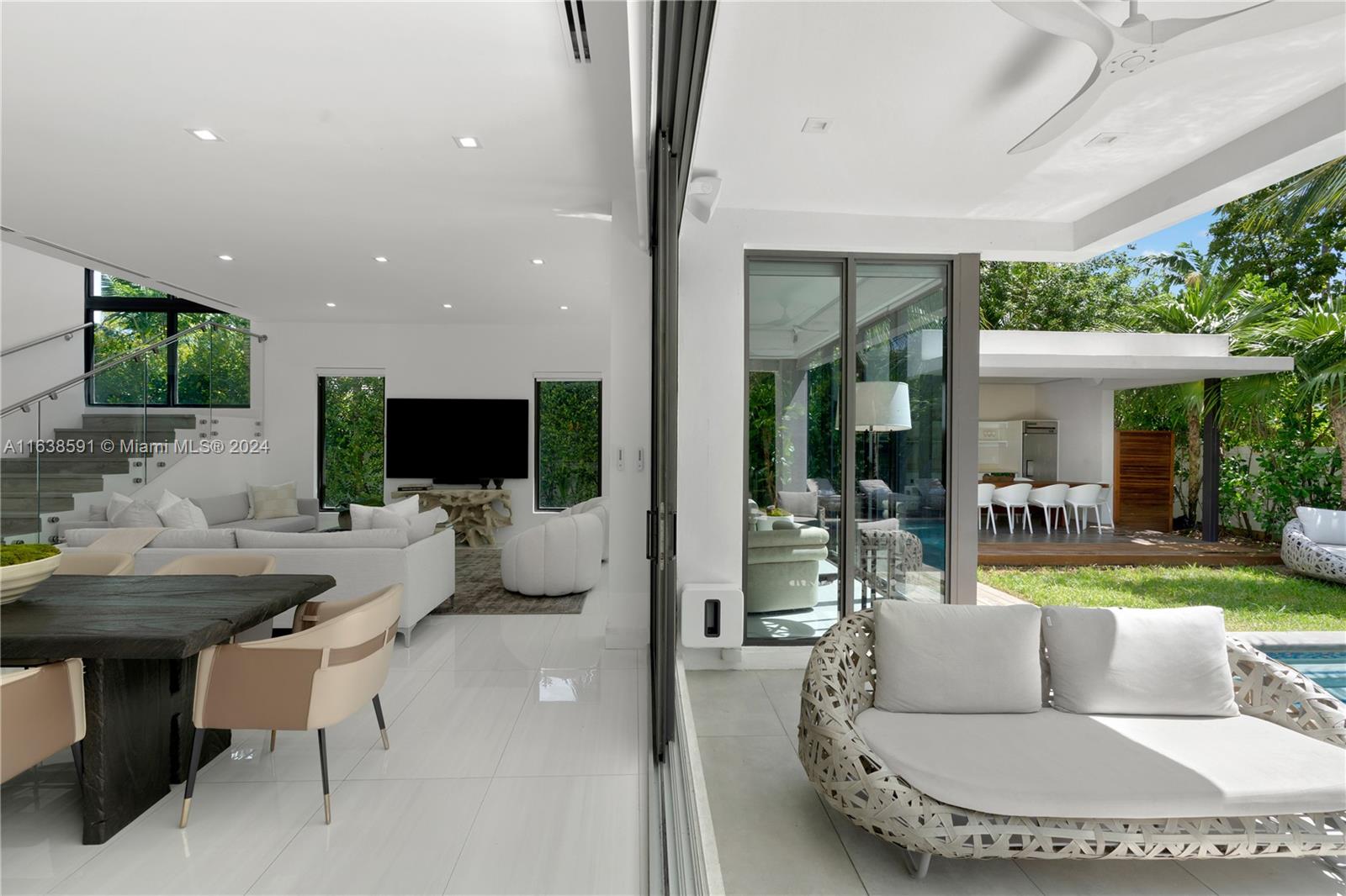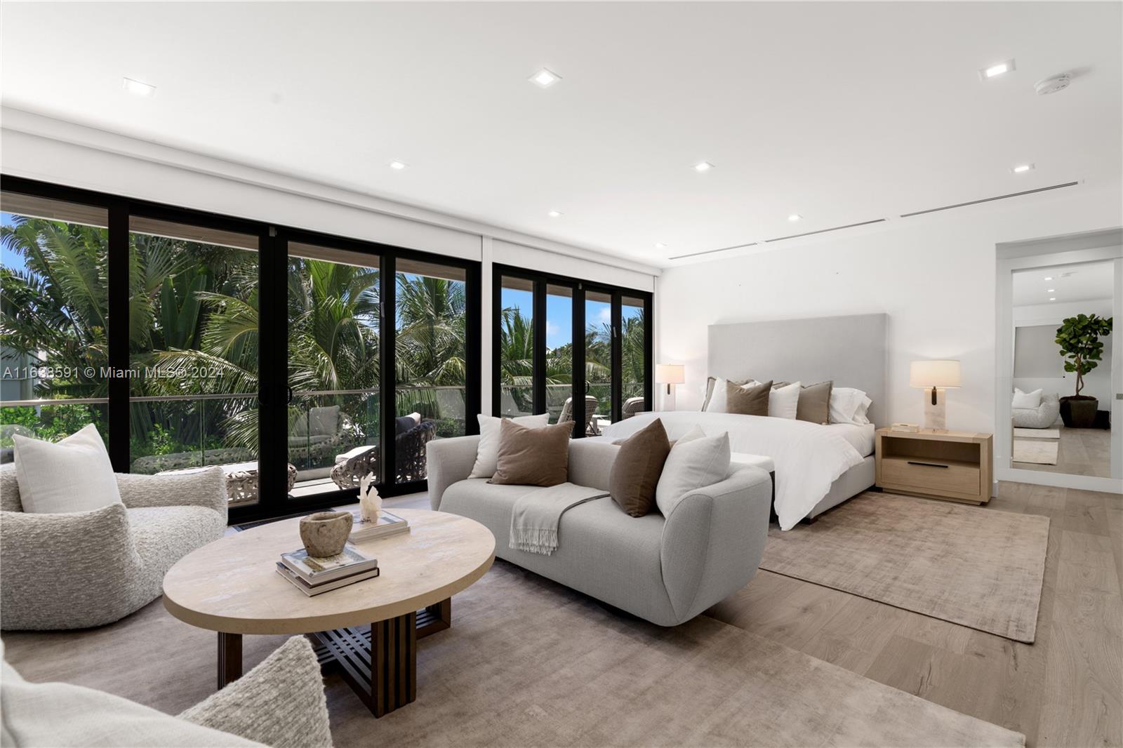 Welcome to your dream home in Miami Beach, where modern luxury meets serene privacy. This recently built modern masterpiece boasts an impressive 3,867 SF of living space, designed to maximize natural light and create an inviting atmosphere. With a perfect open floor plan, this home is an entertainer's paradise, seamlessly blending indoor and outdoor living, highlighted by a large pool, complete outdoor kitchen, and dining area. With 3 spacious bedrooms upstairs and 2 downstairs, this home is designed for both comfort and elegance. The primary suite is a retreat unto itself, offering a luxurious sitting area, a spa-like bathroom, and an expansive walk-in closet. Situated on a beautifully landscaped and secluded st, this gated property combines sophisticated design with unparalleled privacy.